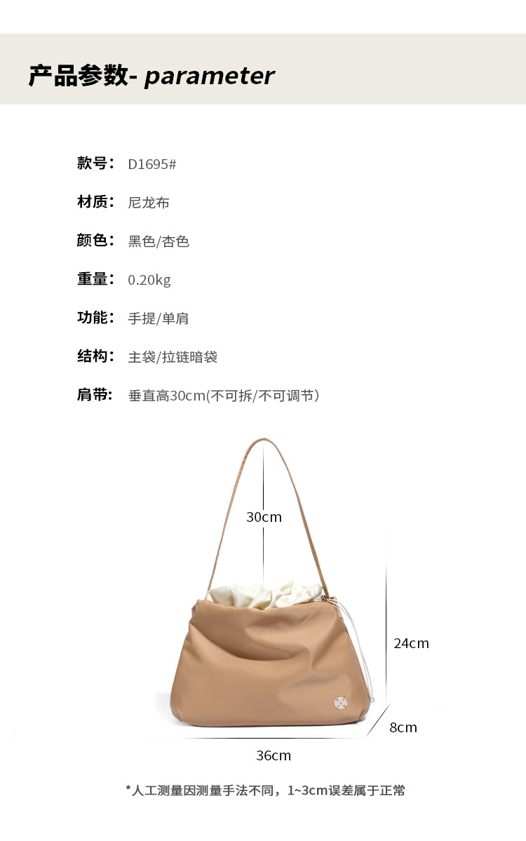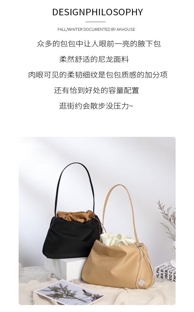 质感尼龙夏季休闲云朵包小众大容量手提包简约抽绳女士单肩腋下包