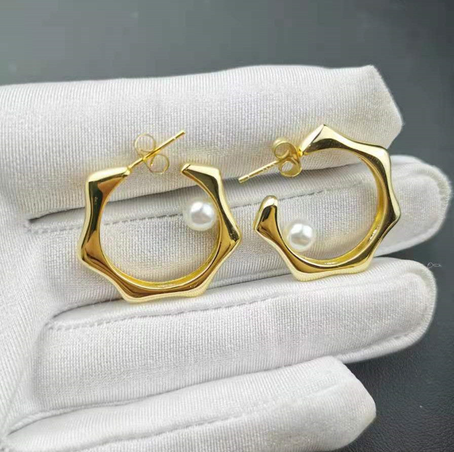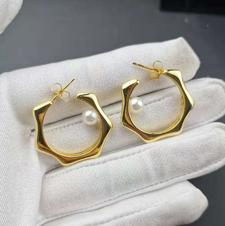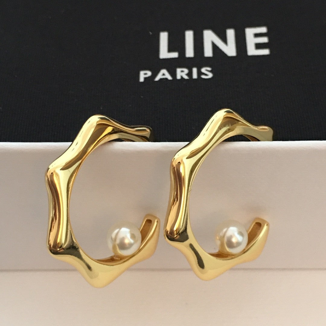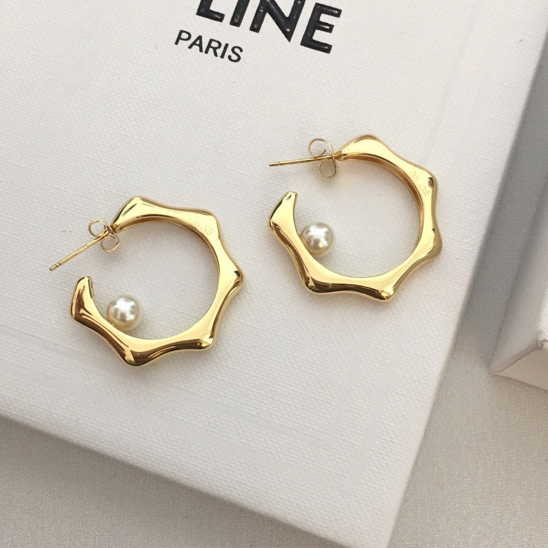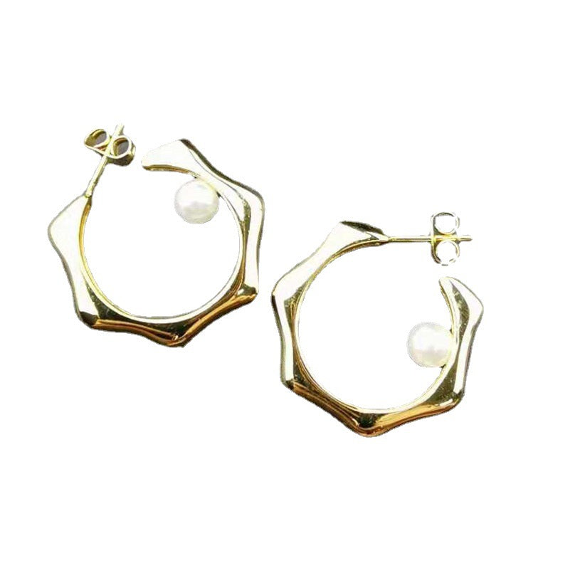 赛家新款不规则圆圈耳圈法式复古气质耳钉单珠耳饰几何珍珠耳环