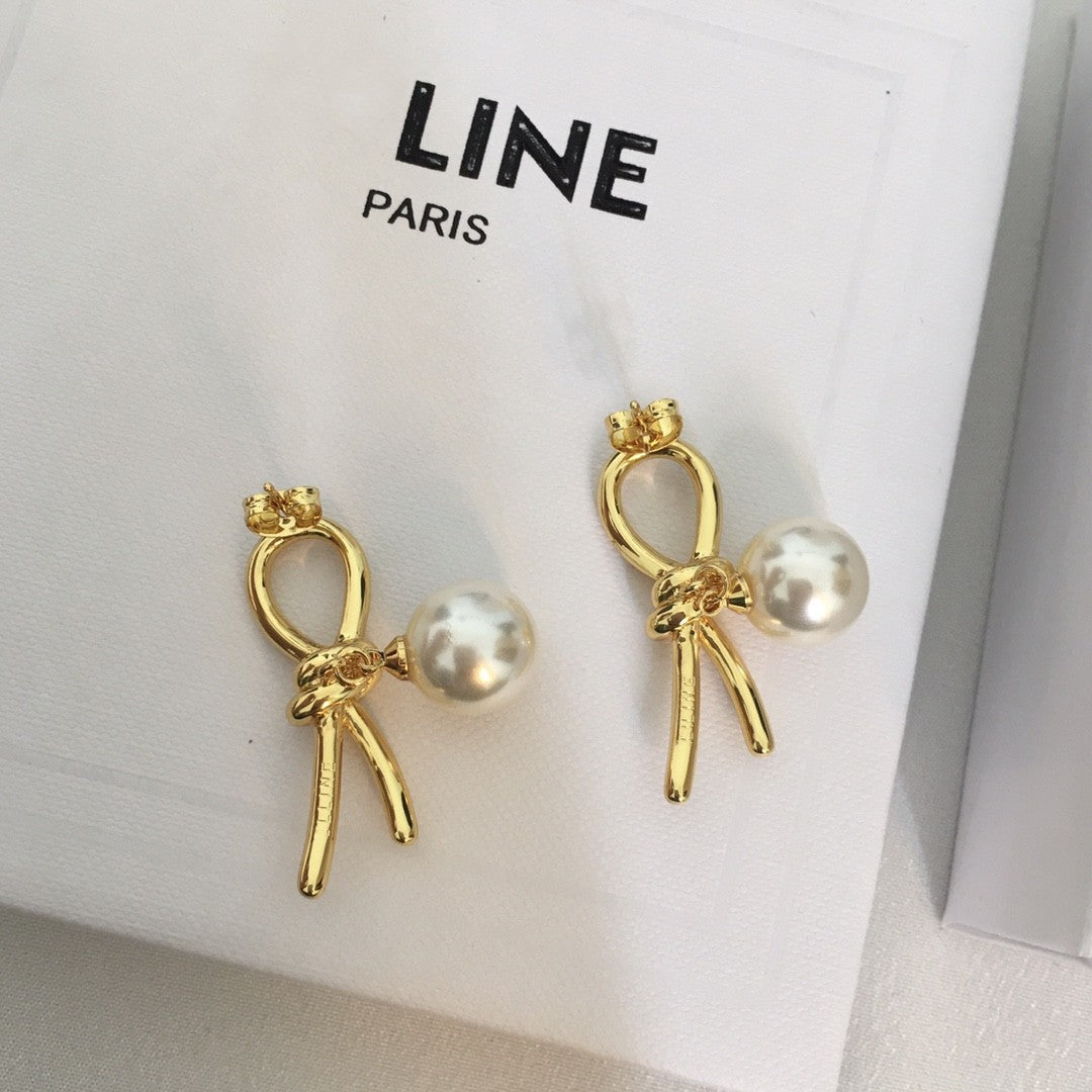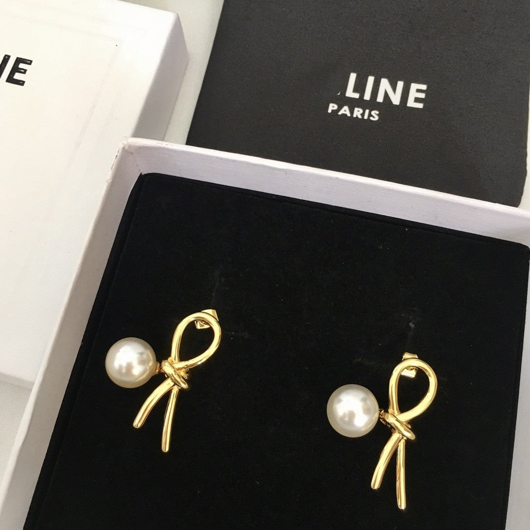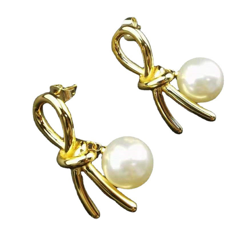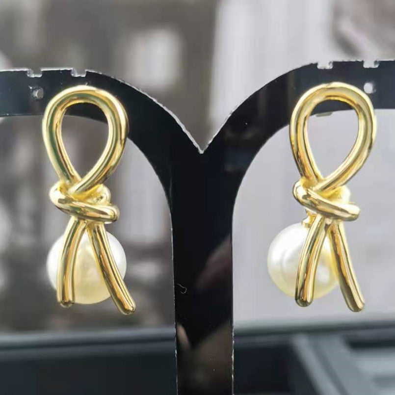 赛家新款几何形耳环法式复古时尚简约金色耳饰品打结珍珠耳钉女