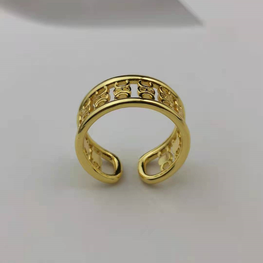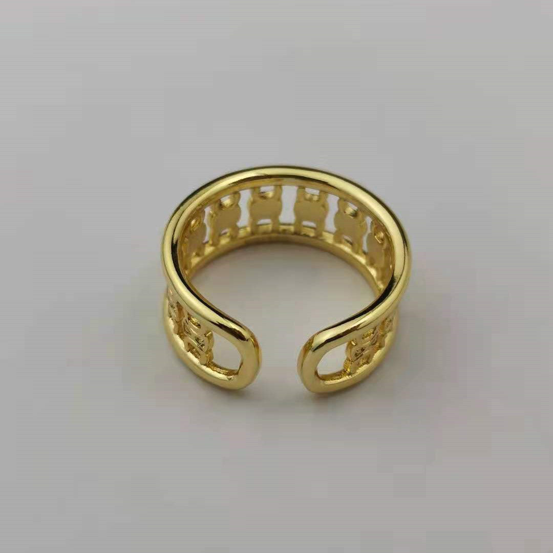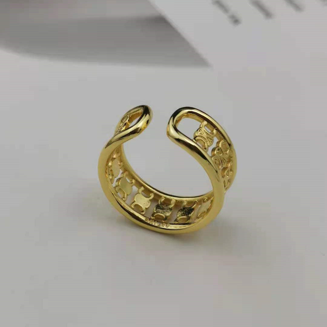 赛家新款凯旋门戒指高级感气质金色光面甜酷风几何形徽章开口指环