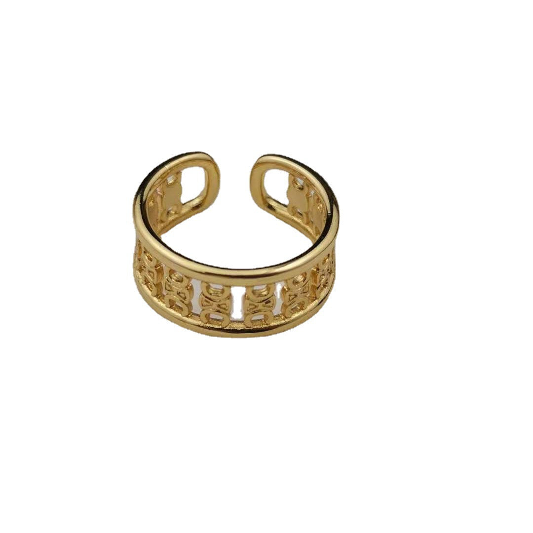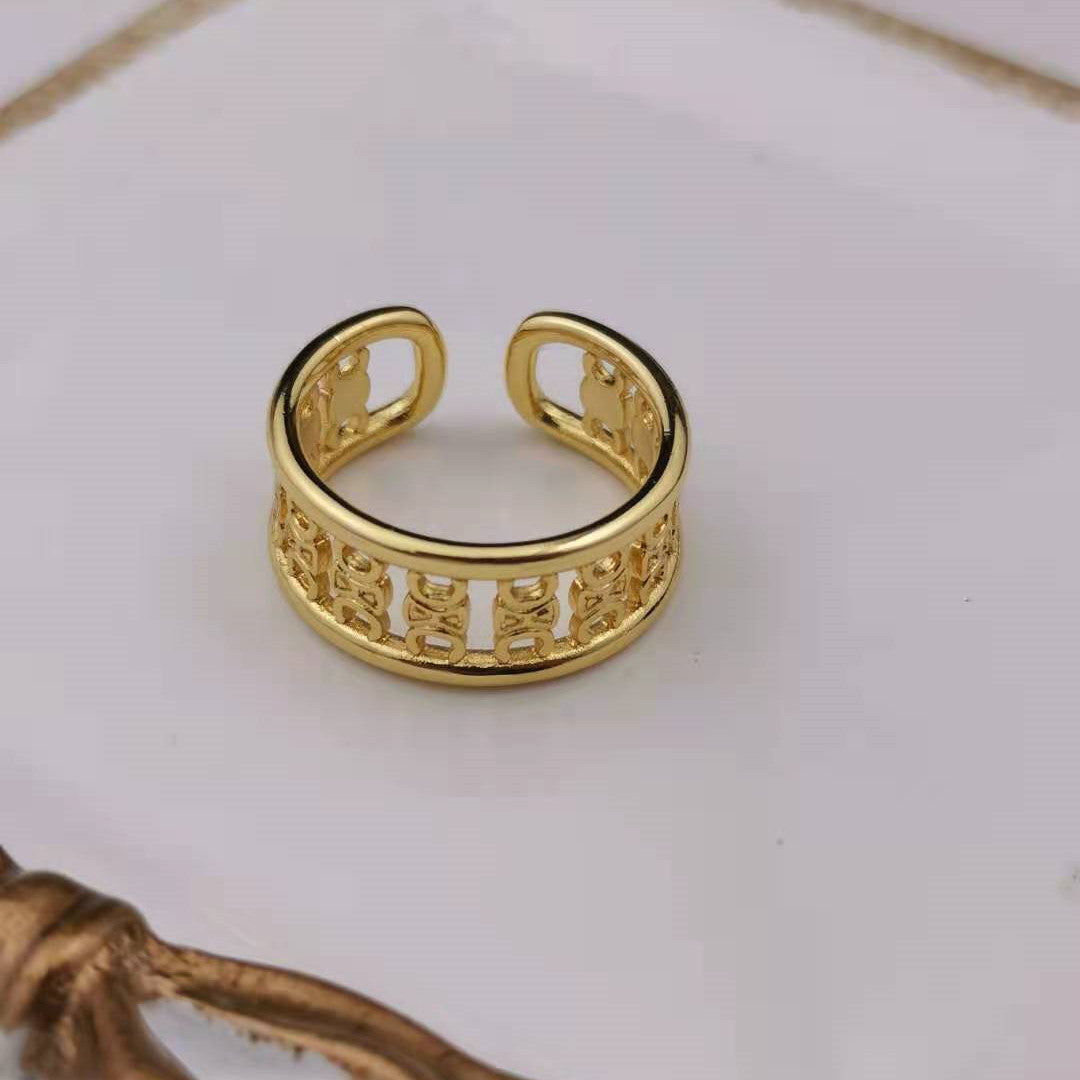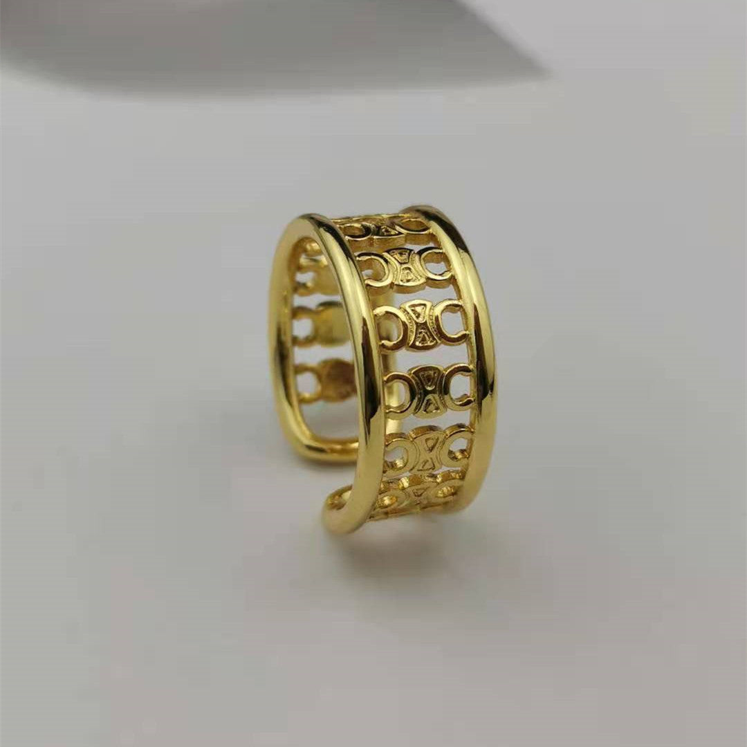 赛家新款凯旋门戒指高级感气质金色光面甜酷风几何形徽章开口指环