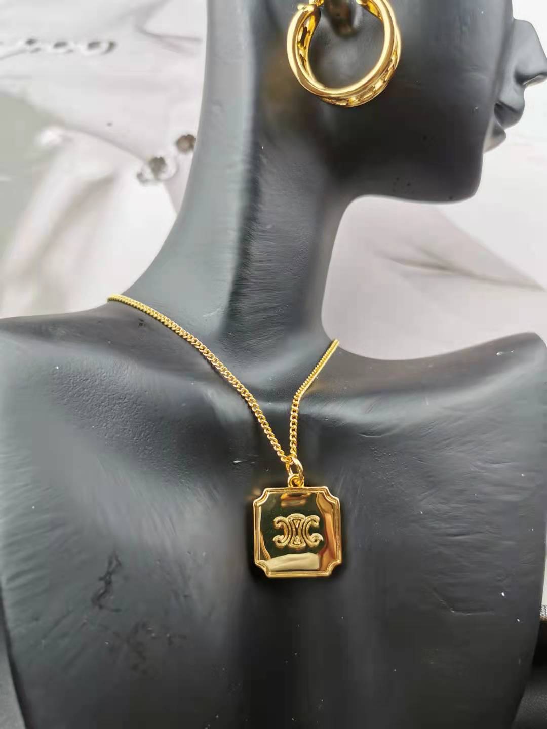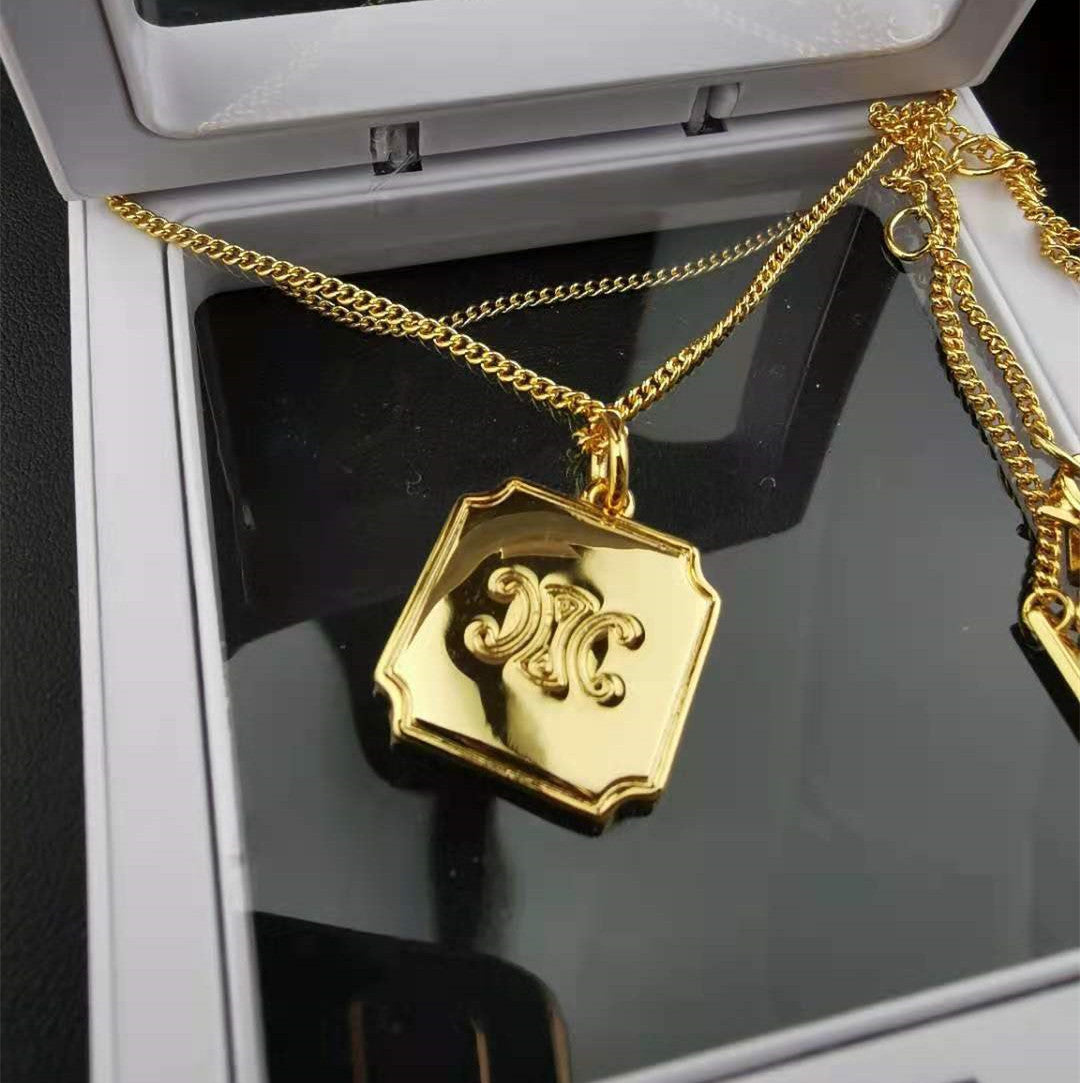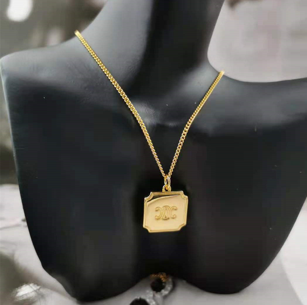 赛家新款凯旋门锁骨链金色方牌复古法式欧美风气质盾牌项链女