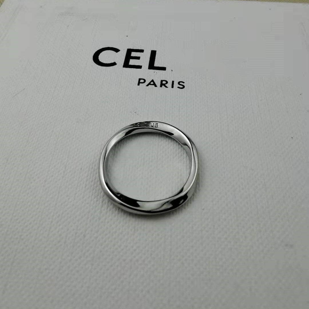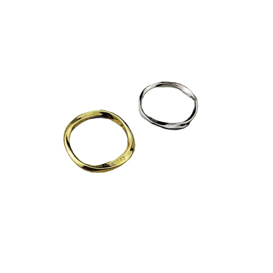 赛家新款戒指素圈细对戒极简ins小众设计时髦尾戒不规则扭曲指环