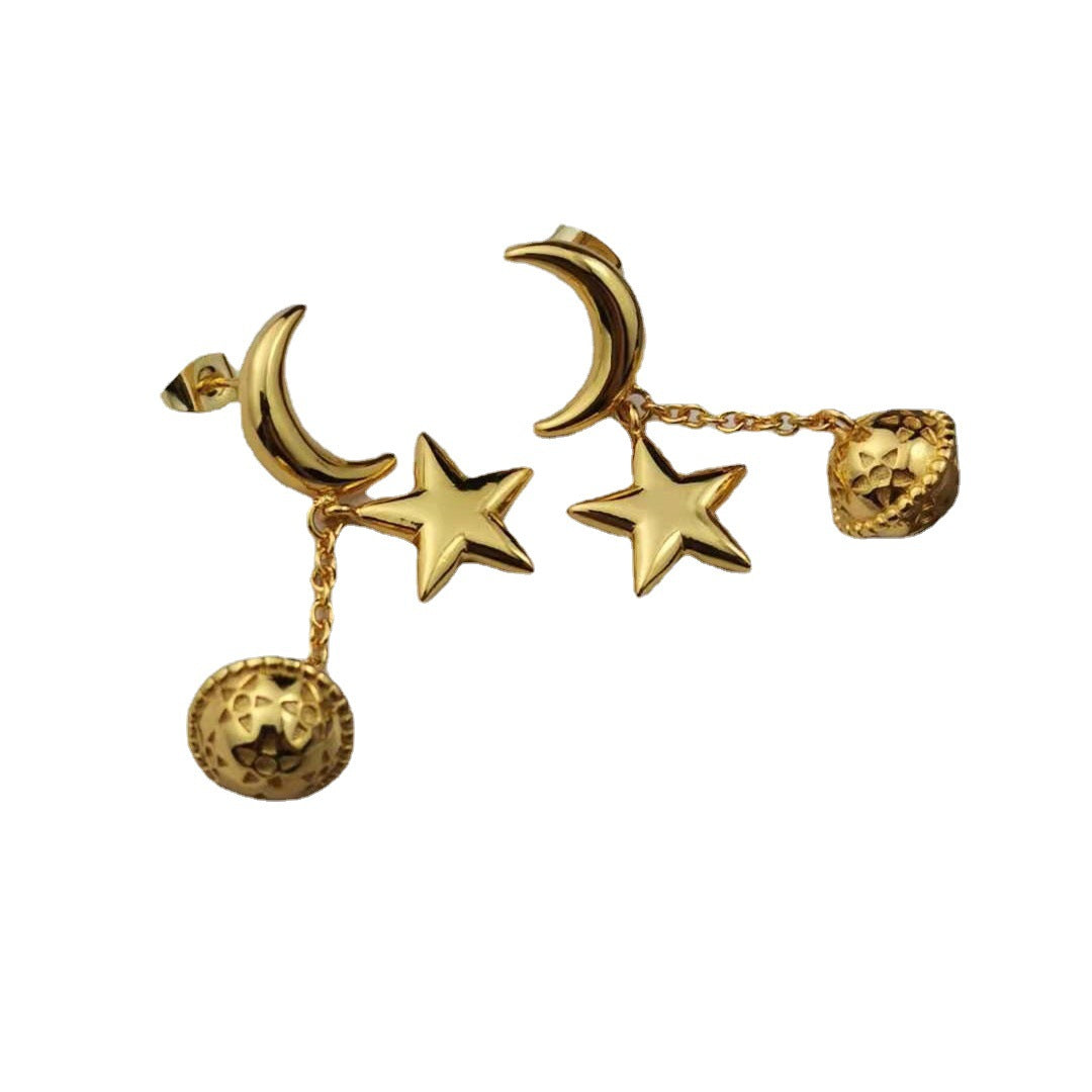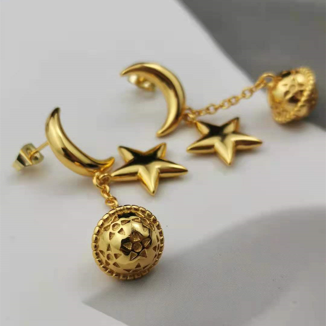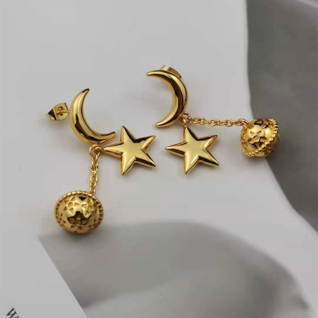 赛家新款月亮星球耳钉长款耳线高级感复古气质中古星星星球耳坠