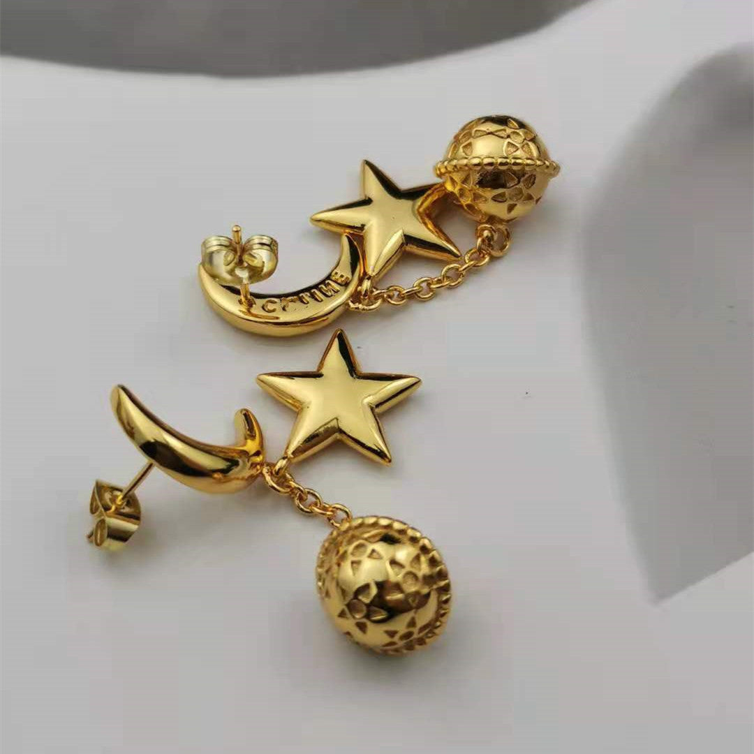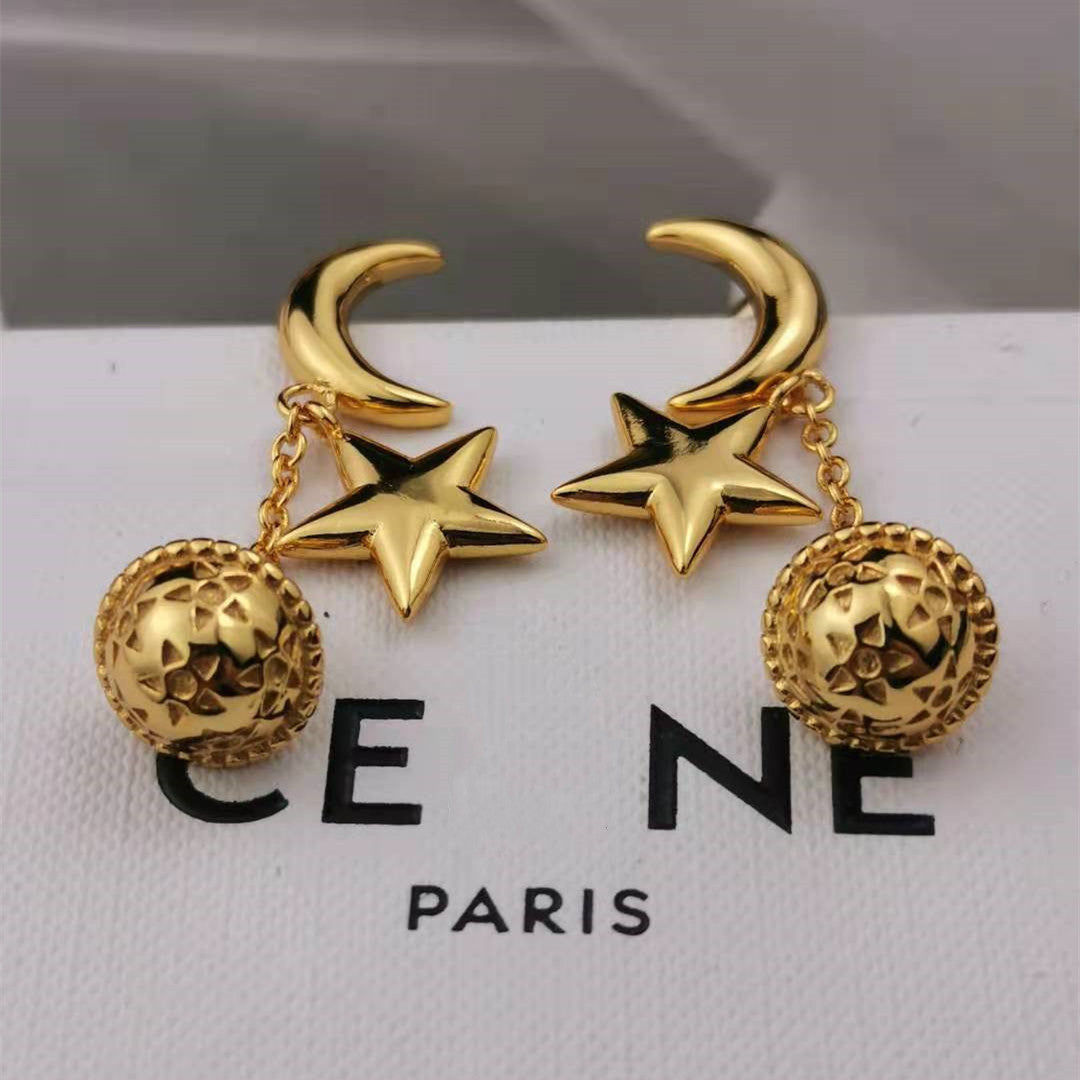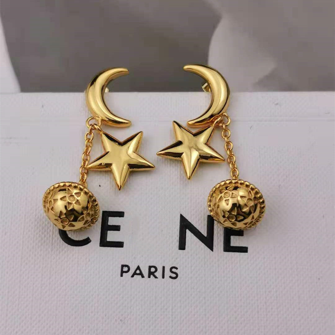 赛家新款月亮星球耳钉长款耳线高级感复古气质中古星星星球耳坠