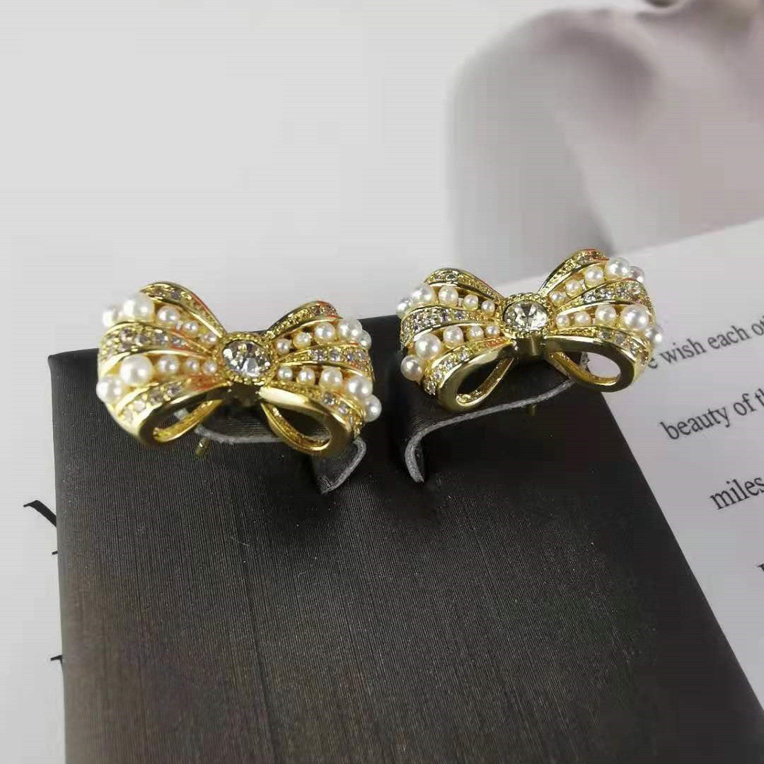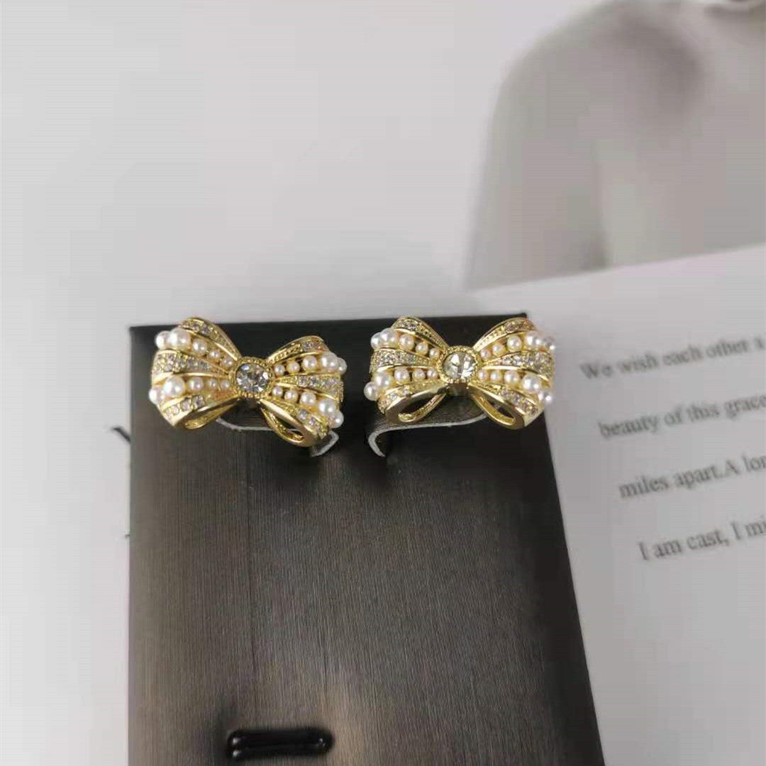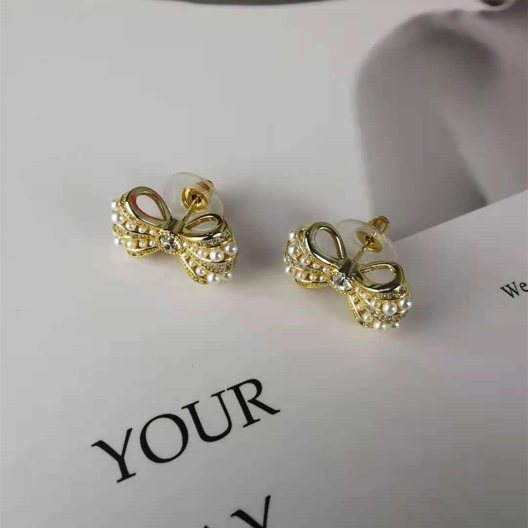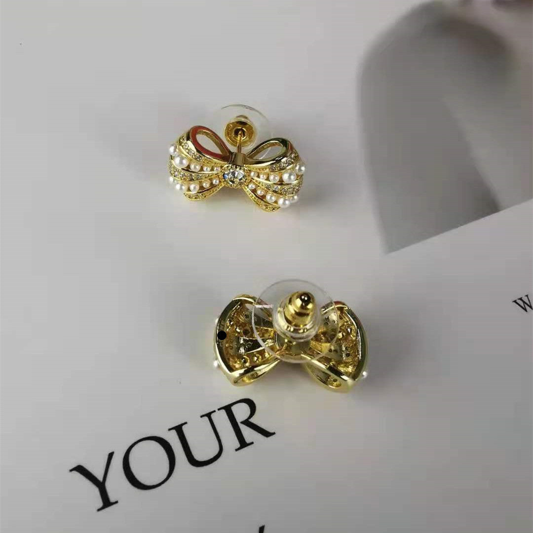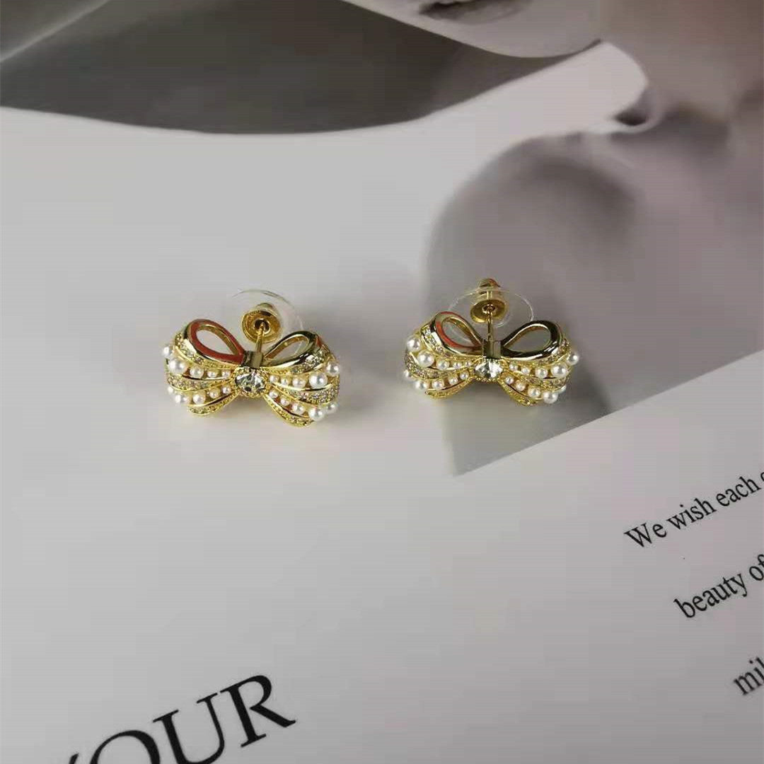 赛家新款满钻耳环精致小巧珍珠蝴蝶结耳钉甜美气质韩版INS耳饰