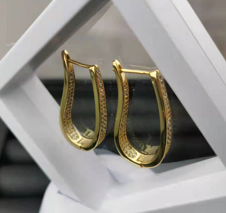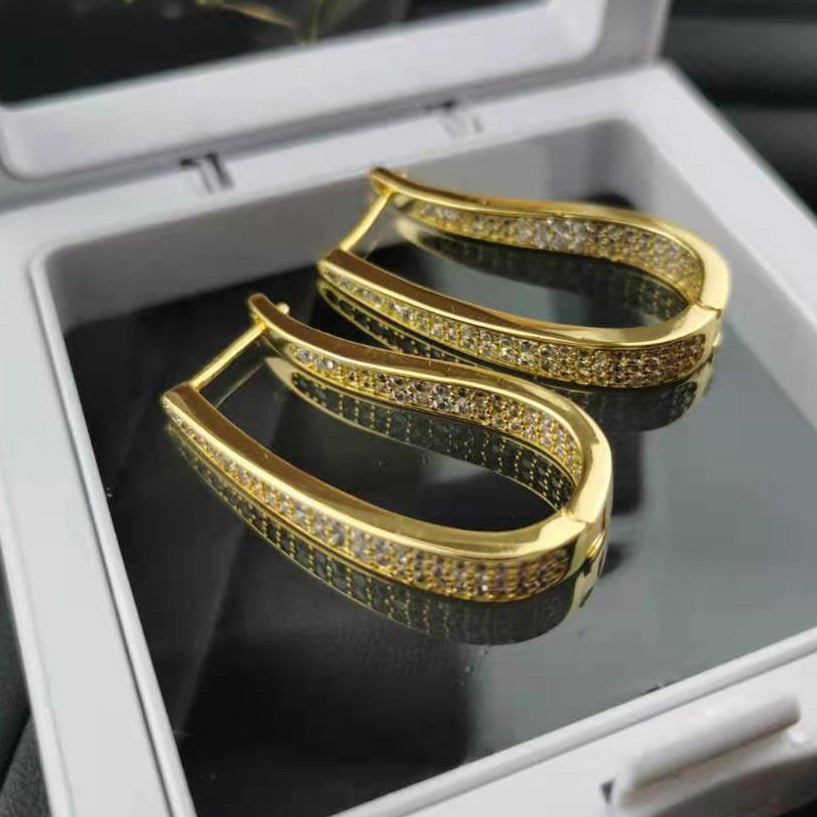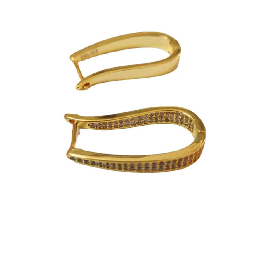 赛家新款耳扣金色满钻镶钻复古气质时尚港风耳饰不规则U形耳环