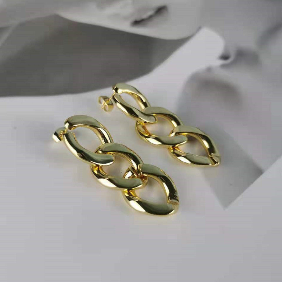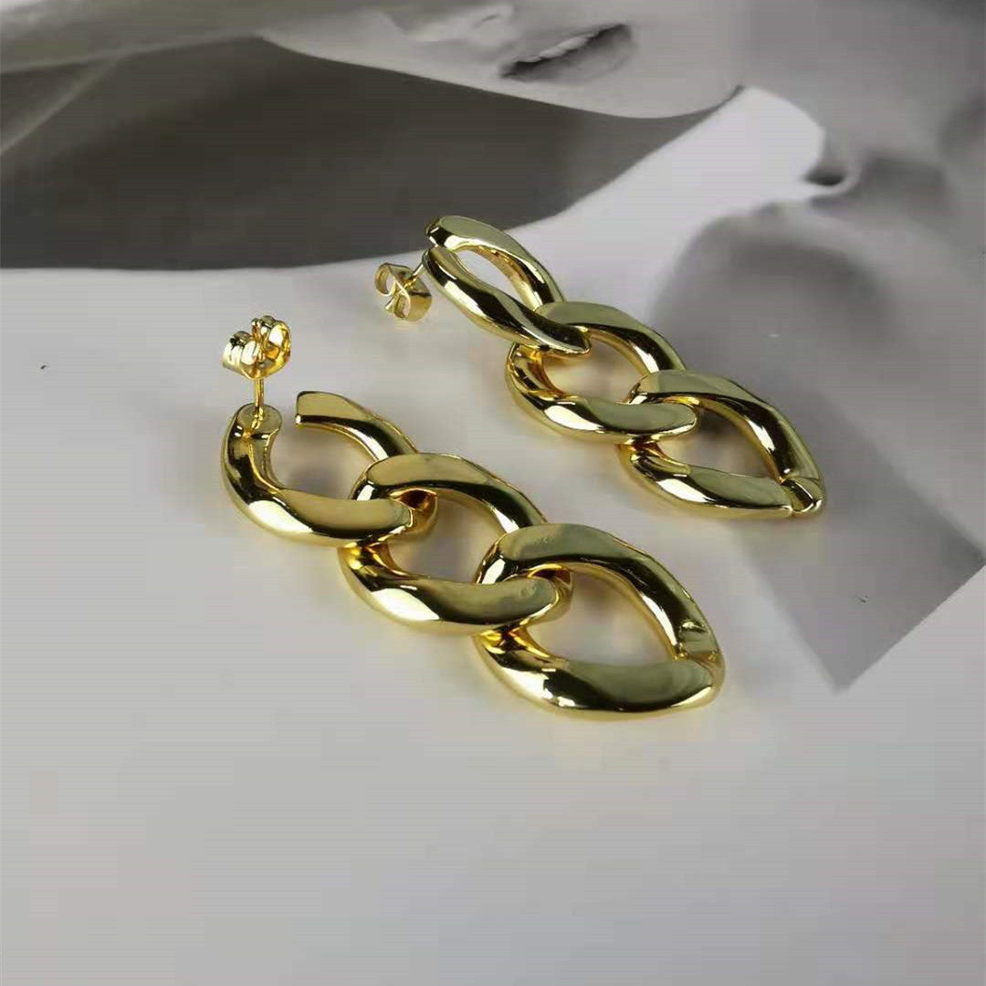 赛家新款耳环女三环扣欧美风时尚气质复古港风ins耳饰链条耳钉