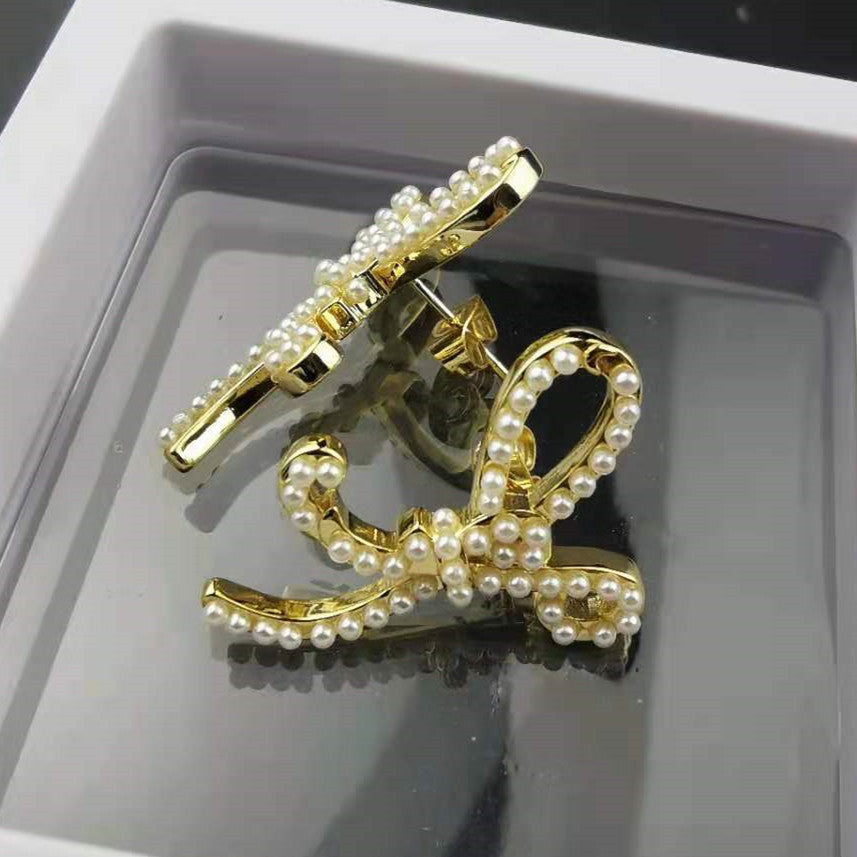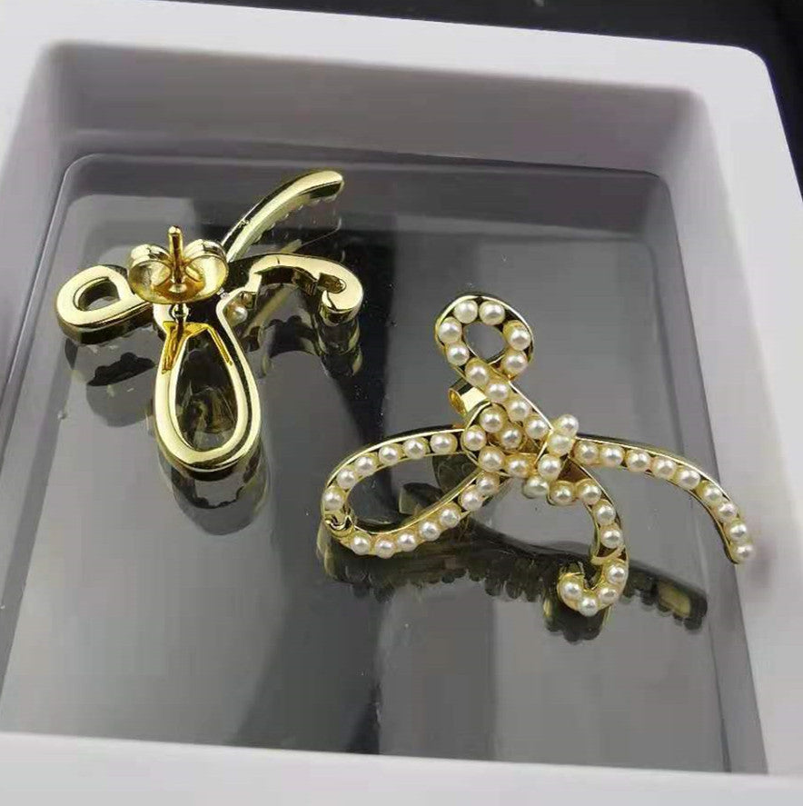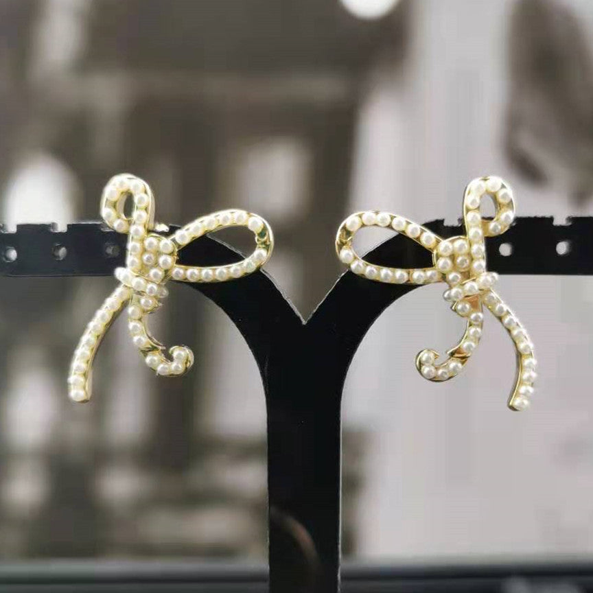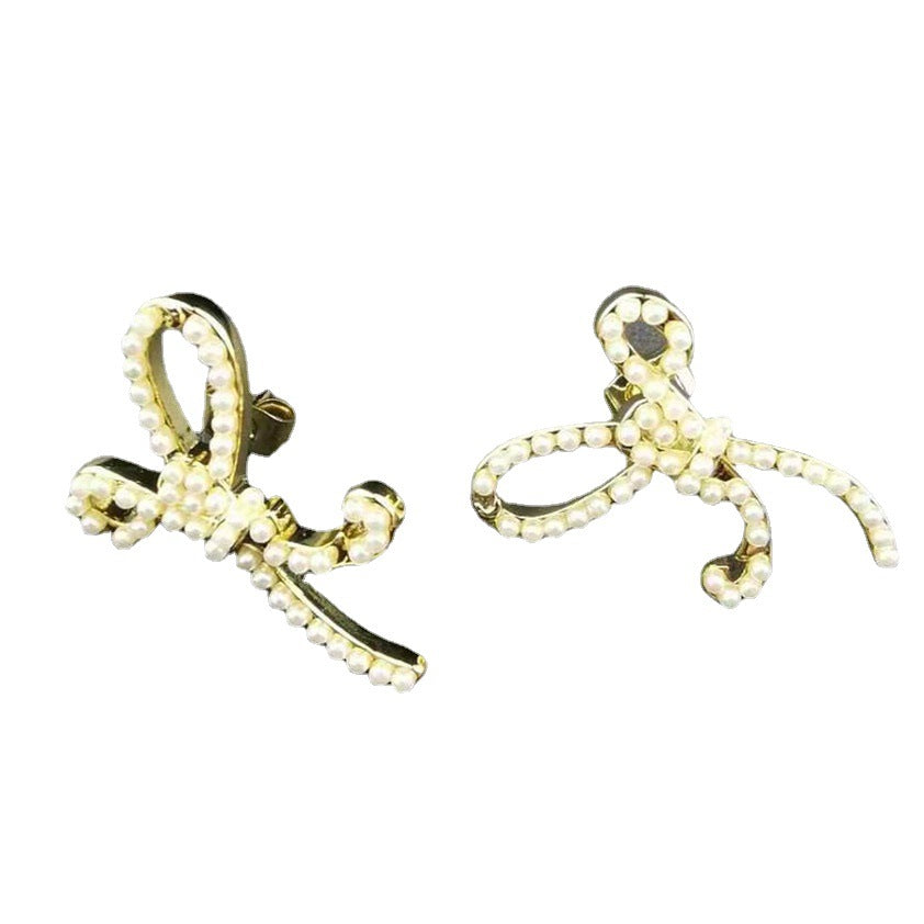 赛家新款耳钉女珍珠蝴蝶结精致INS风法式耳饰不规则蝴蝶结耳钉
