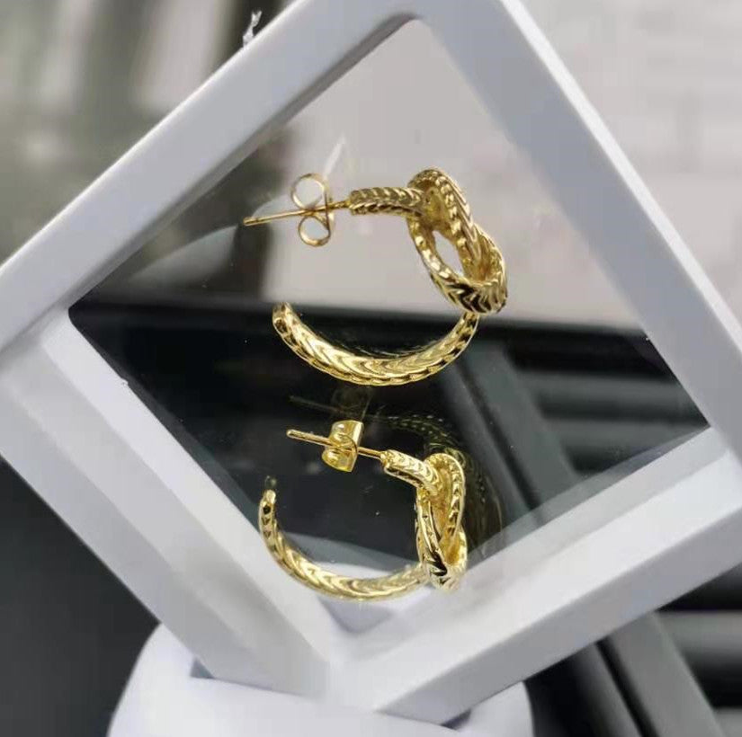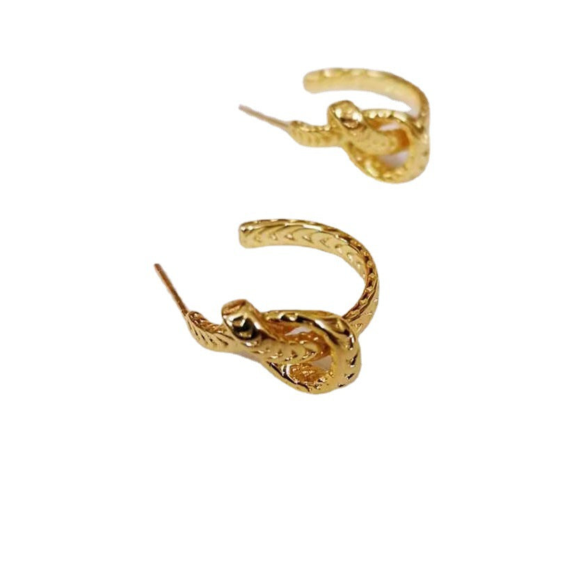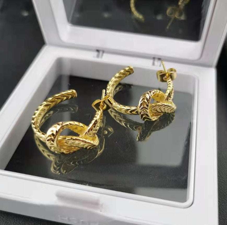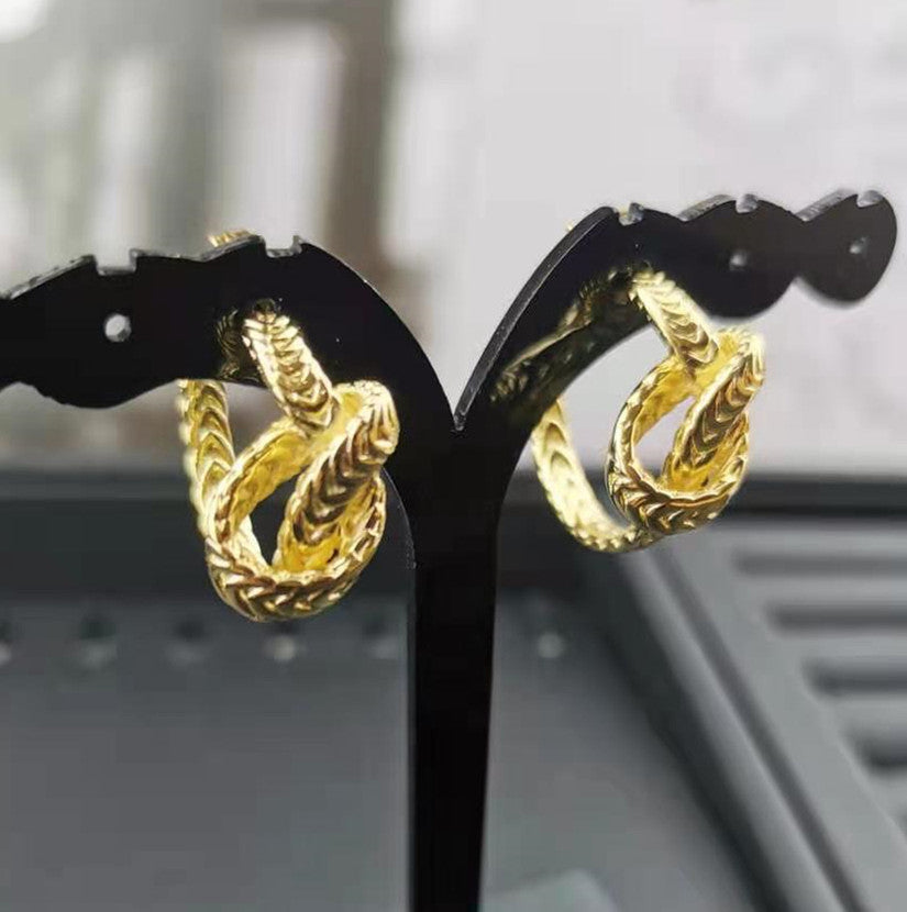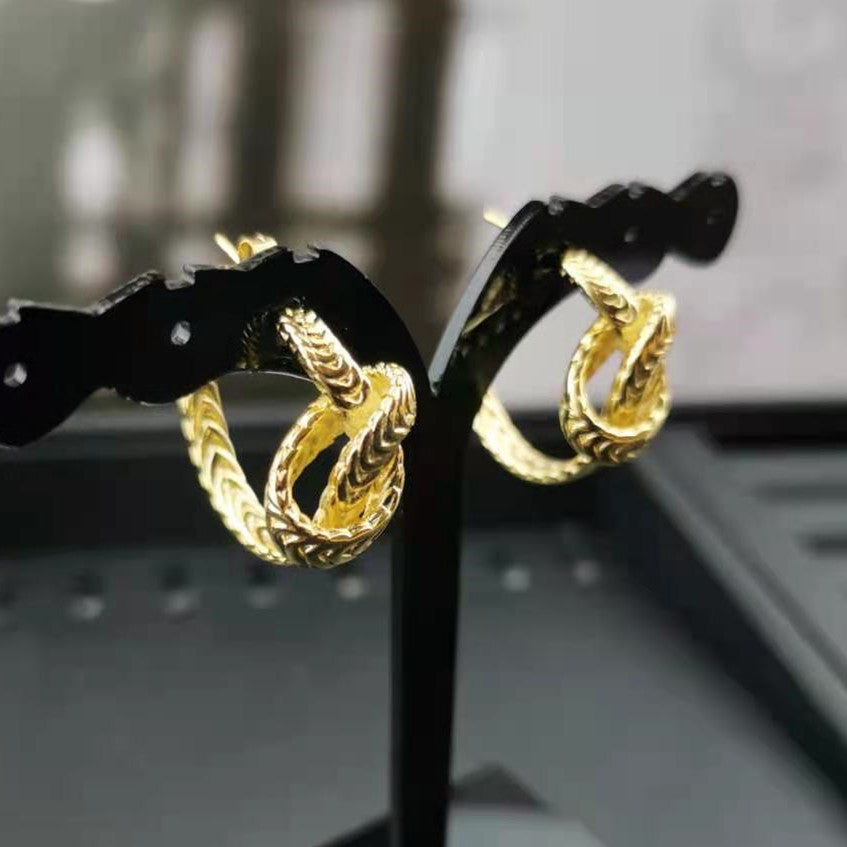 赛家新款耳钉麻花几何金色复古简约时尚耳饰麻花编织打结耳环女