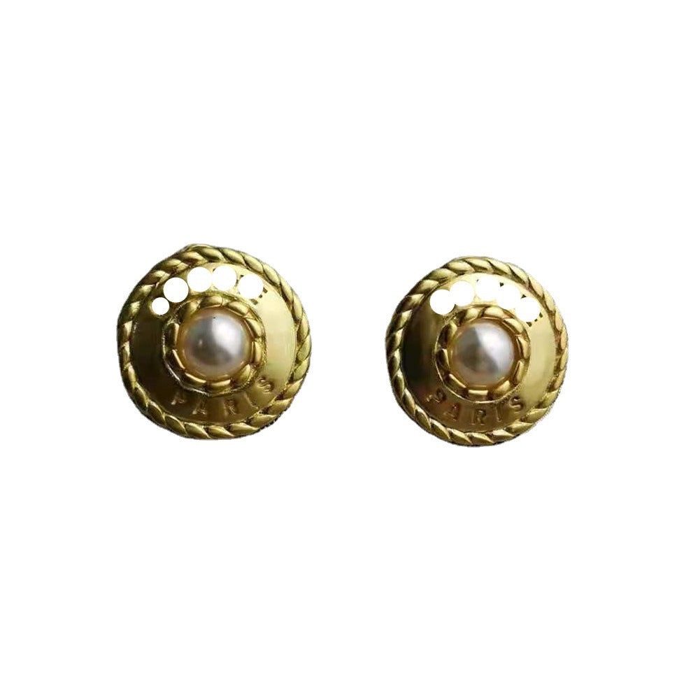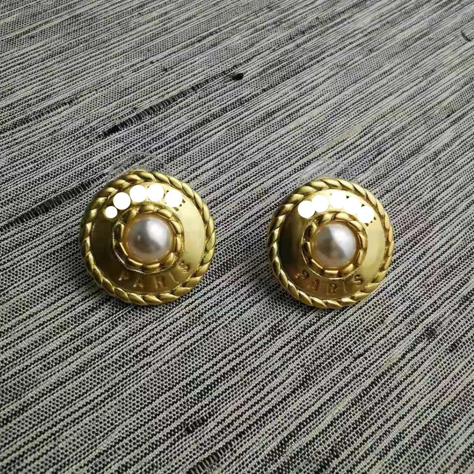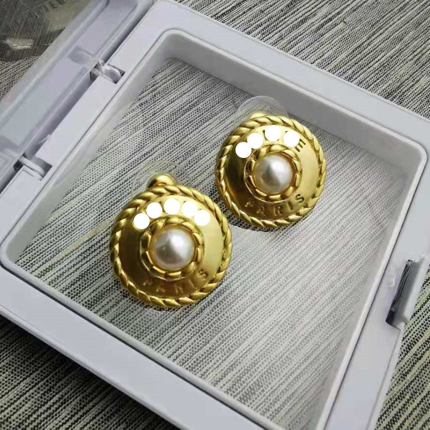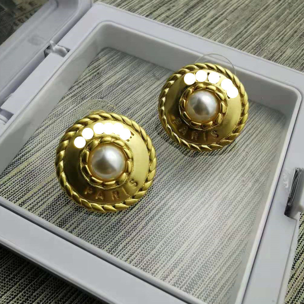 赛家新款麻花圈珍珠字母耳环中古vintage耳钉复古时尚