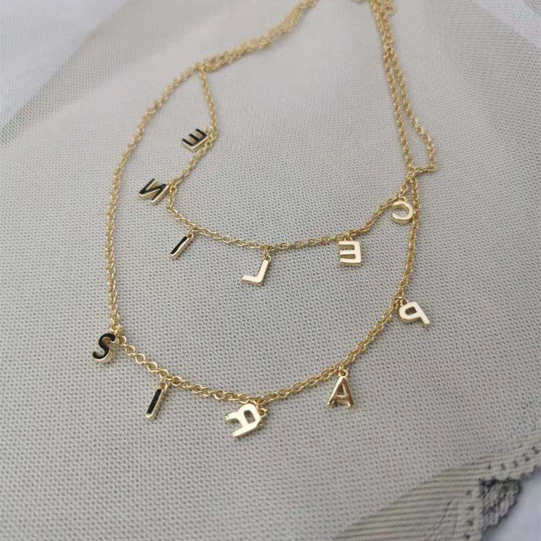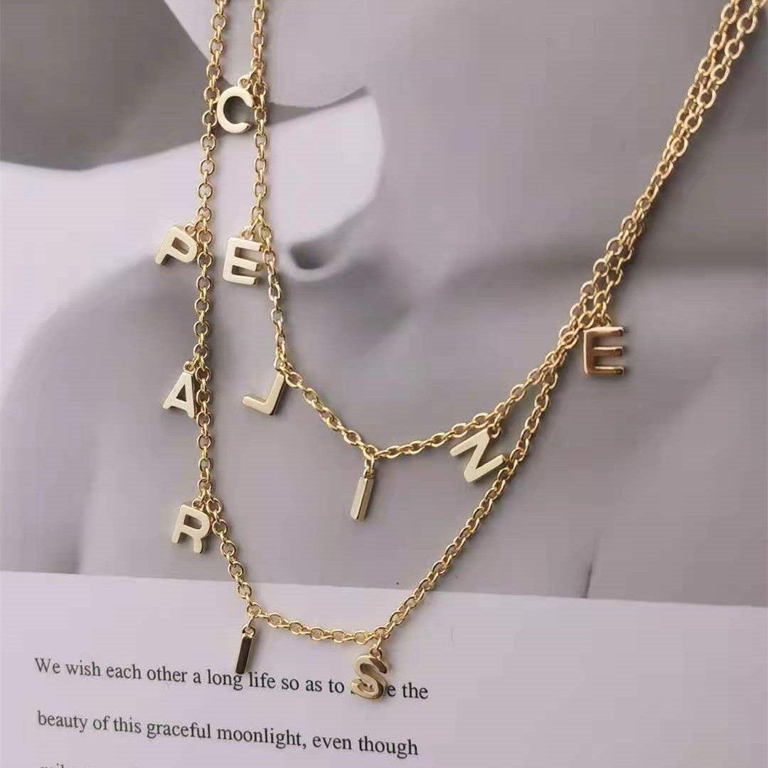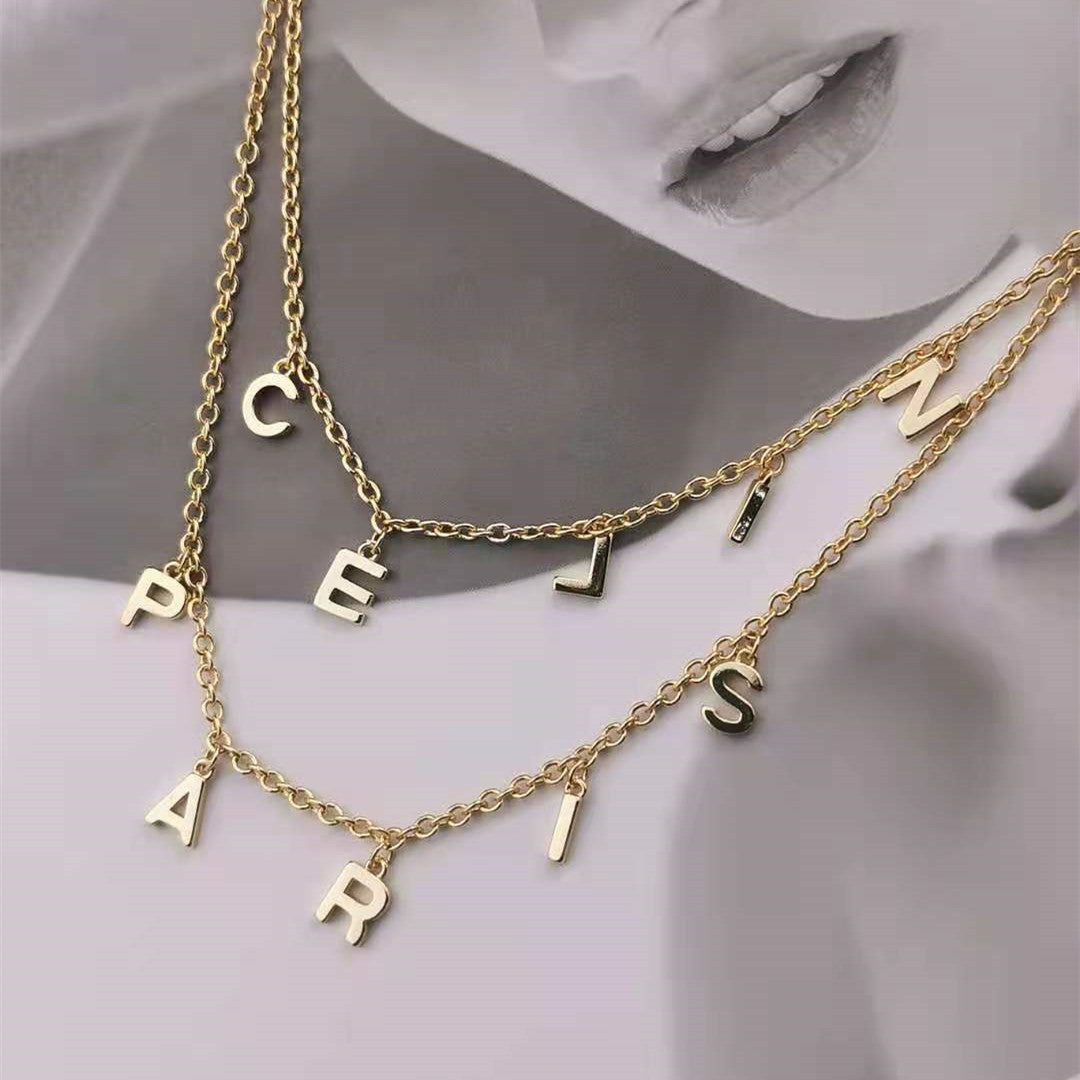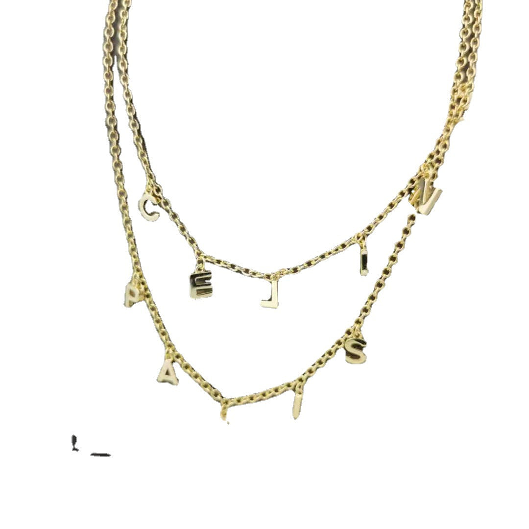 赛家新款celi字母双层项链女高级感时尚气质ins风字母流苏锁骨链