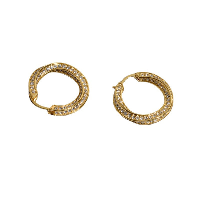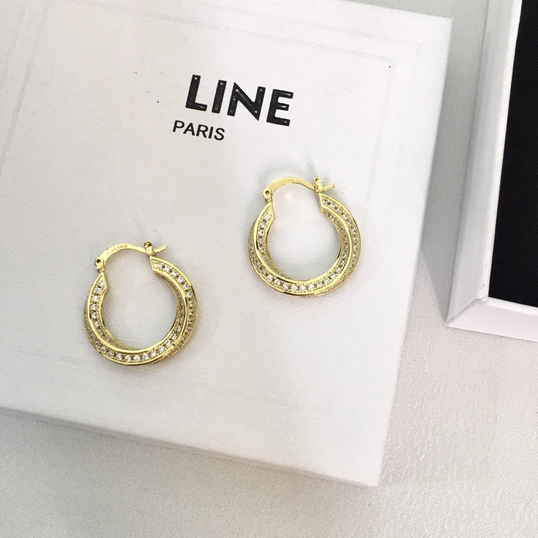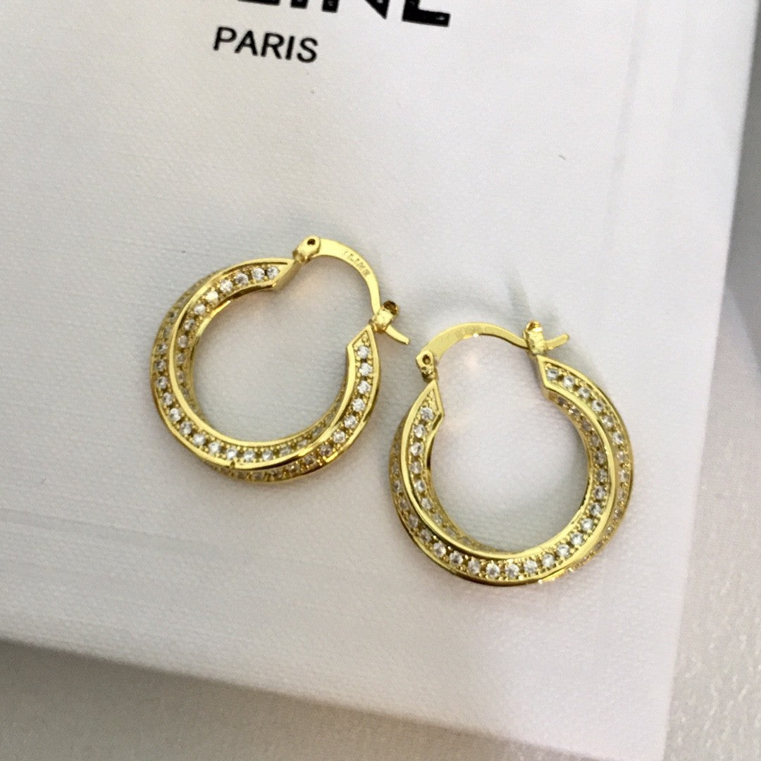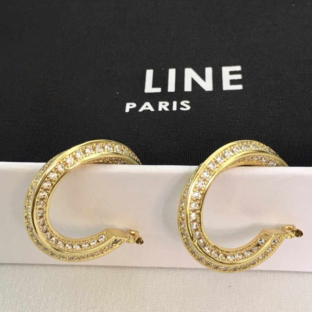 赛家2021新款耳环CEL满钻扭扭曲女欧美法式水晶耳钉镶钻圆圈耳圈