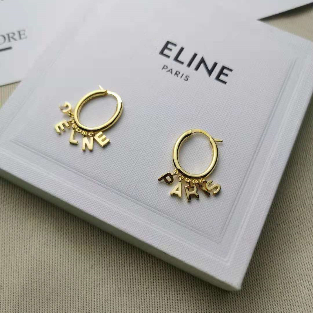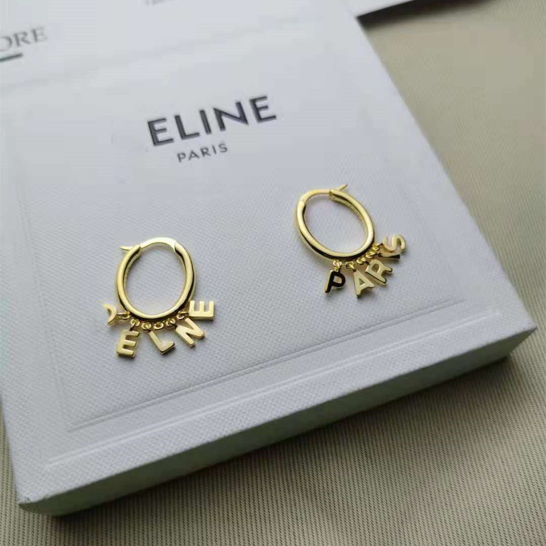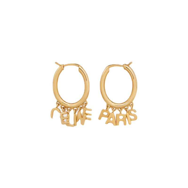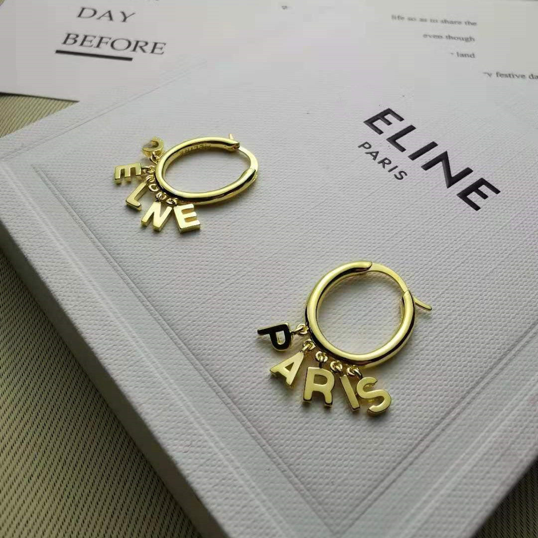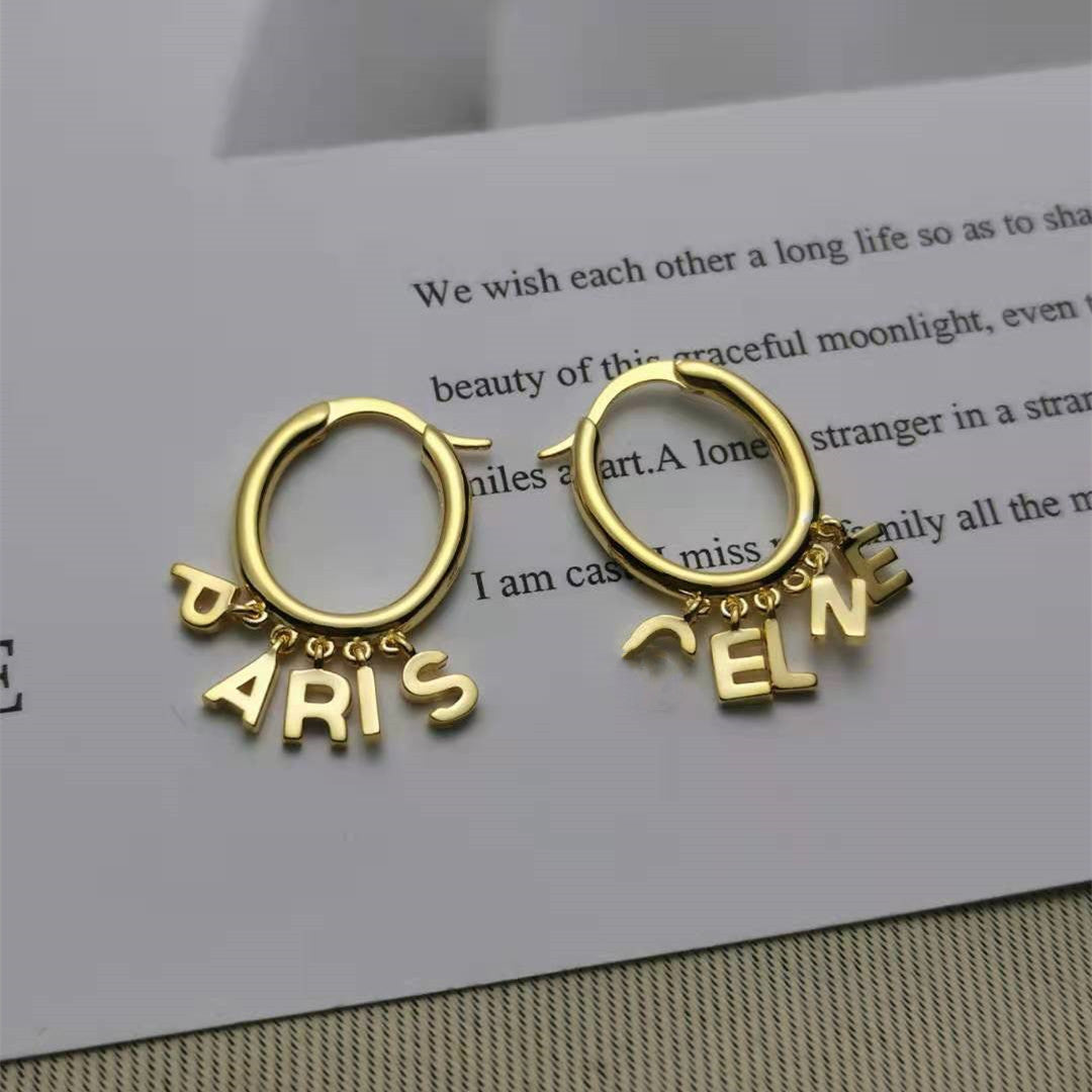 赛家2021新款logo字母耳环女高级感气质耳圈Celin风金色流苏耳扣