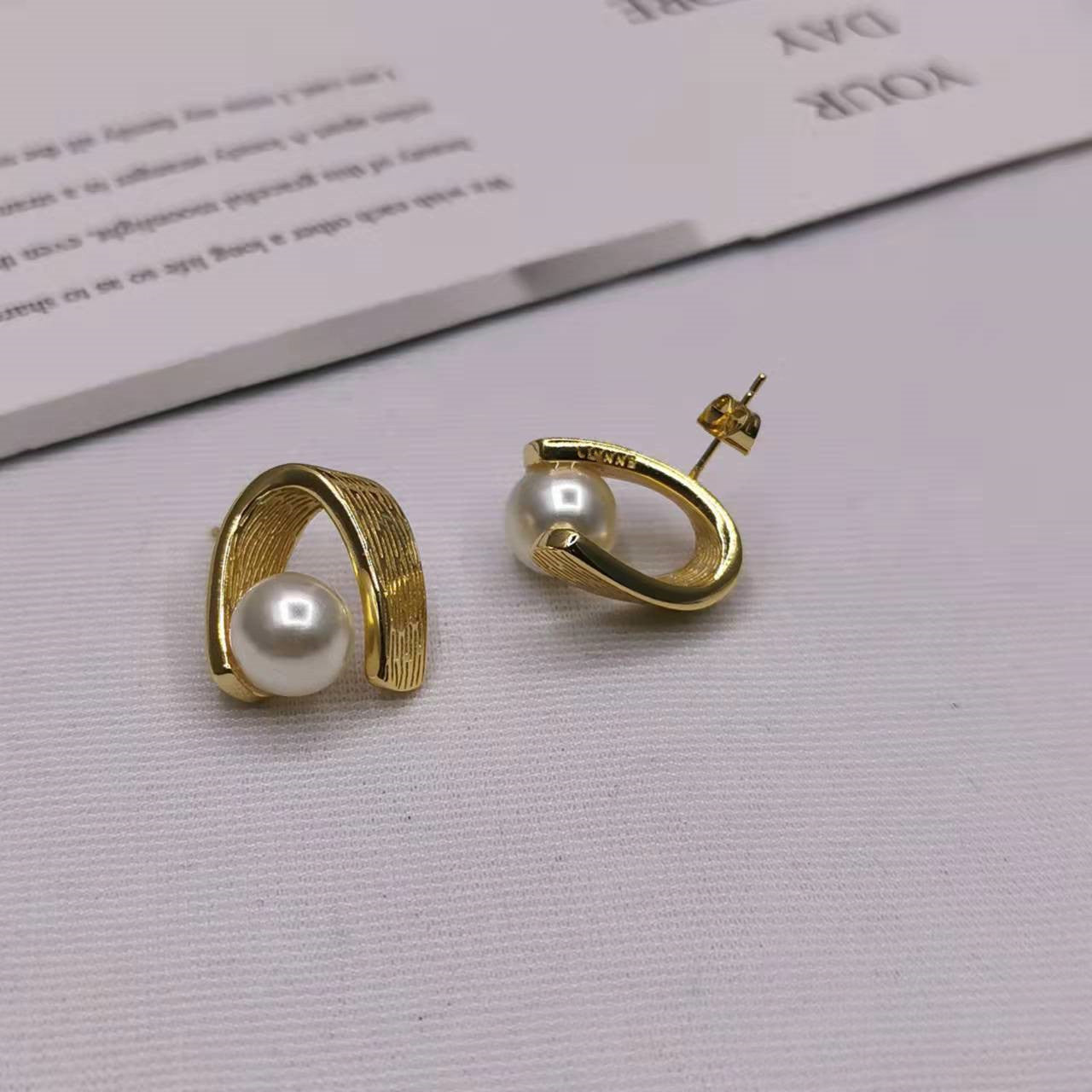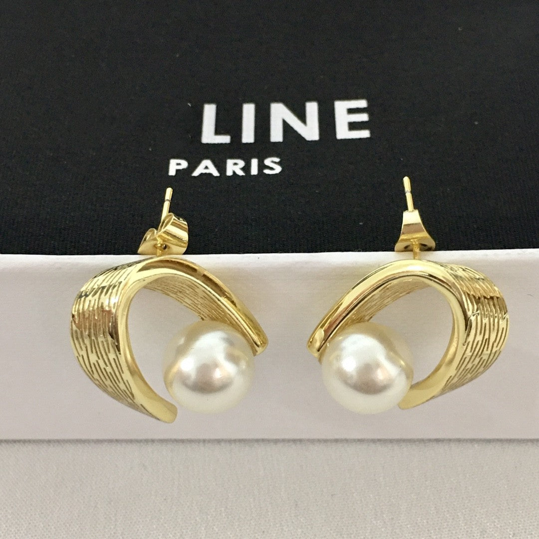 赛家21新款不规则曲面珍珠耳钉女高级感气质法式几何弧形耳环