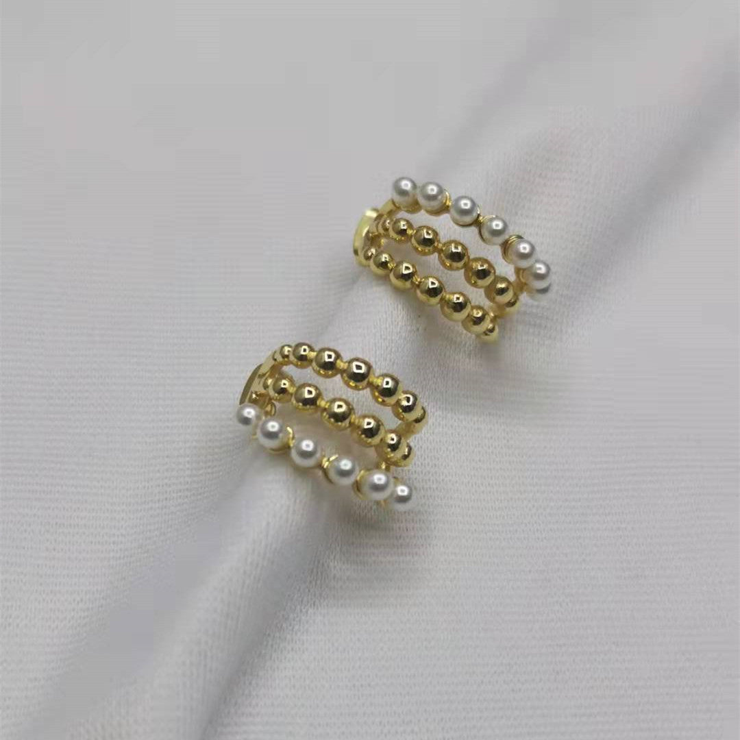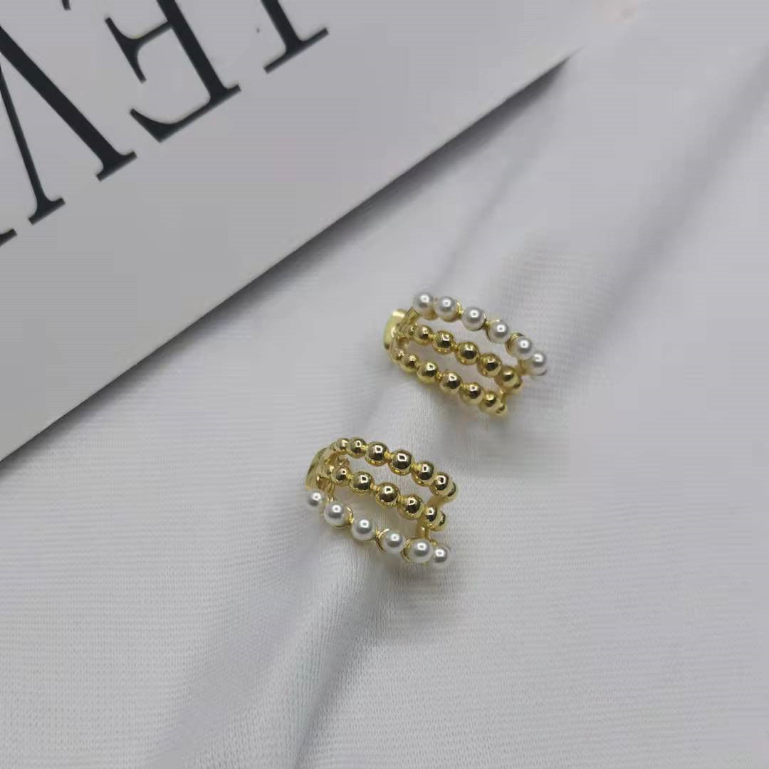 赛家21新款珍珠C形几何形耳钉女高级感气质设计感甜美三层耳环