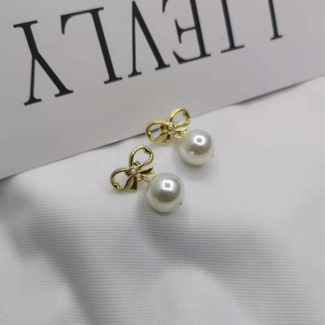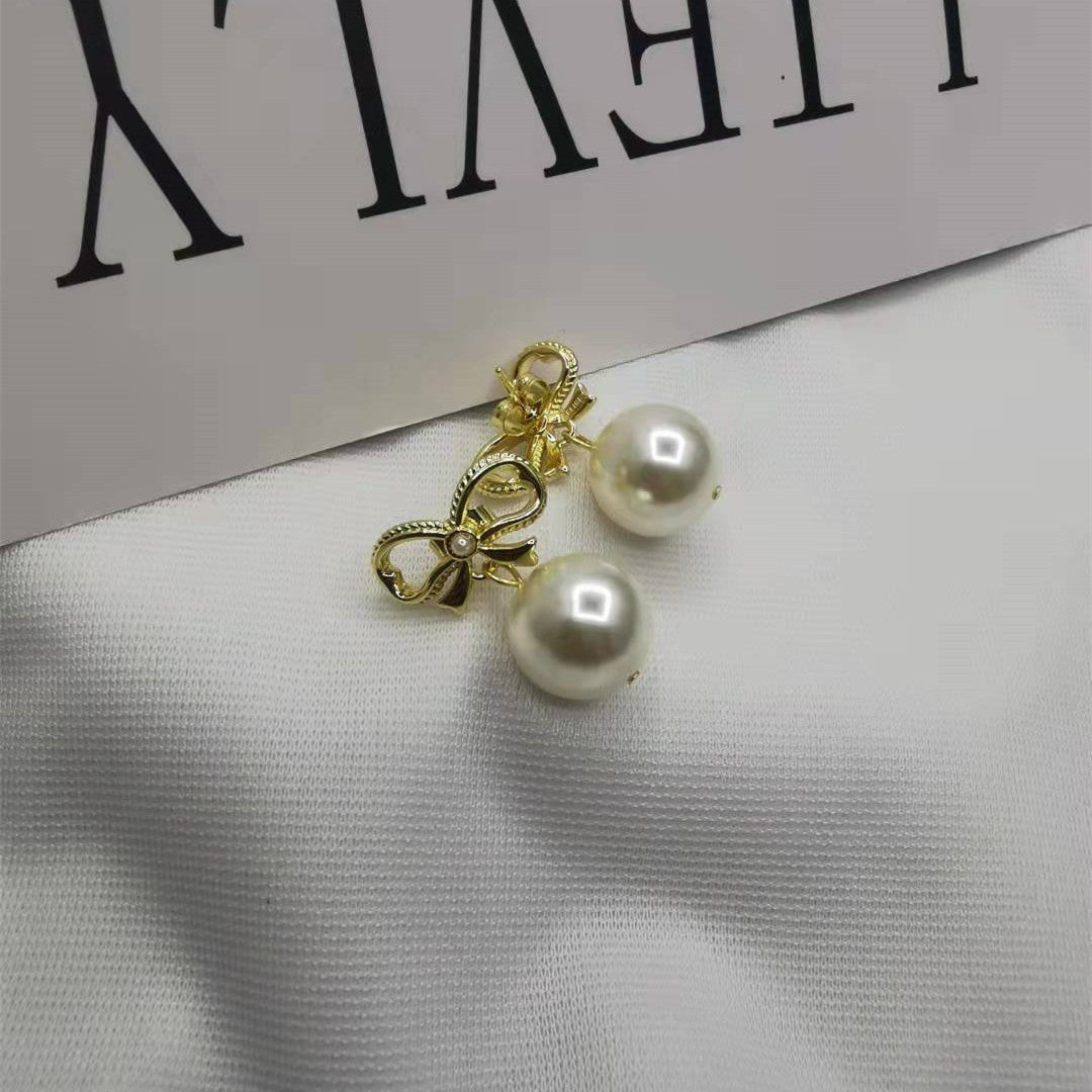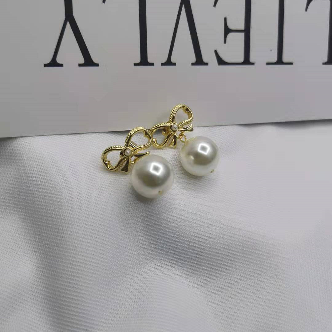 赛家21新款蝴蝶结耳钉珍珠耳坠女高级感甜美INS风几何形镀金耳环