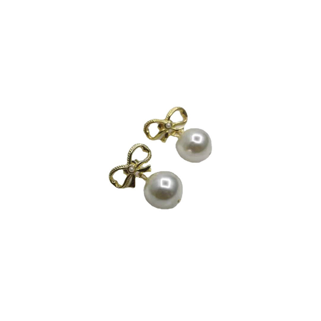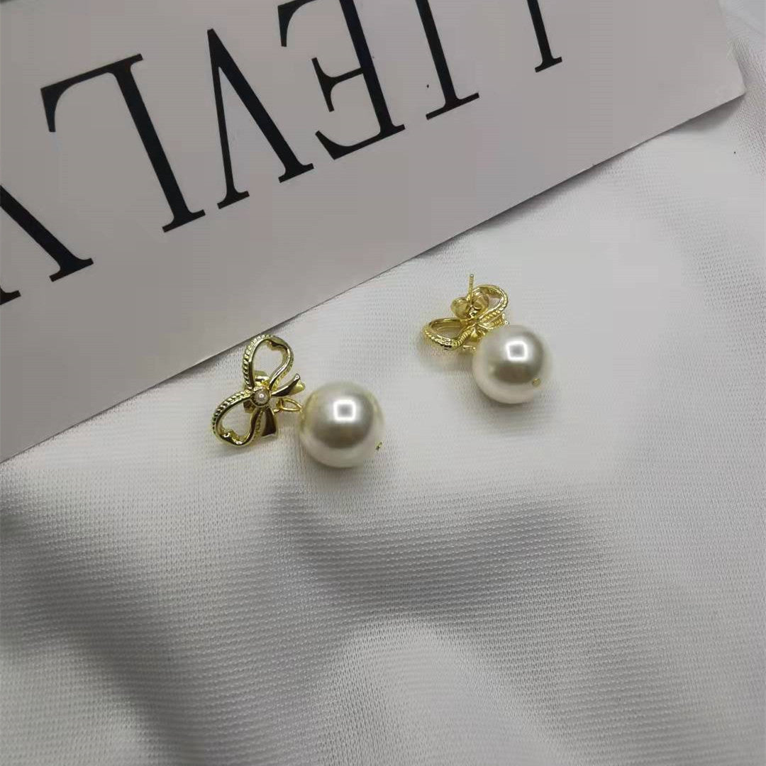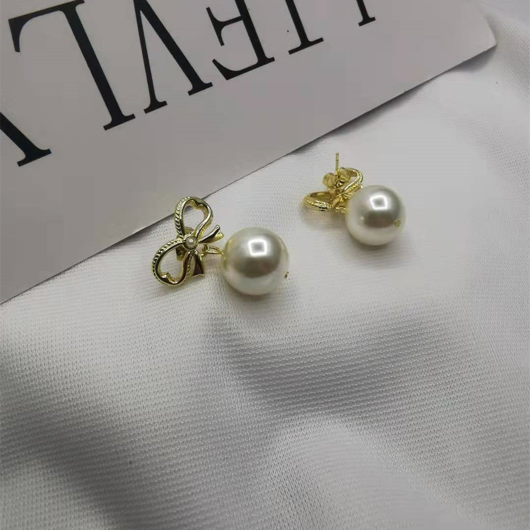 赛家21新款蝴蝶结耳钉珍珠耳坠女高级感甜美INS风几何形镀金耳环