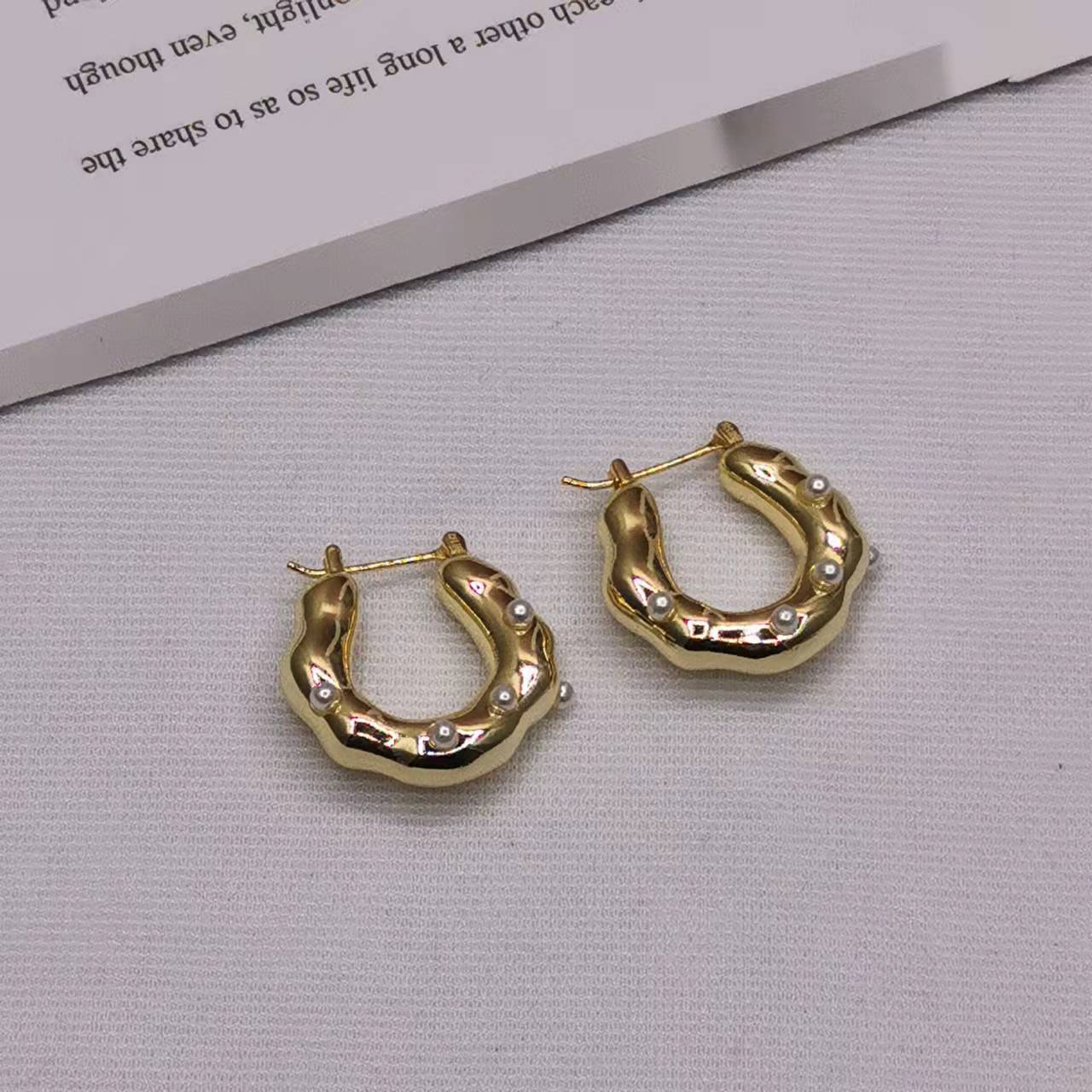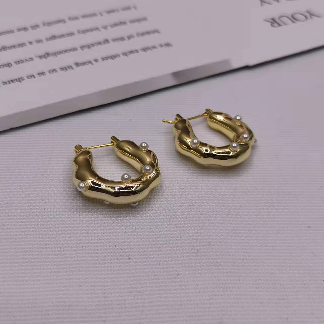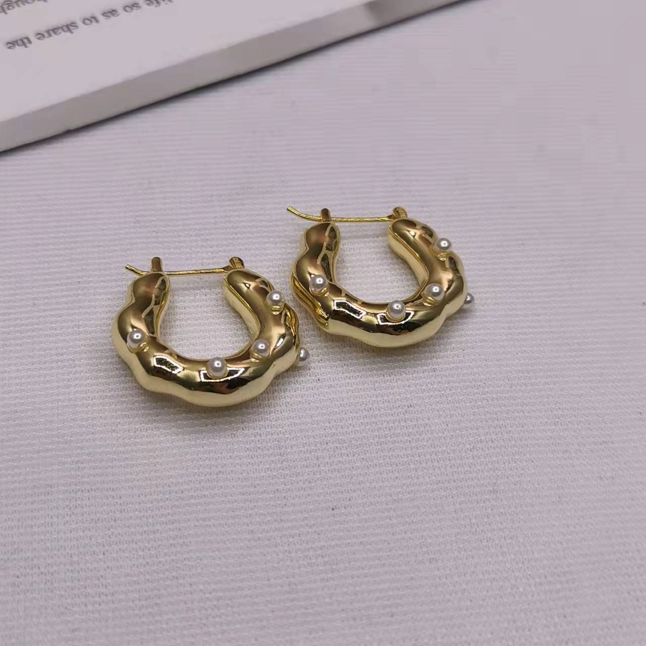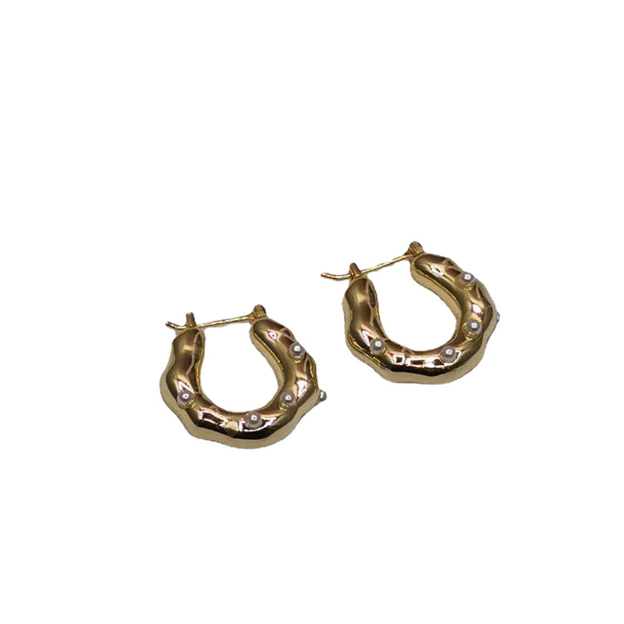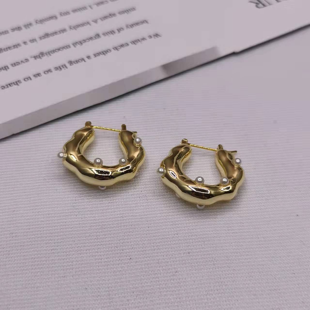 赛家21新款U形不规则耳环女珍珠光面高级感气质镀金几何形耳扣