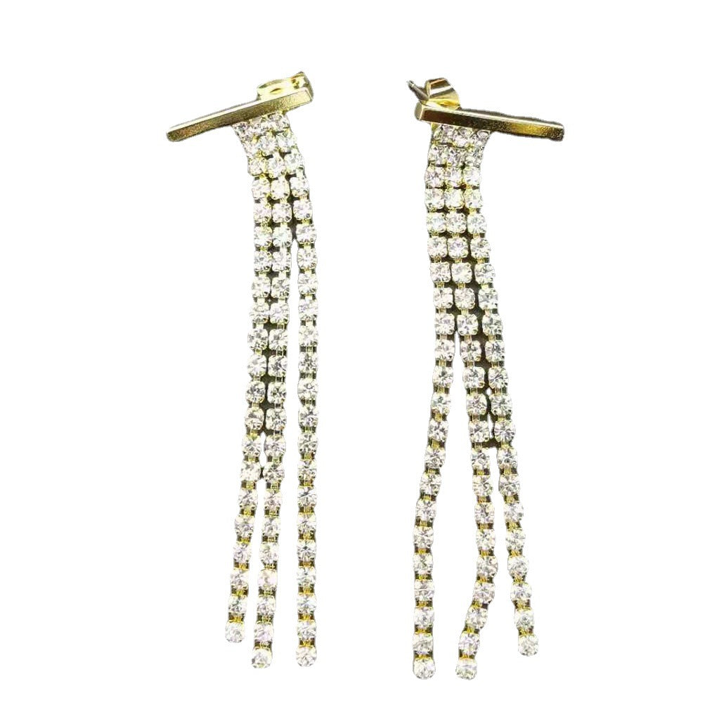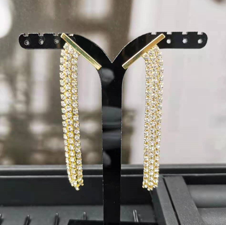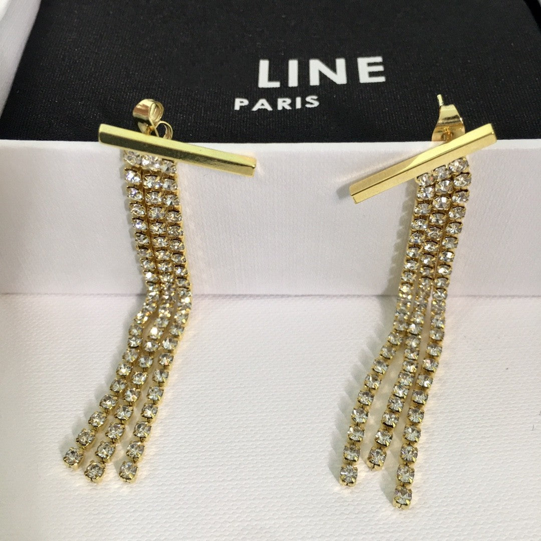 赛家celi风金色水晶长款耳环高级感时尚气质法式耳饰流苏满钻耳钉