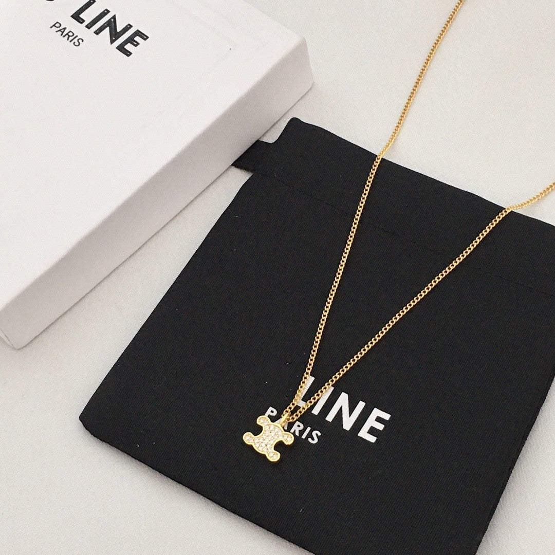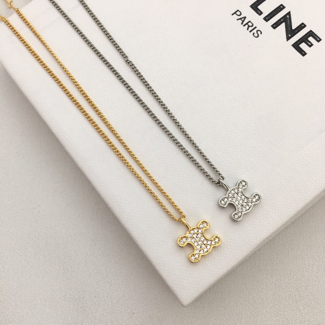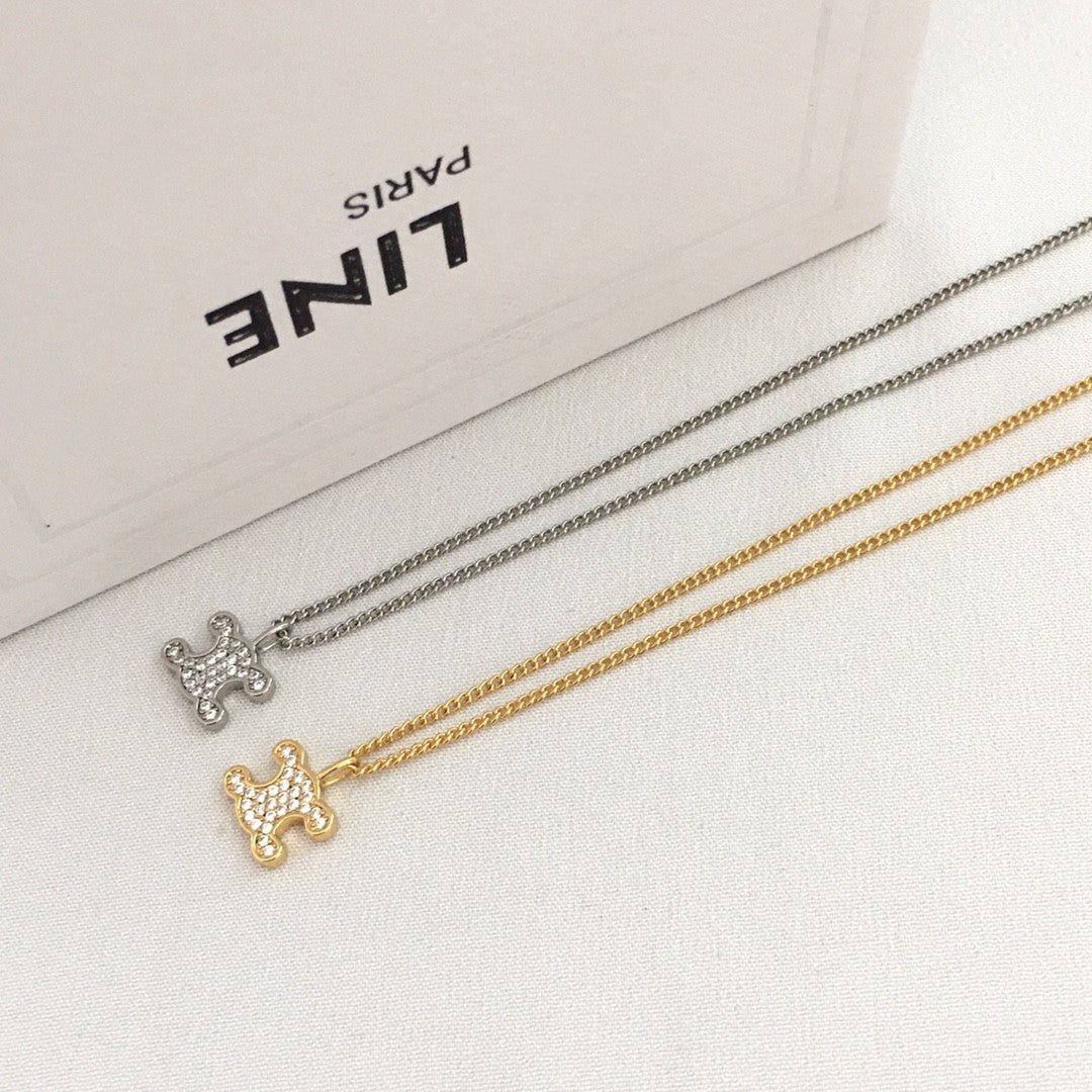 赛林家新款凯旋门满钻项链女高级感个性气质黄铜镀金锆石锁骨链