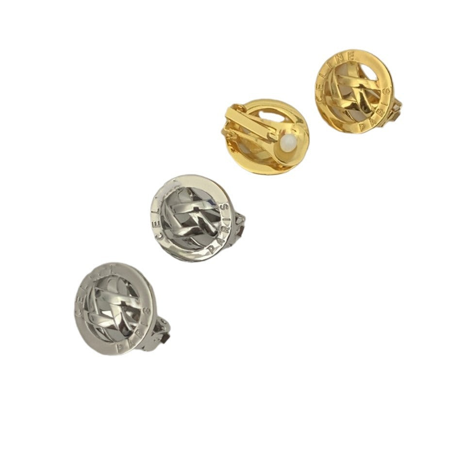 赛林家新款字母编织耳夹女中古vintage风CEL黄铜无耳洞格纹耳环