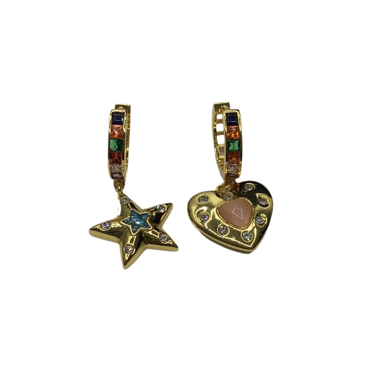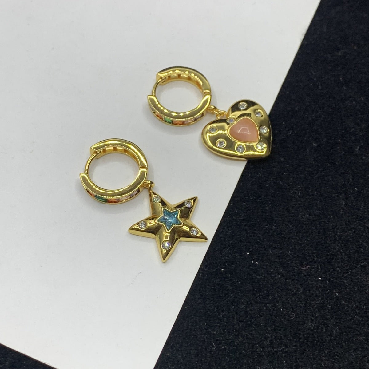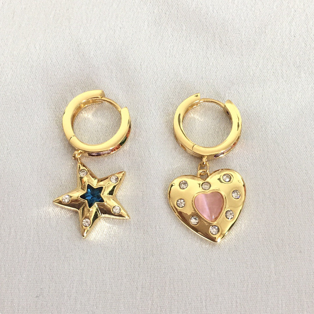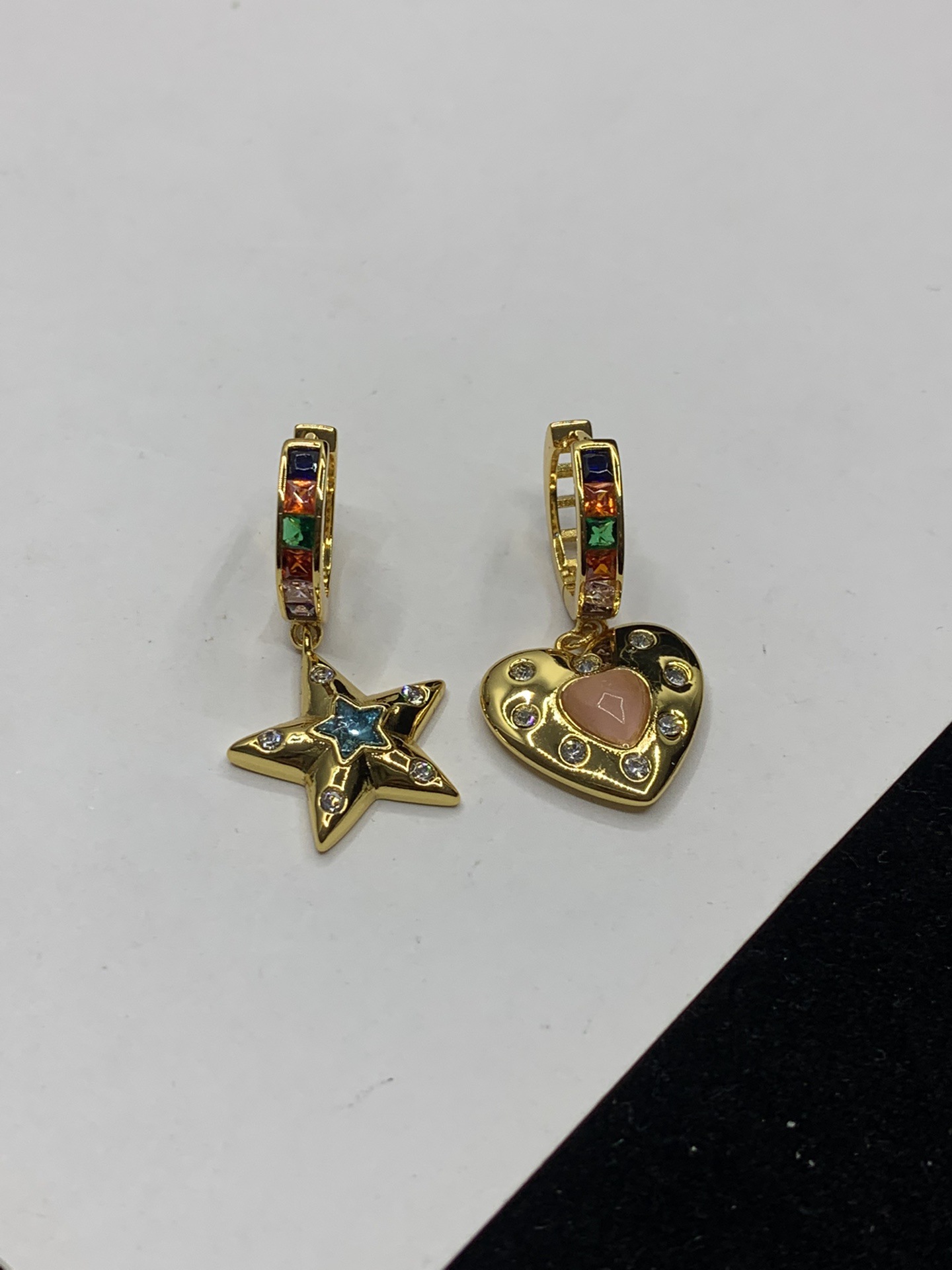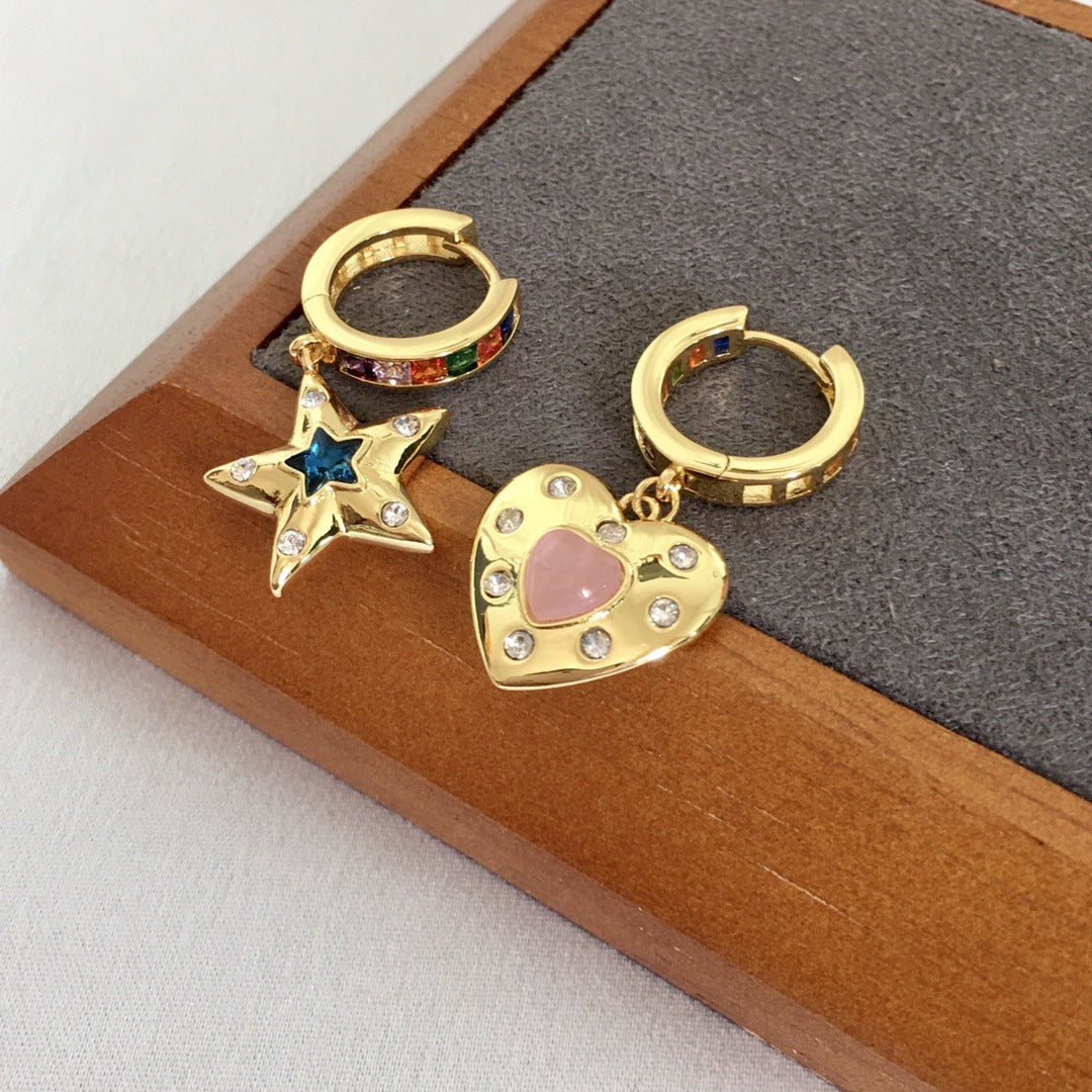 赛林家新款星星爱心耳环女高级感个性气质不对称彩钻猫眼心形耳饰
