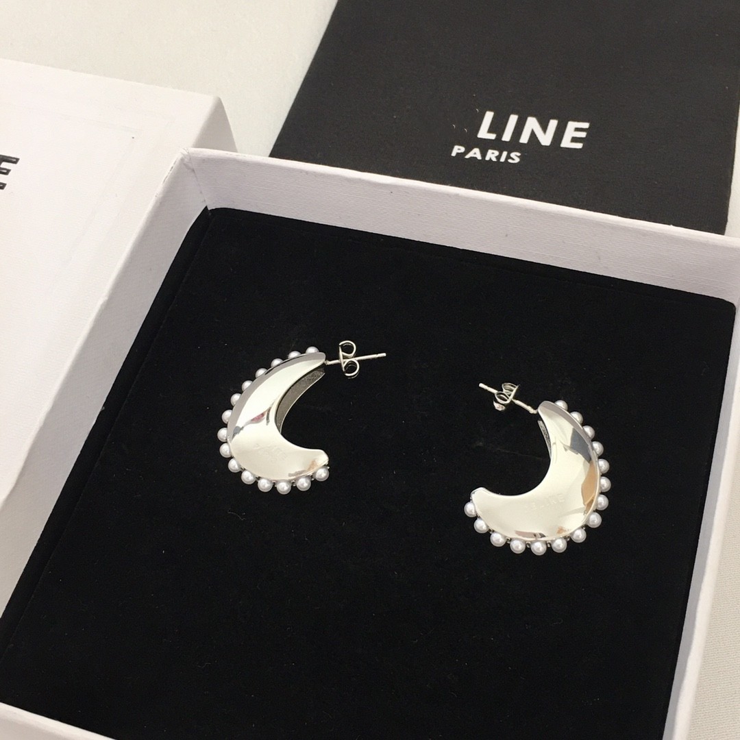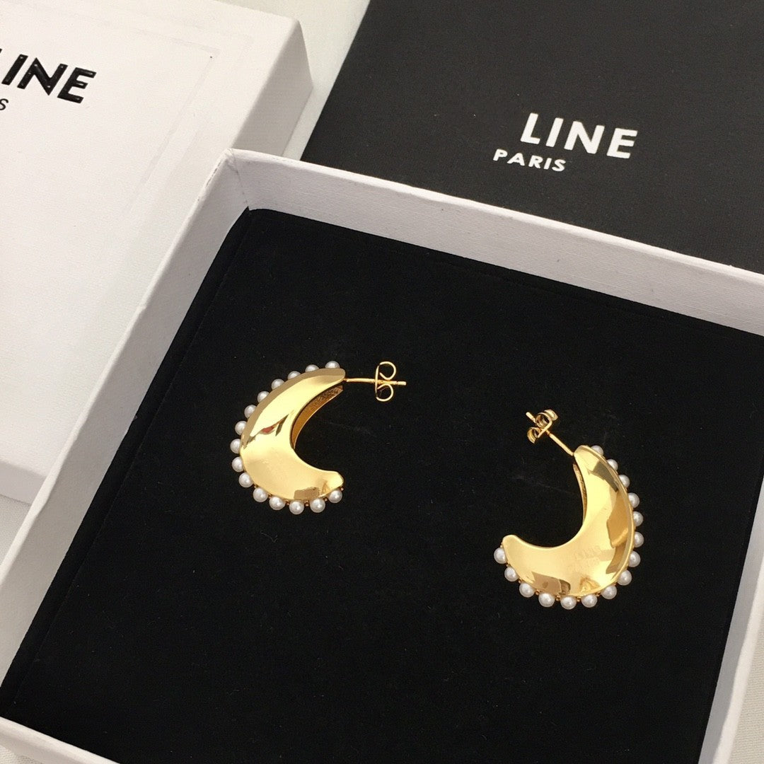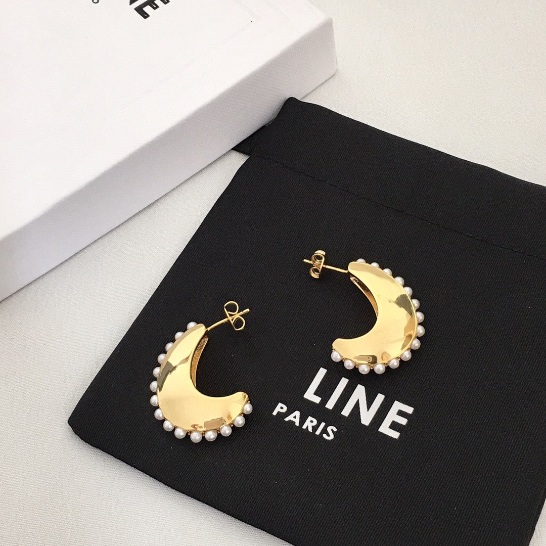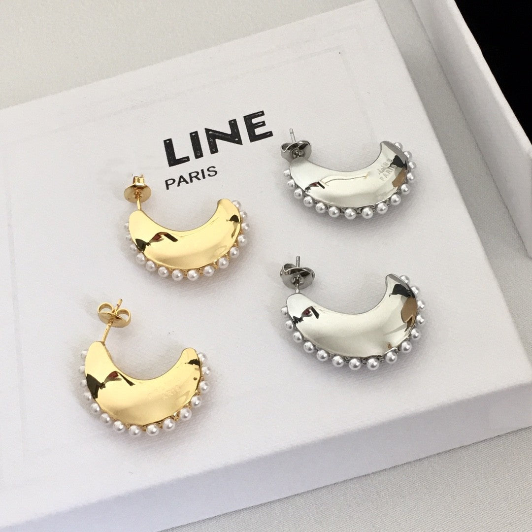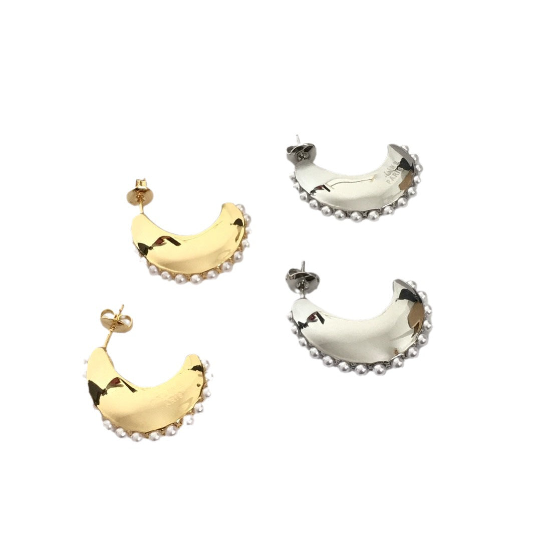 赛林家新款月亮珍珠耳钉女高级感个性气质黄铜镀金月牙耳环