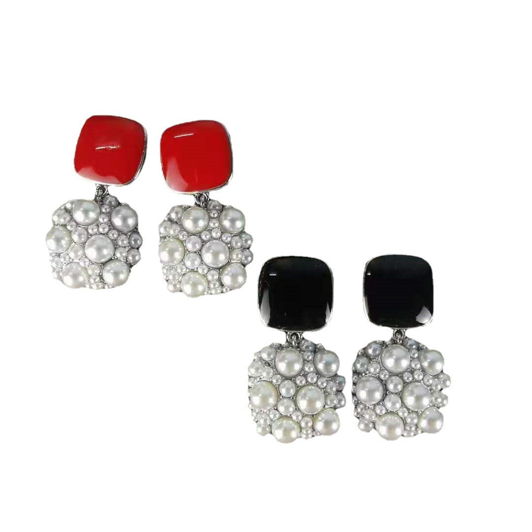 赛林家2021年新款耳环韩国气质感轻奢高级感镶钻珍珠方形耳钉女