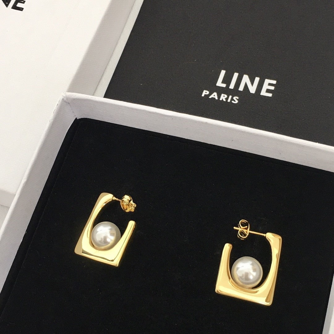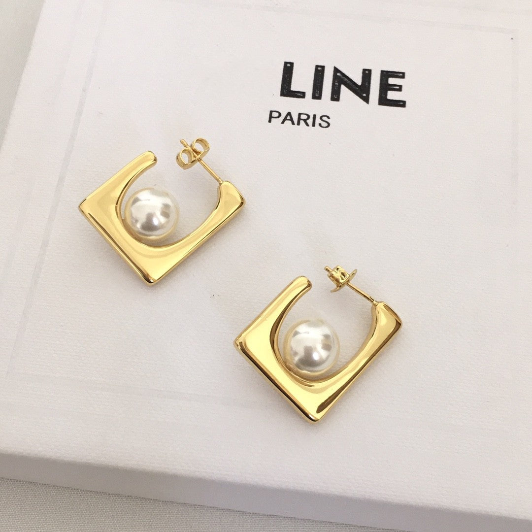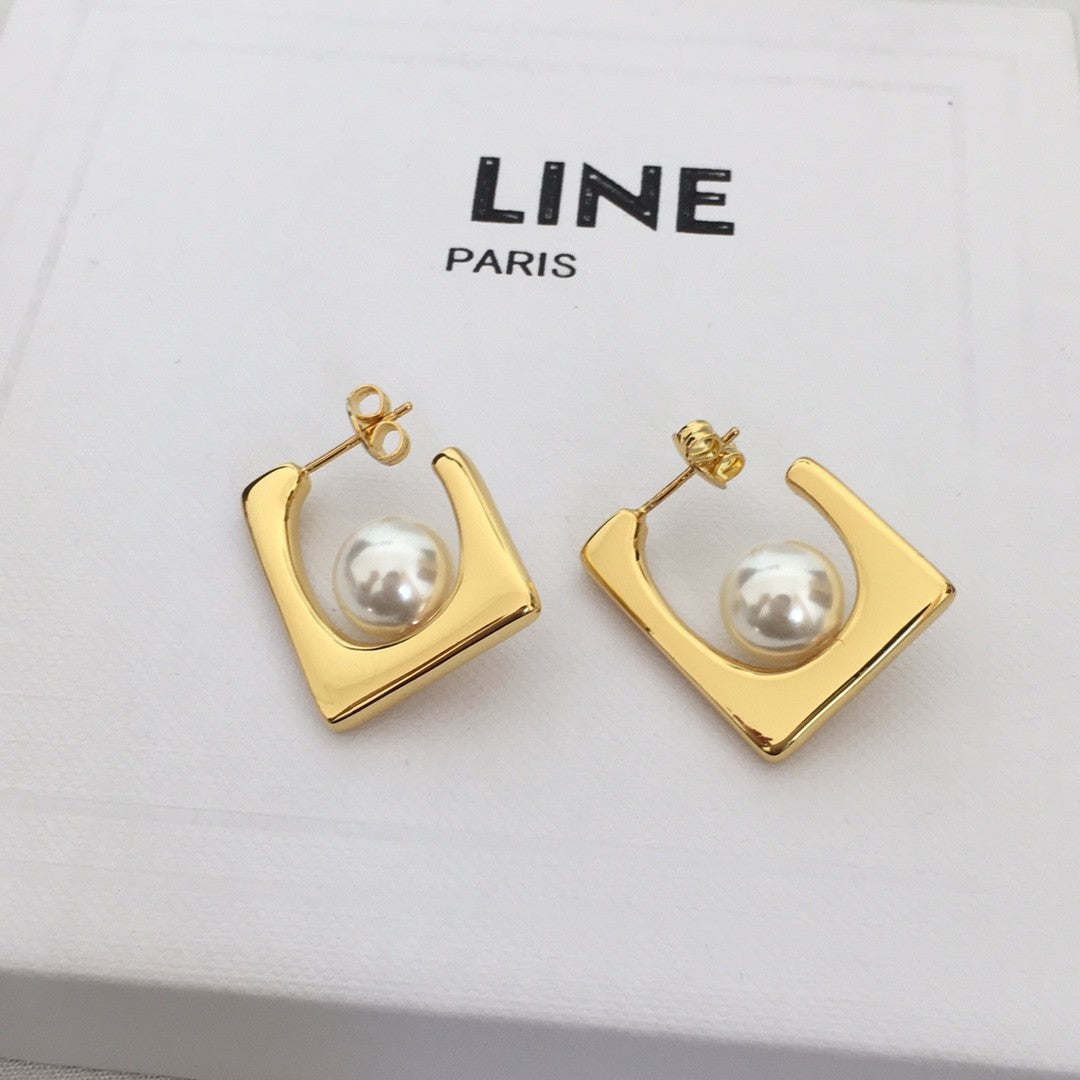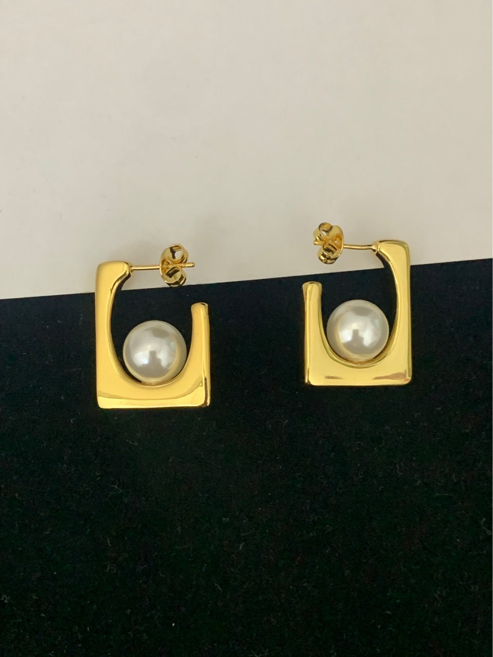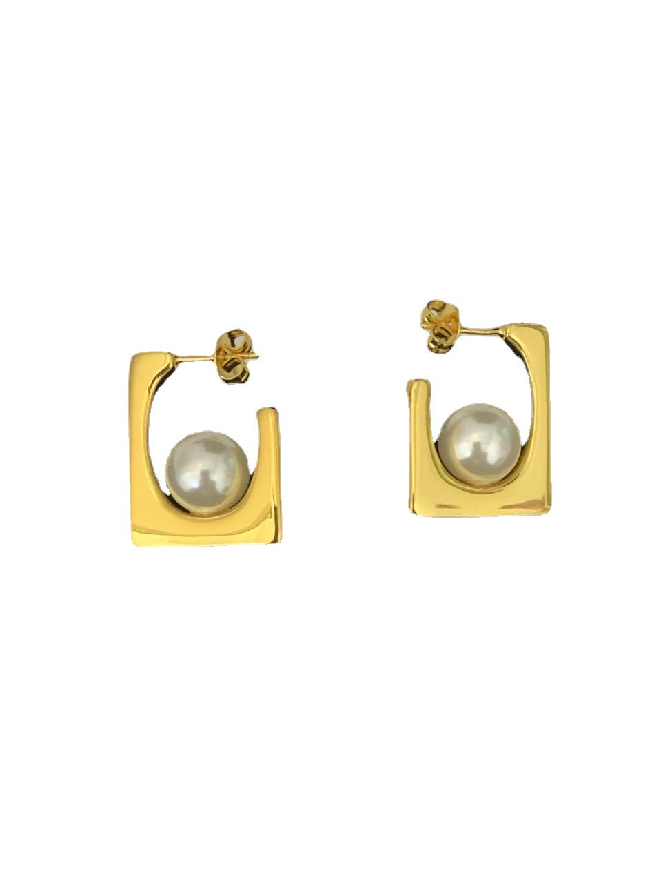 赛林家22新款几何型方框珍珠耳钉女式光身高级感气质港风金色耳环