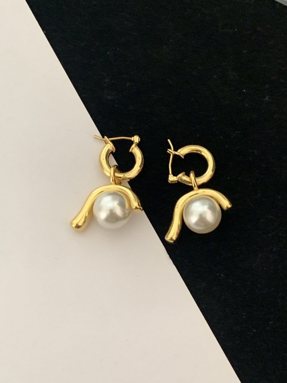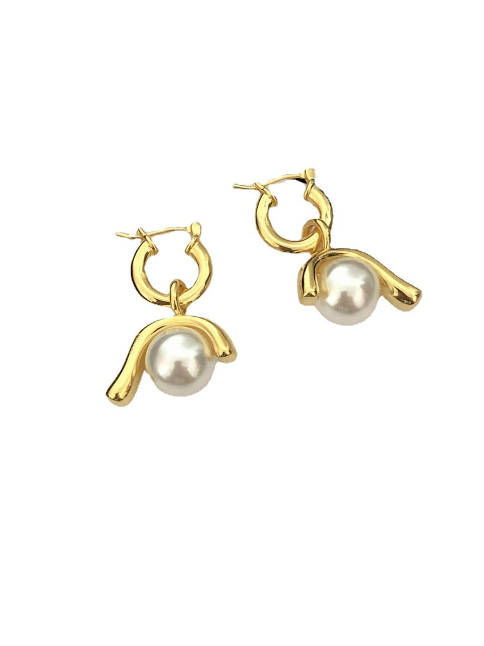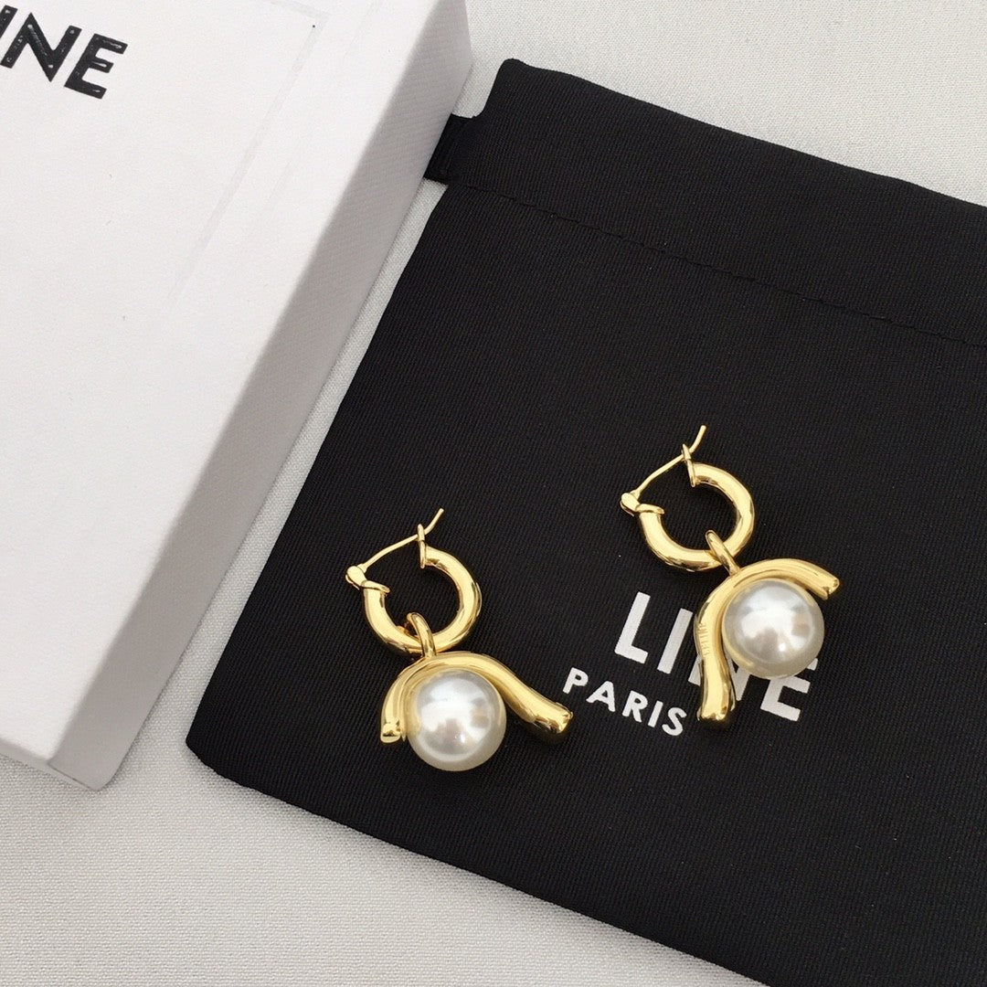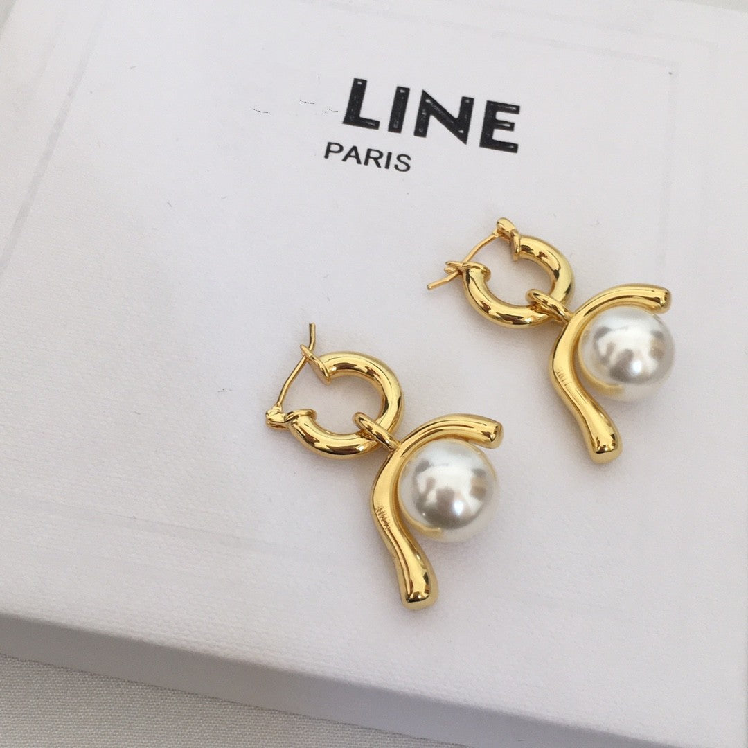 赛林家22新款几何型珍珠耳环女铜镀金港风气质光面镀真金直播供应