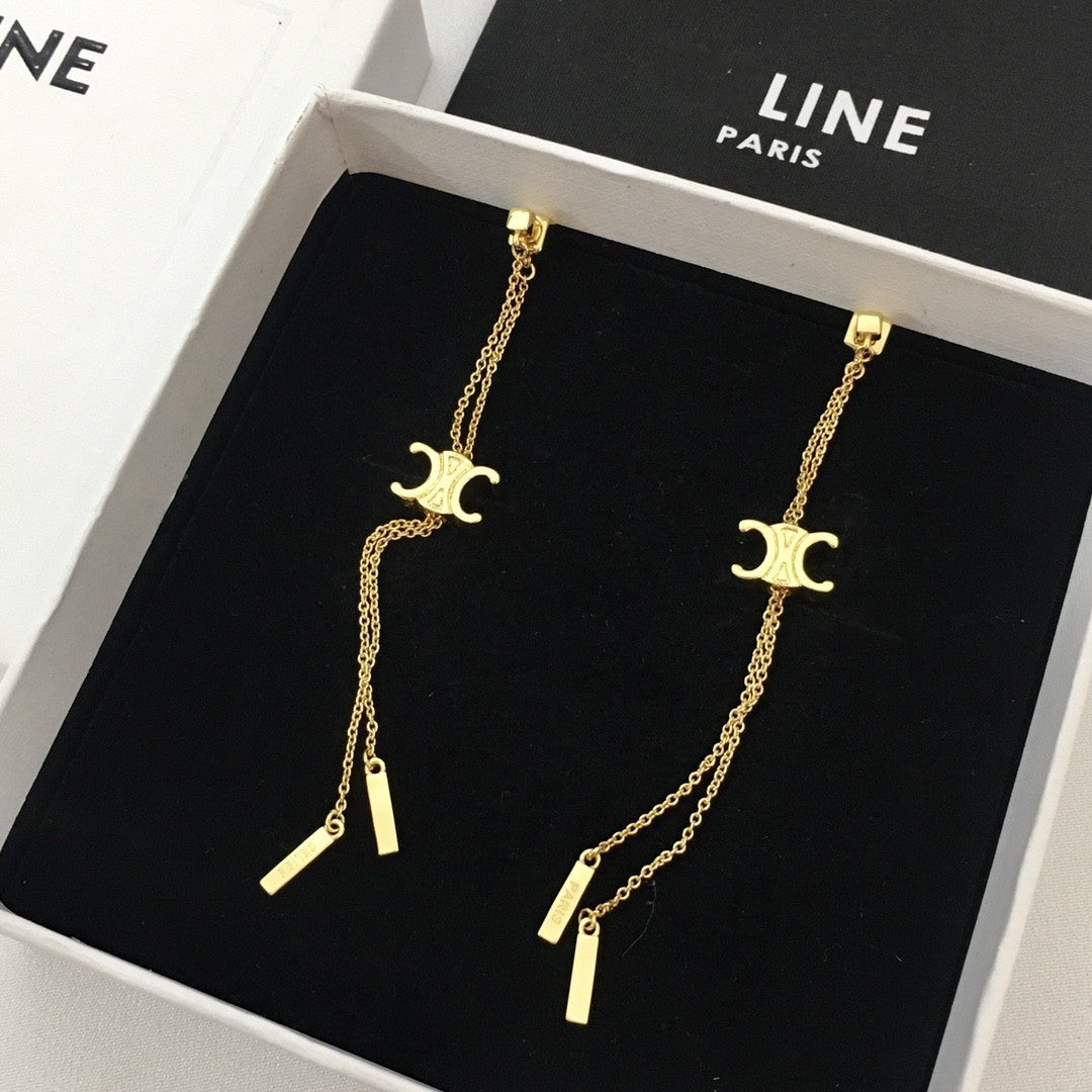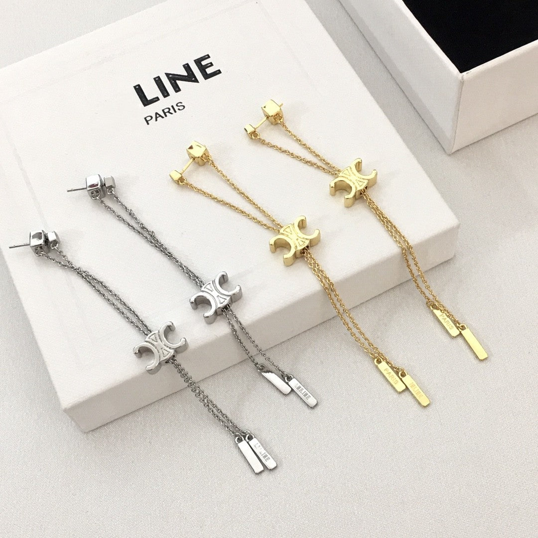 赛林家22新款凯旋门耳线长款流苏项链女高级感黄铜镀金耳钉