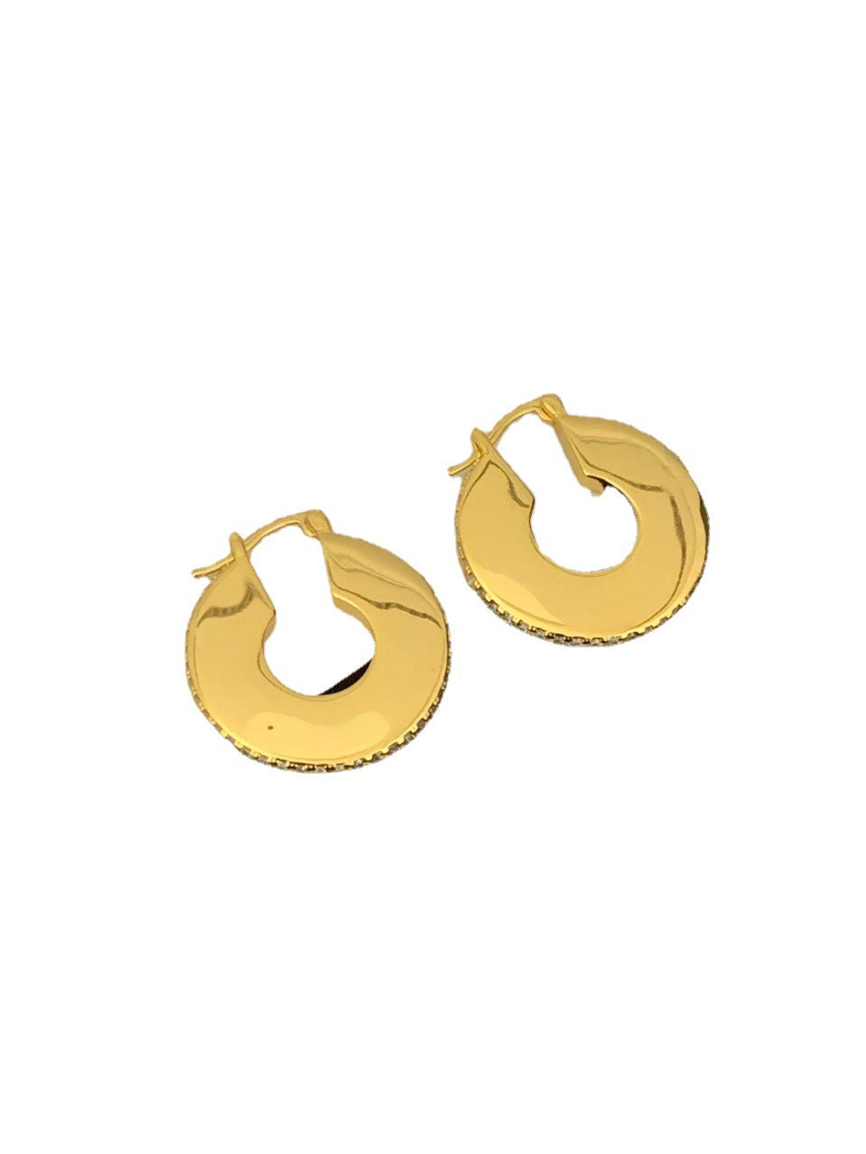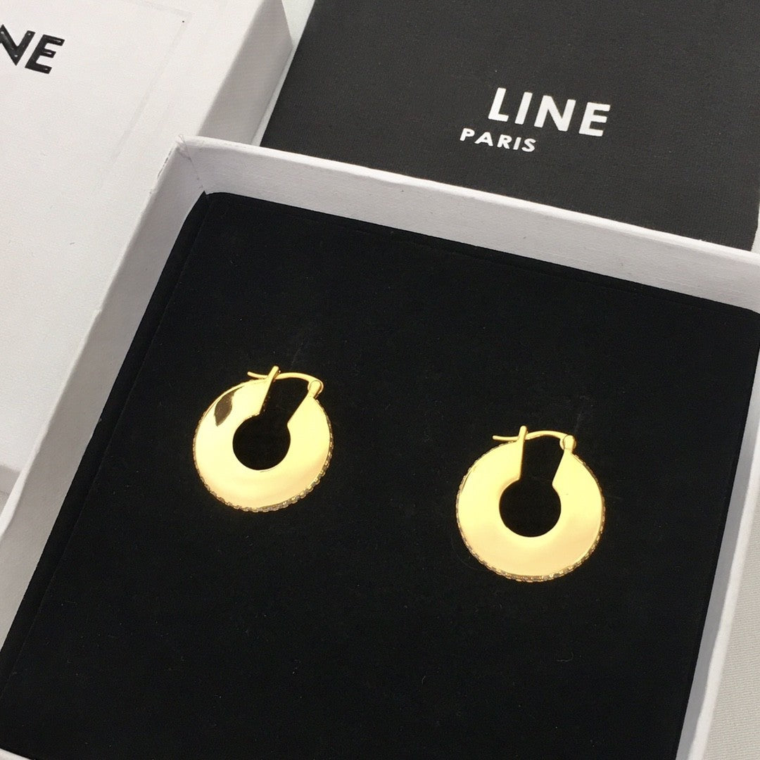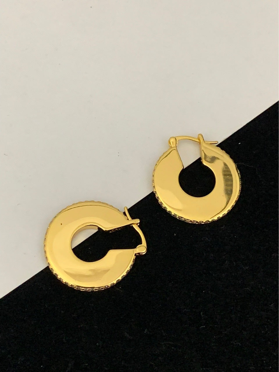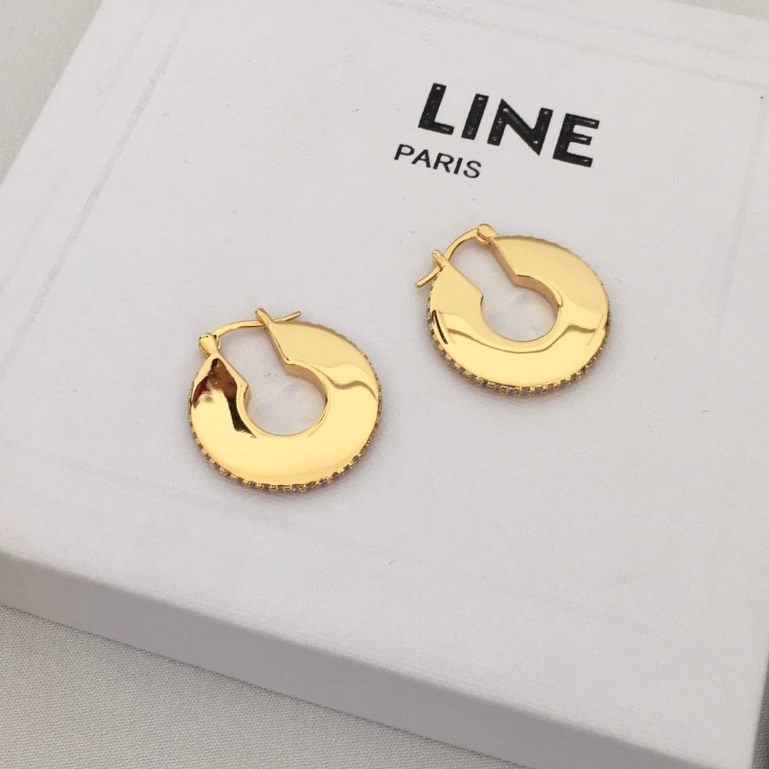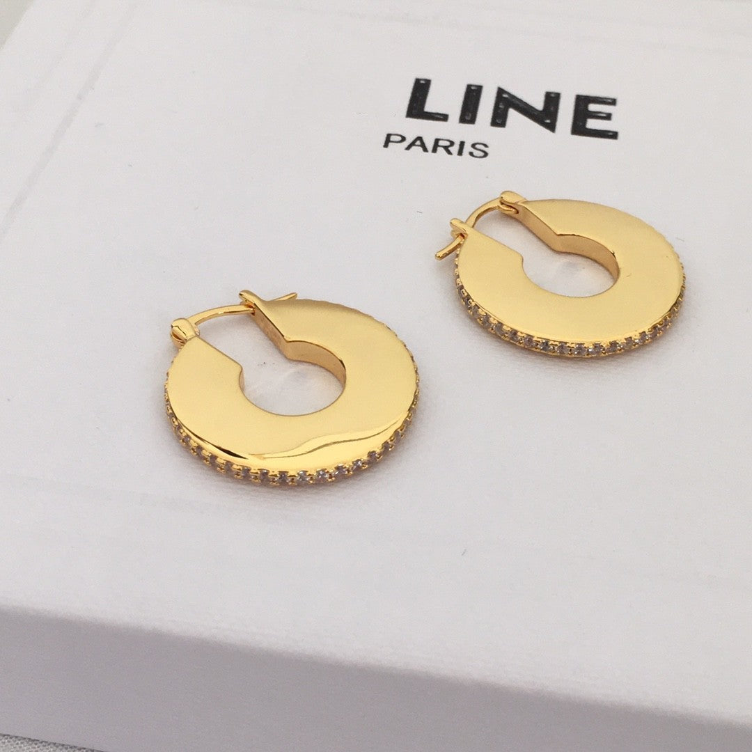 赛林家22新款圆形耳环女光面镶钻高级感气质黄铜镀金耳扣