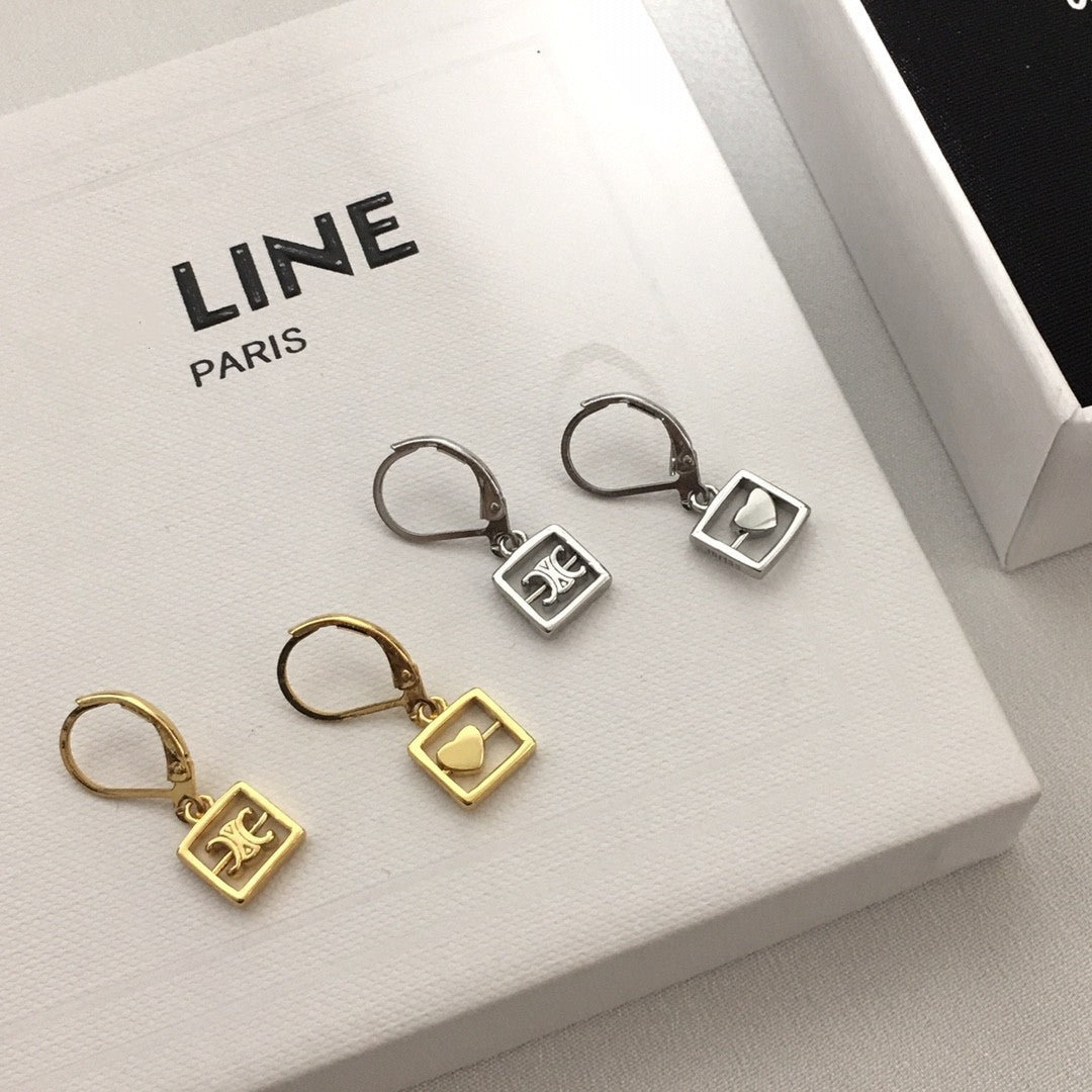 赛林家22新款方块凯旋门爱心不对称耳环女高级感气质CE风直播供应