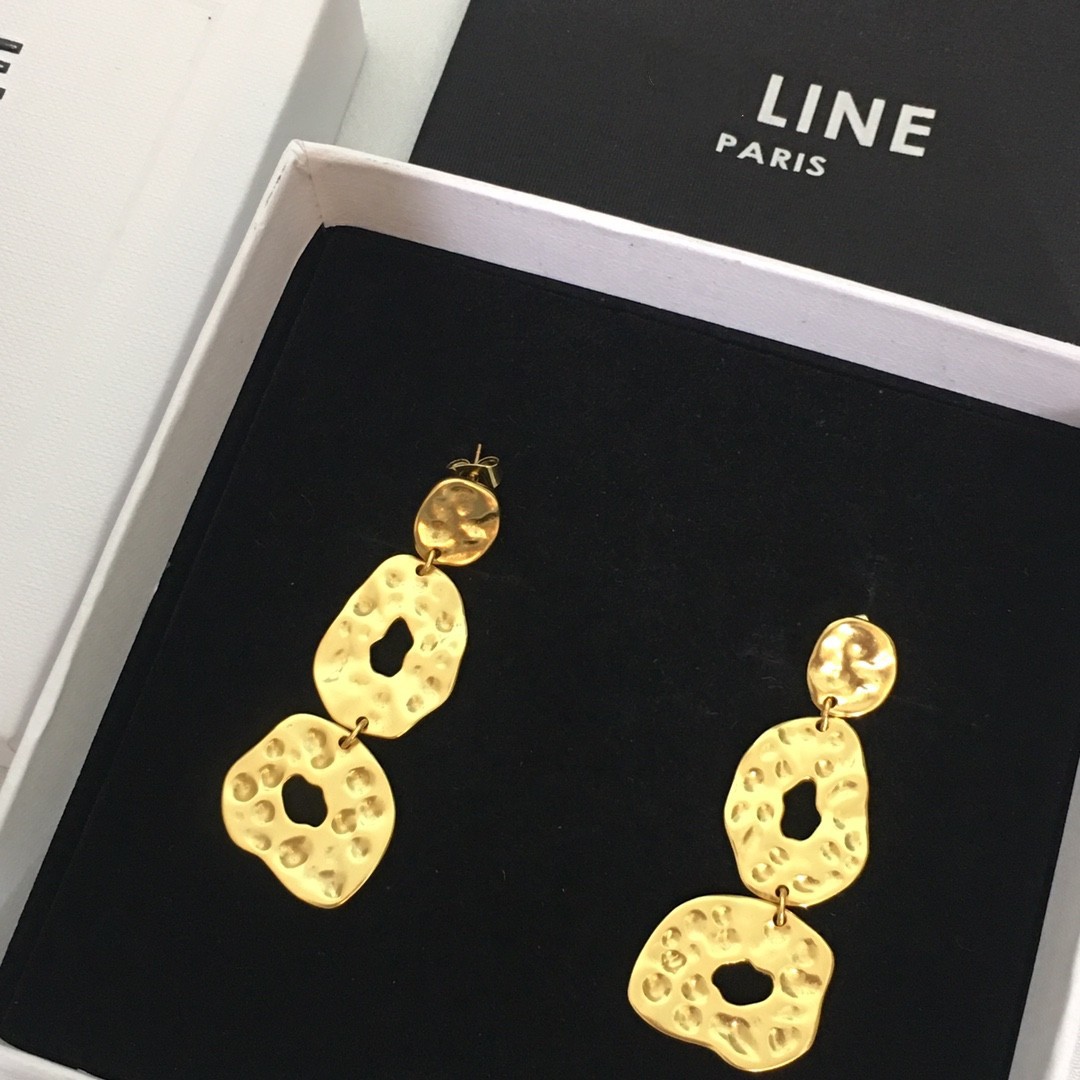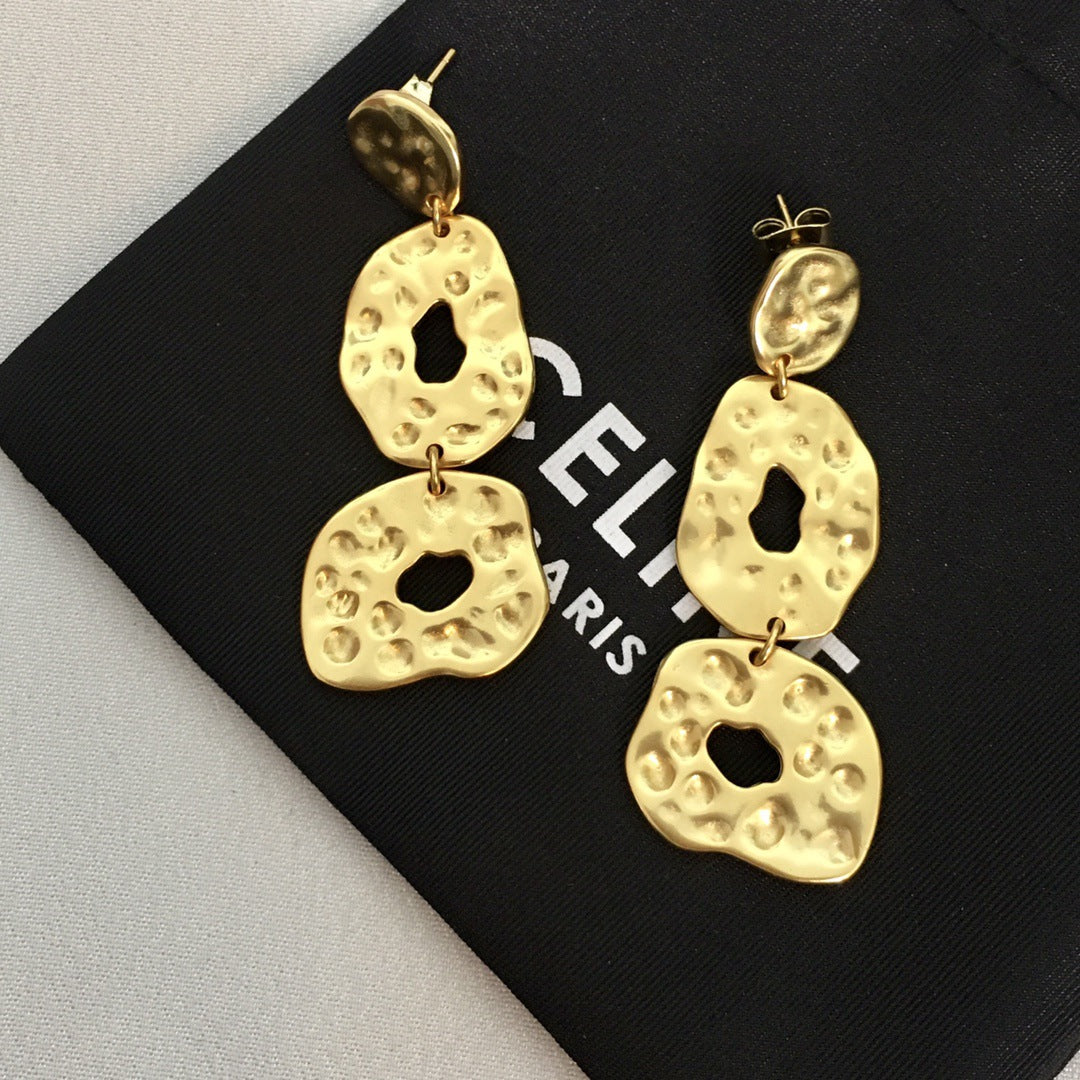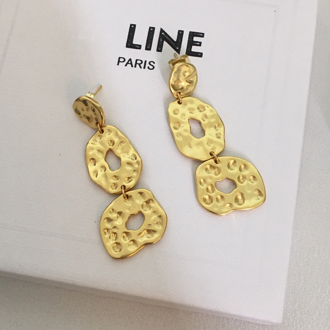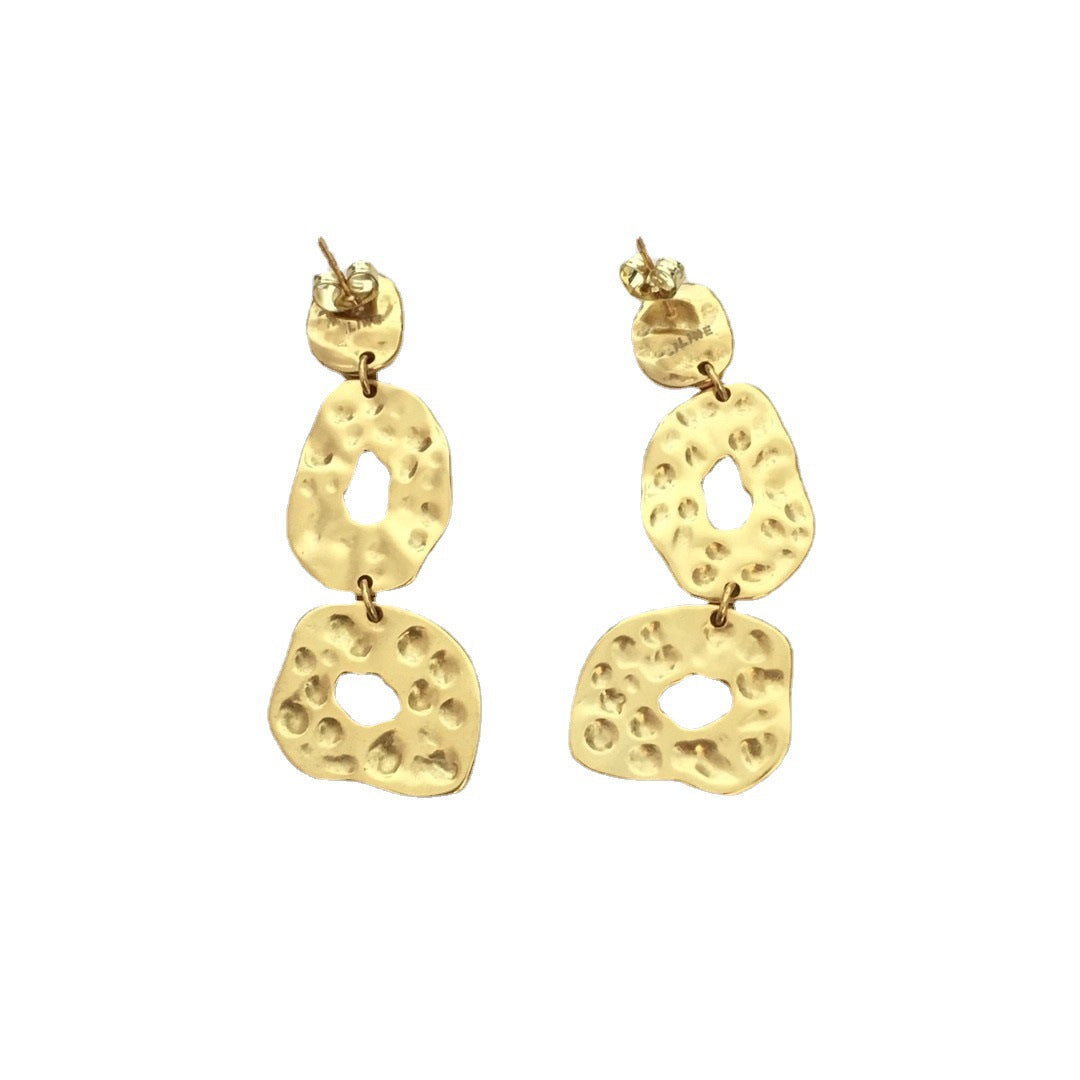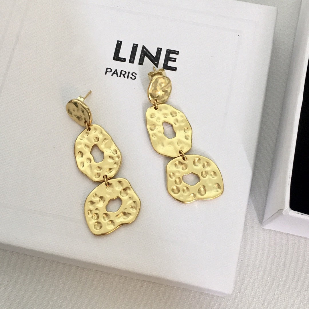 赛林家23新款三环耳钉女高级感气质欧美风黄铜镀金不规则圆片耳环