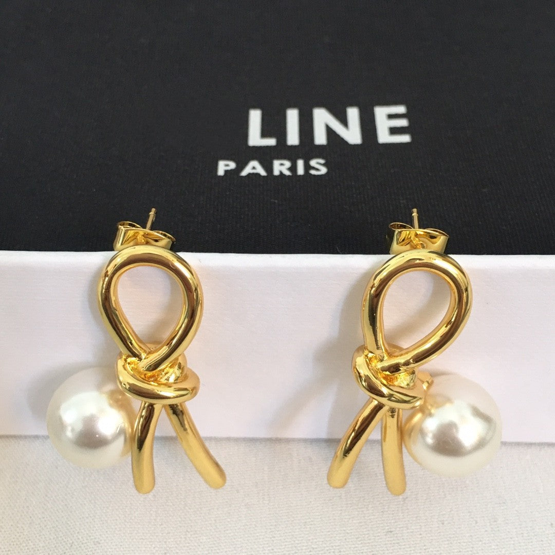 赛林家23新款打结耳钉女珍珠高级感个性气质冷淡风绳结耳环
