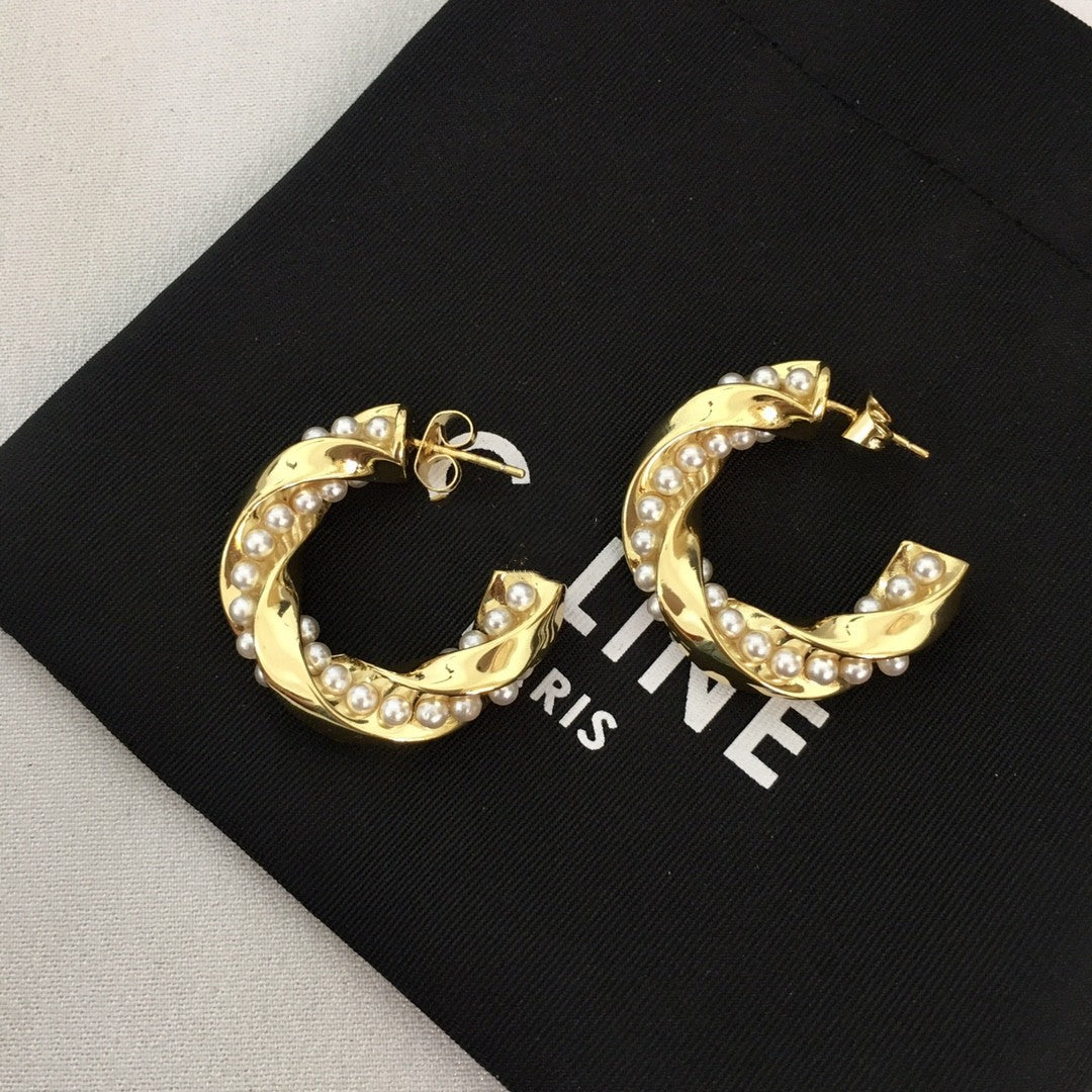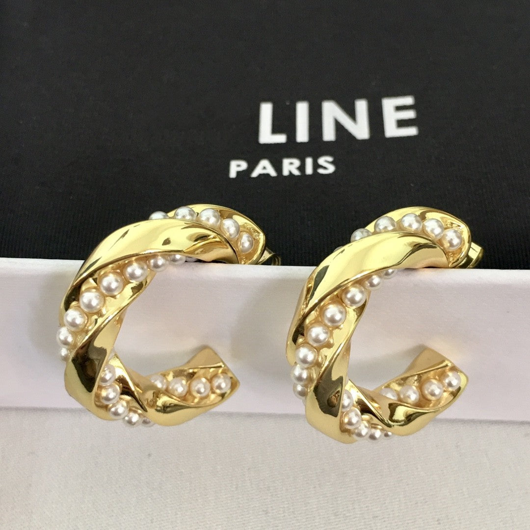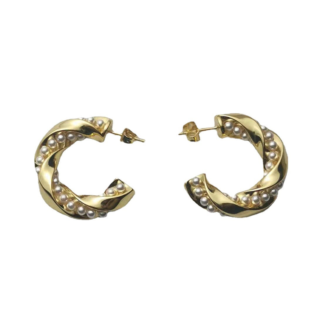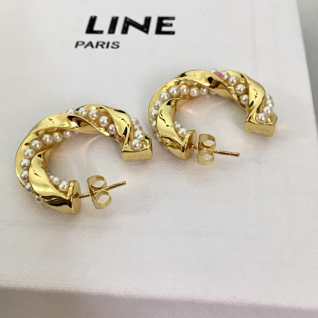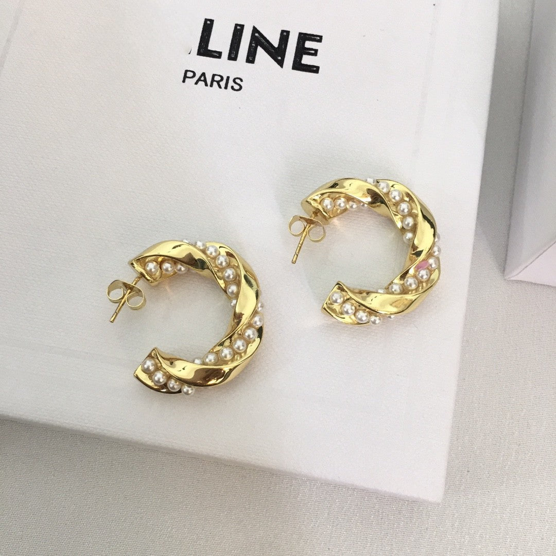 赛林新款珍珠C形耳环扭扭法式耳圈港风气质高级感耳饰不规则耳钉