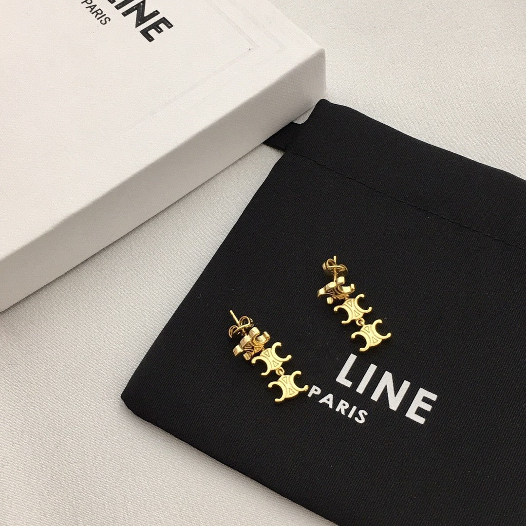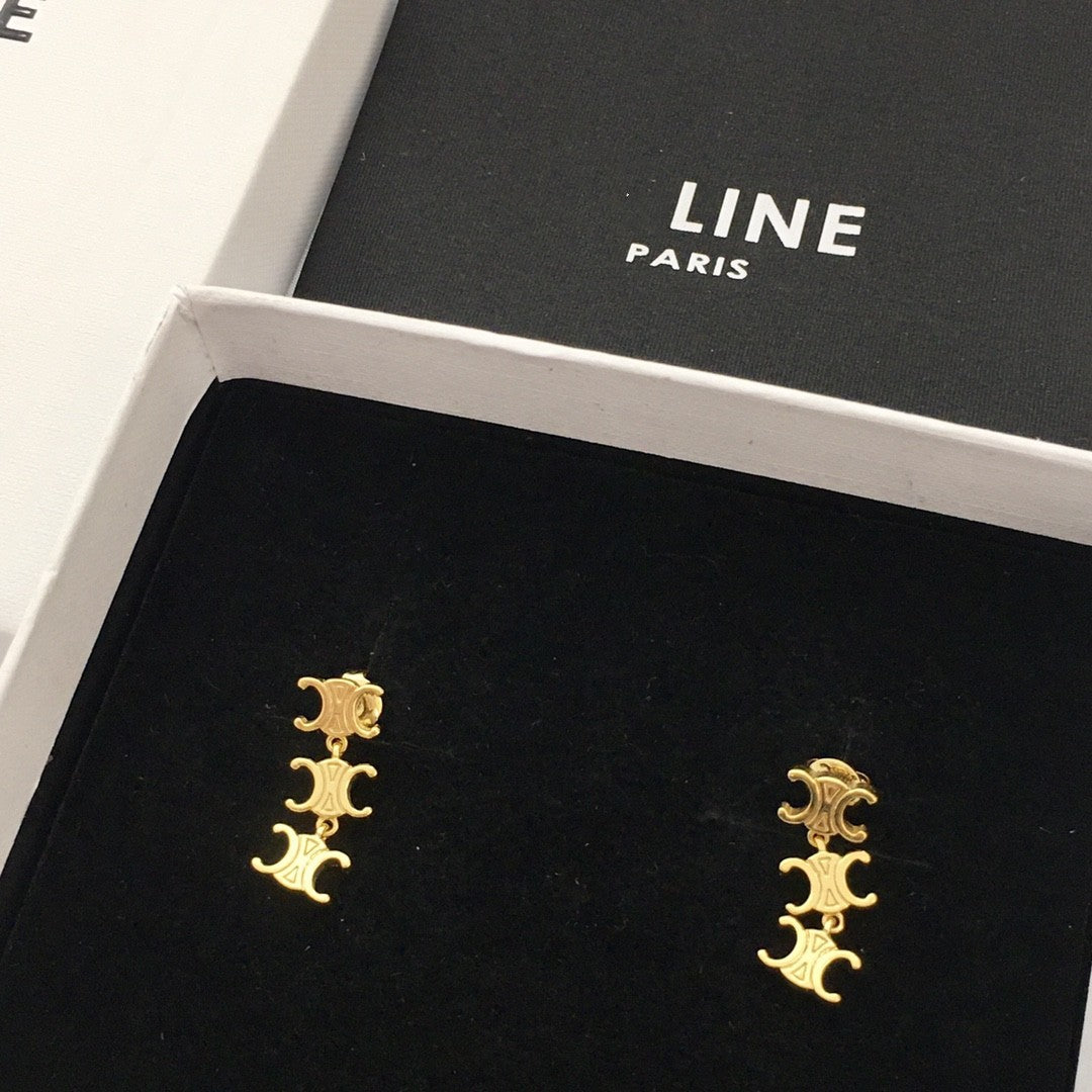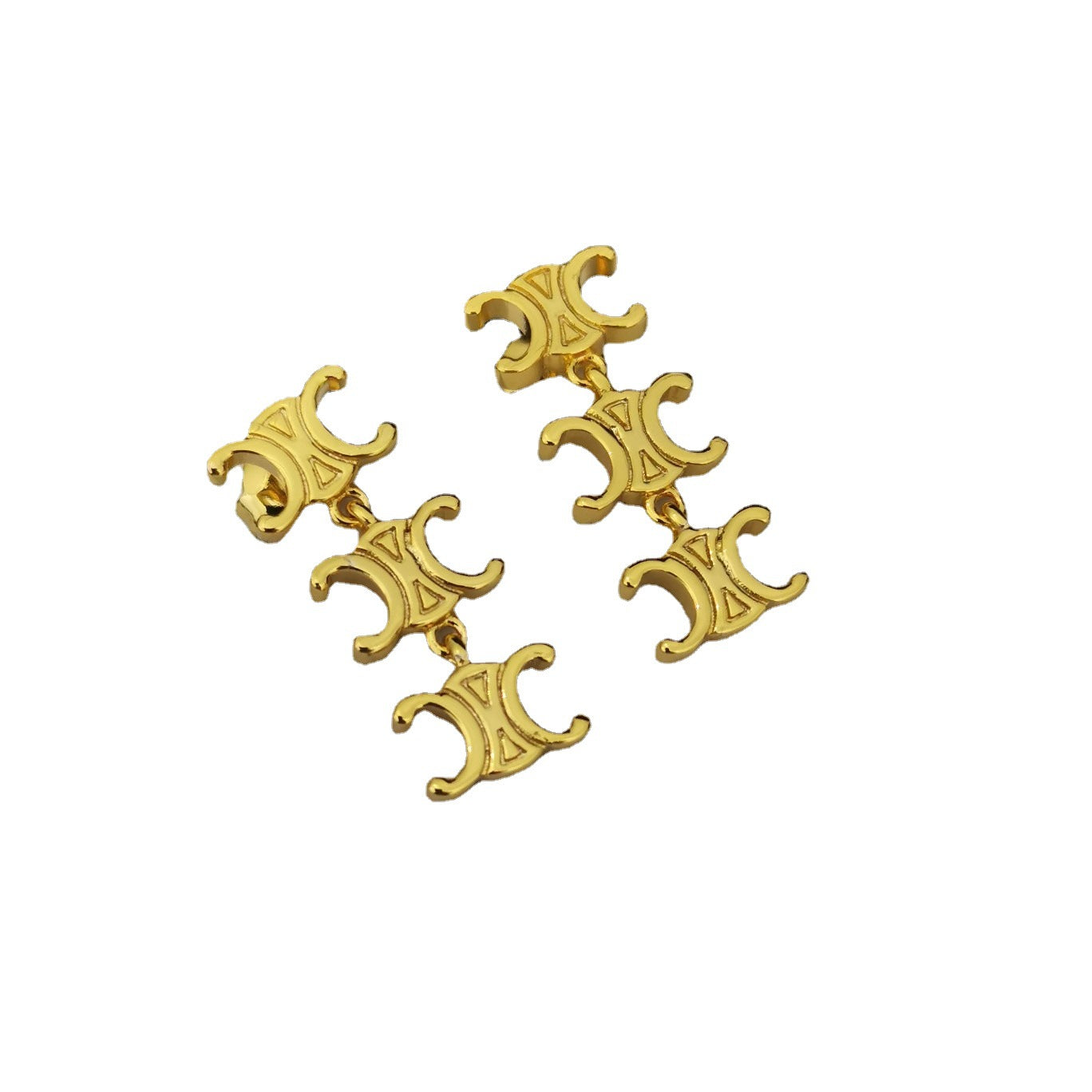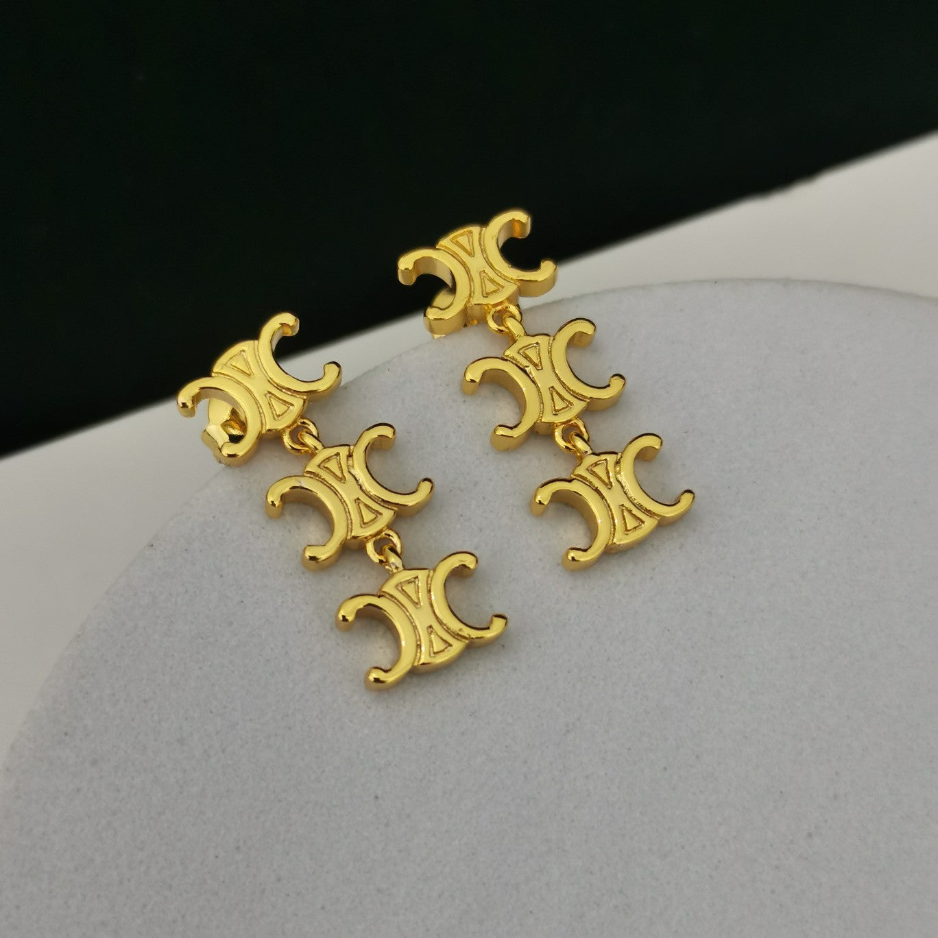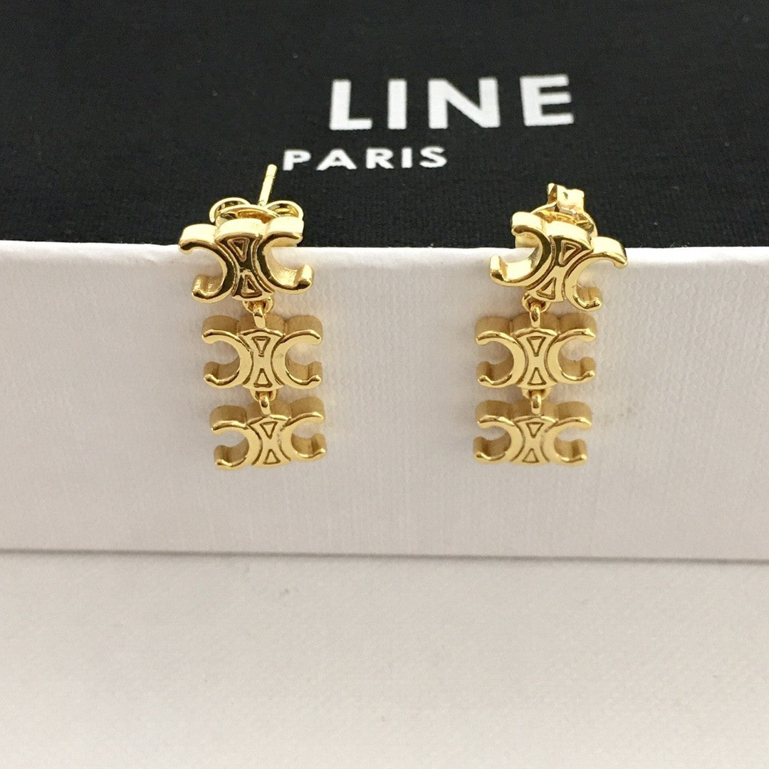 赛林22新款凯旋门吊坠耳钉女气质CEL风浮雕铜镀24K银针几何形耳环