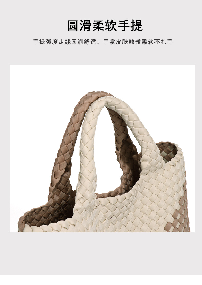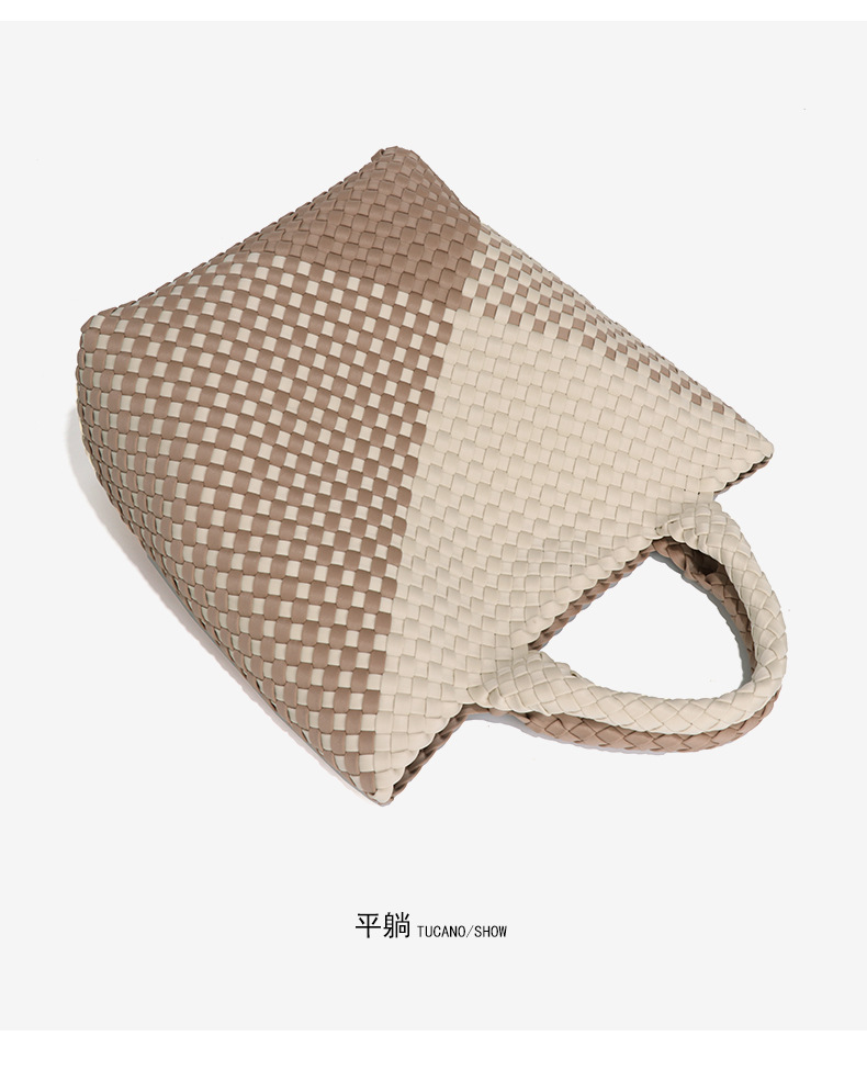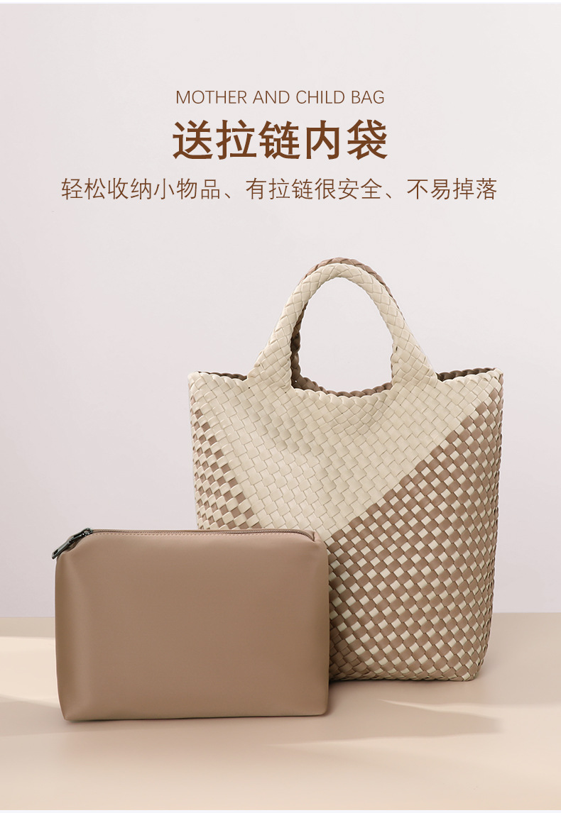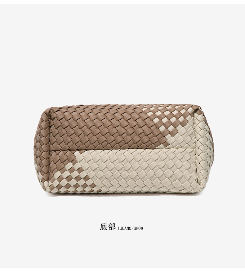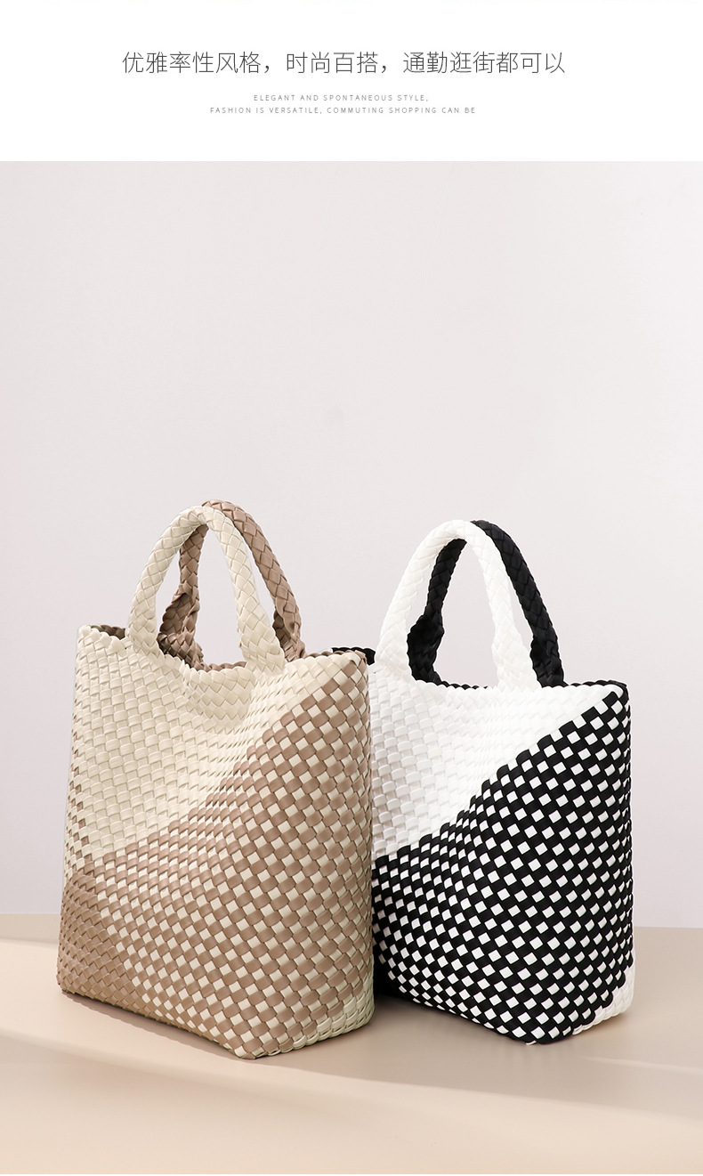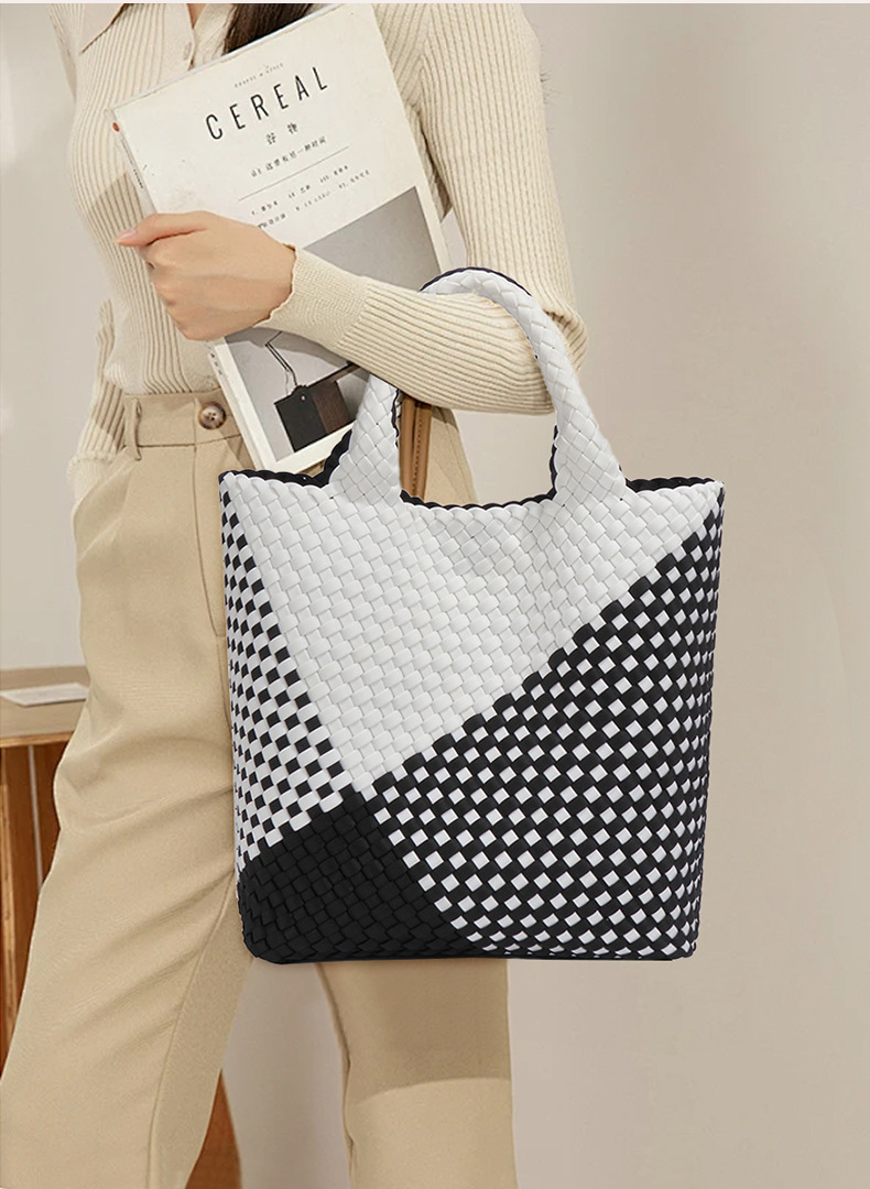 跨境新款手提编织女包工厂定制贴标拼色托特包个性潮流手拎子母包
