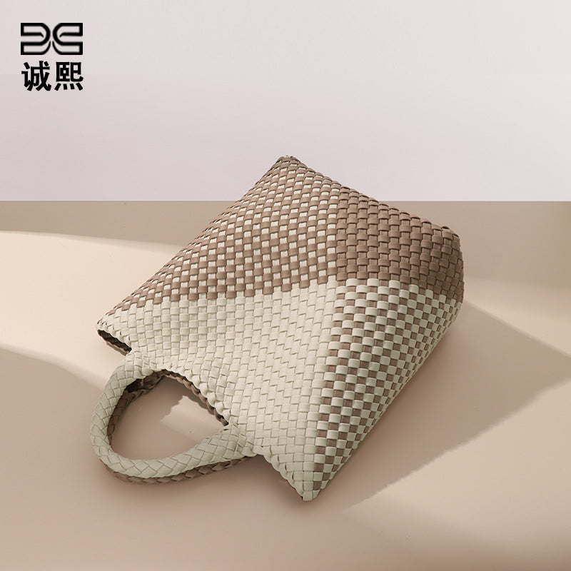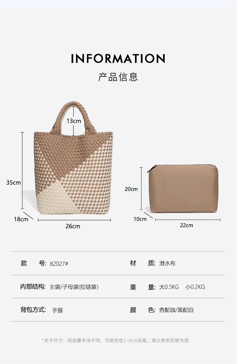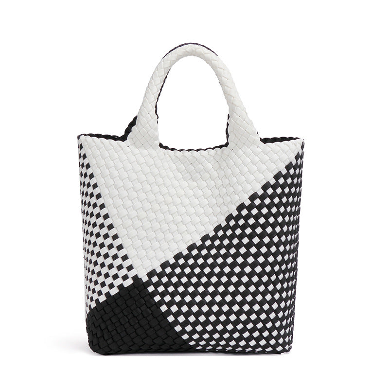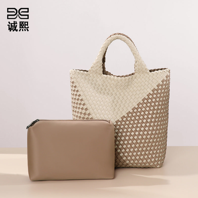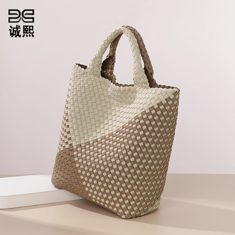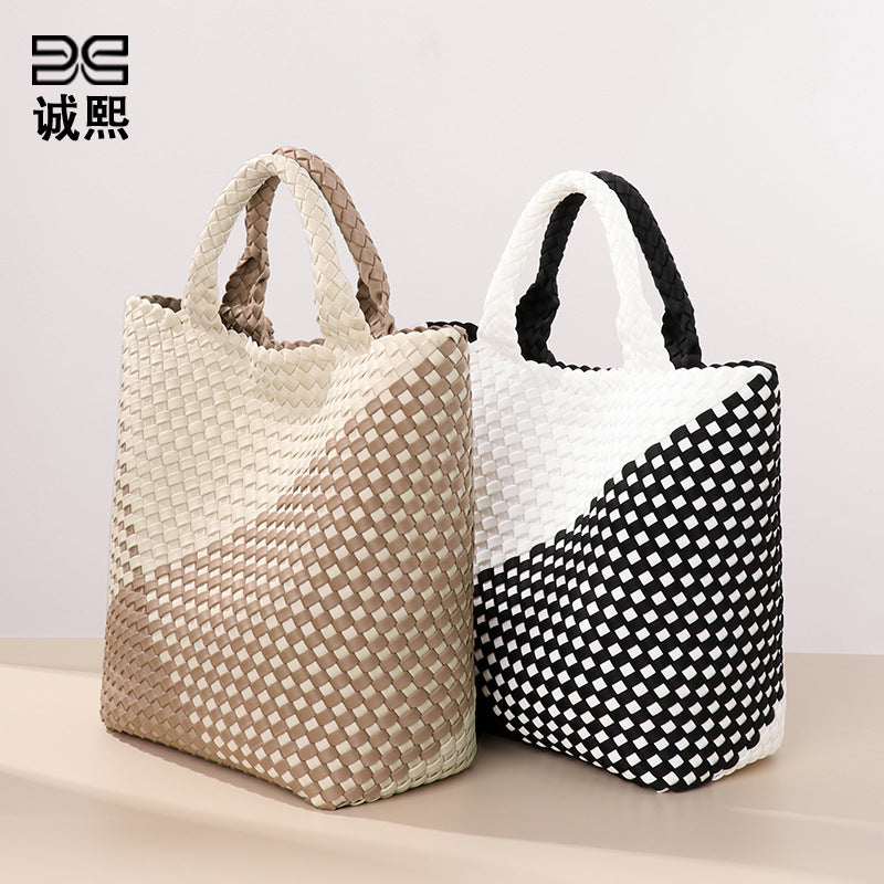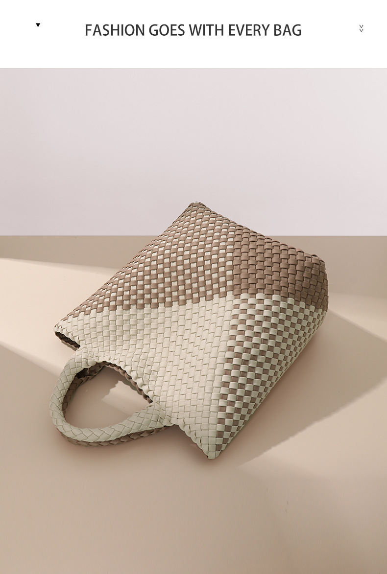 跨境新款手提编织女包工厂定制贴标拼色托特包个性潮流手拎子母包