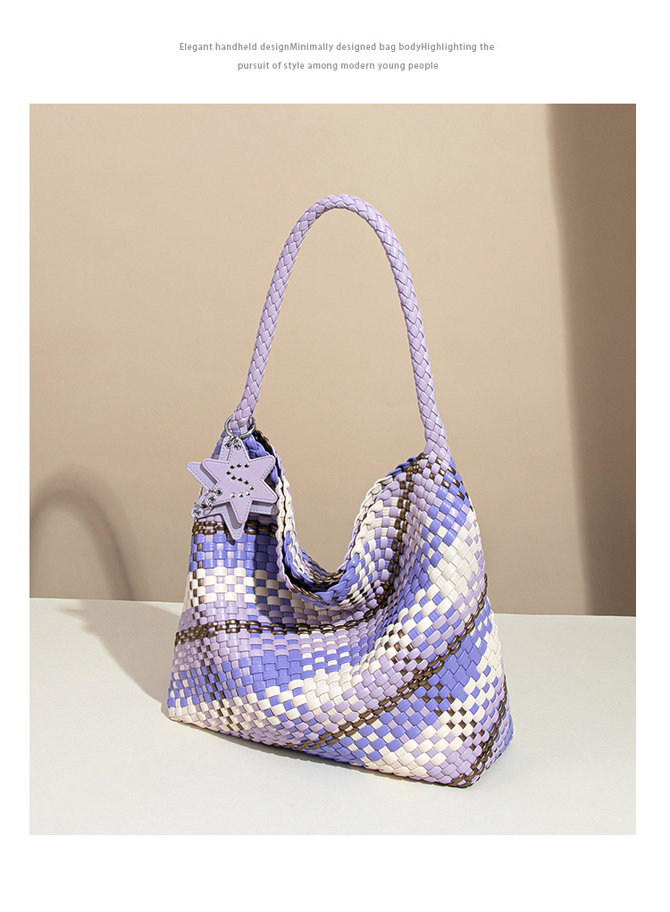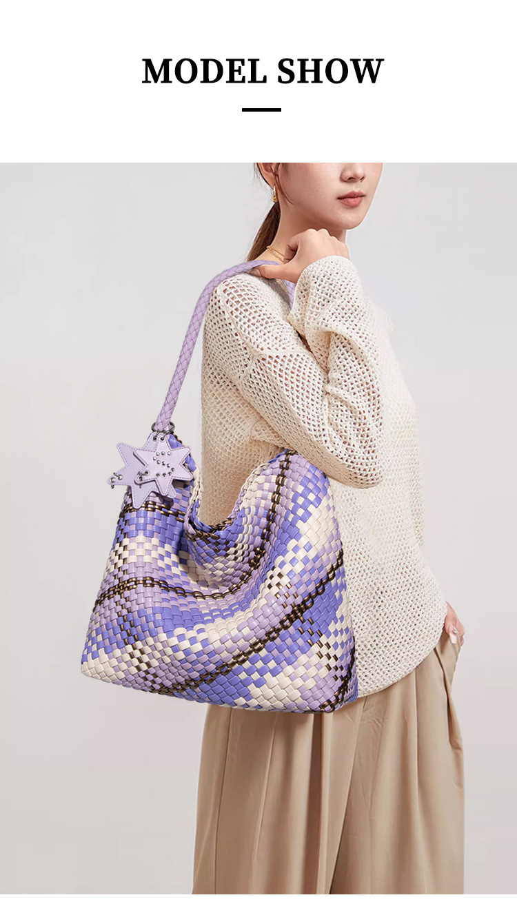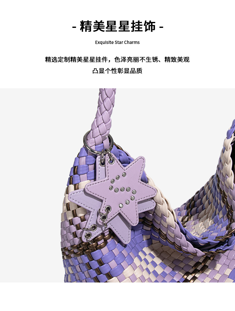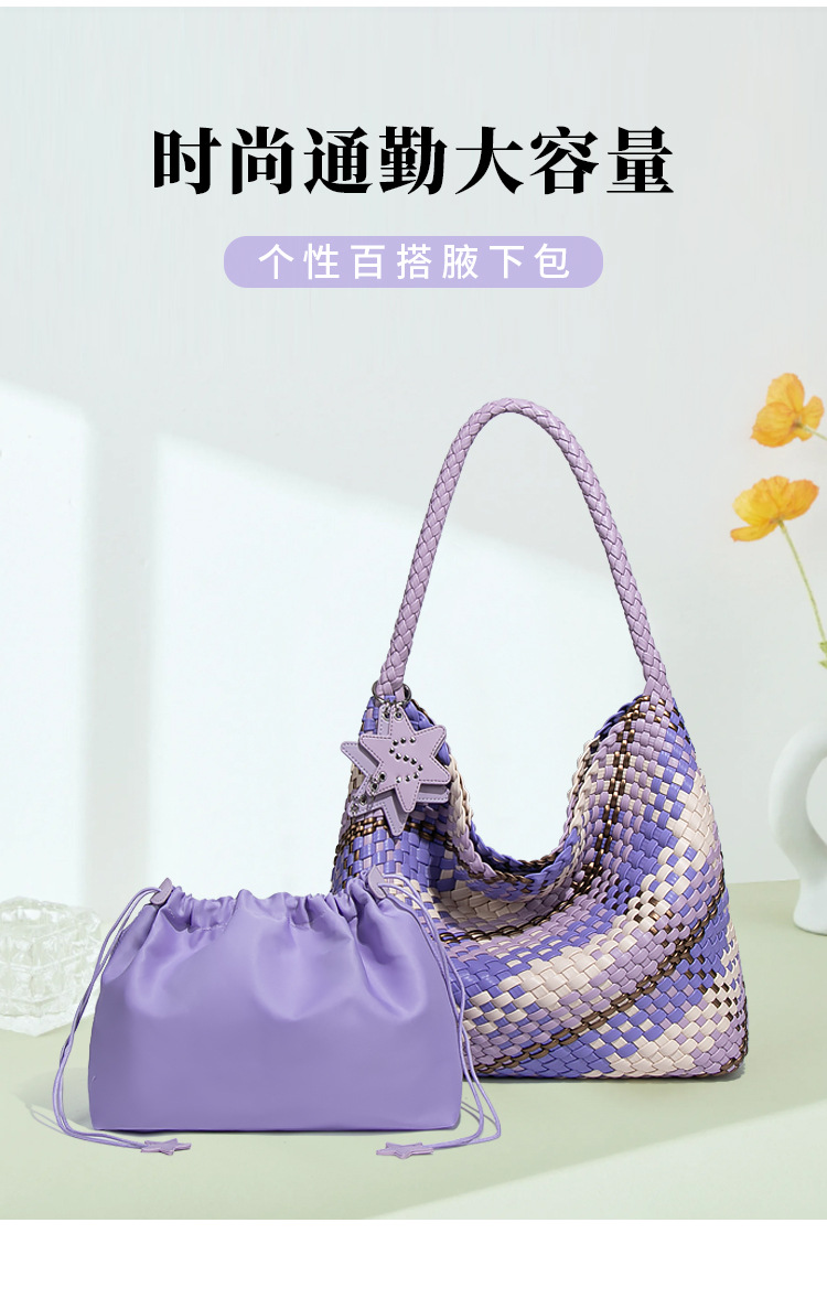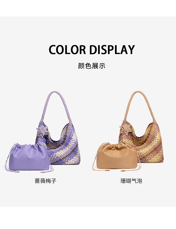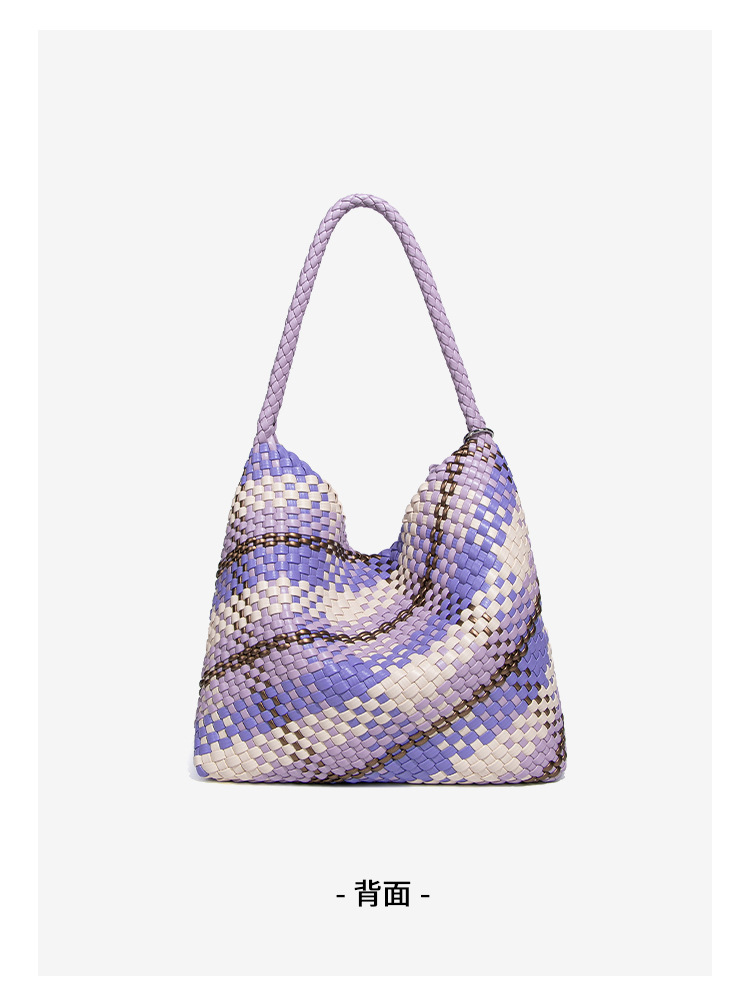 跨境新款拼色子母单肩托特女包大容量百搭腋下包全手工编织手提包