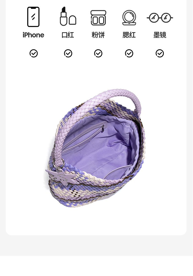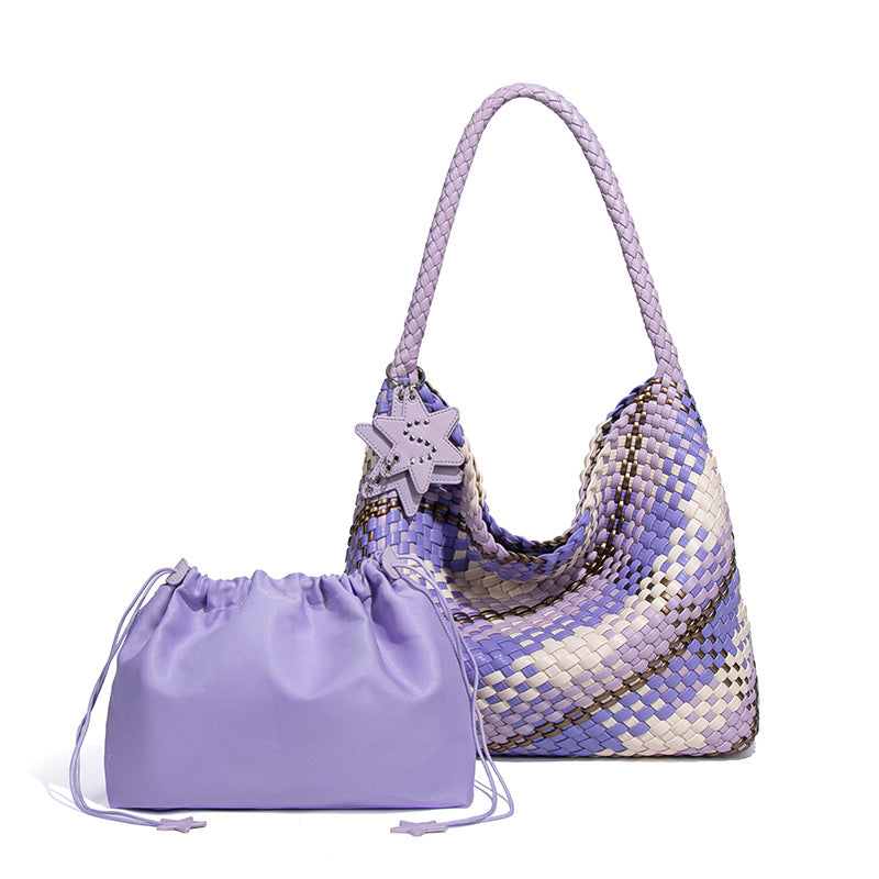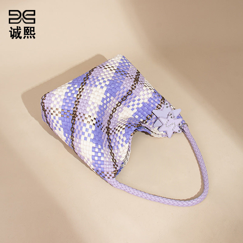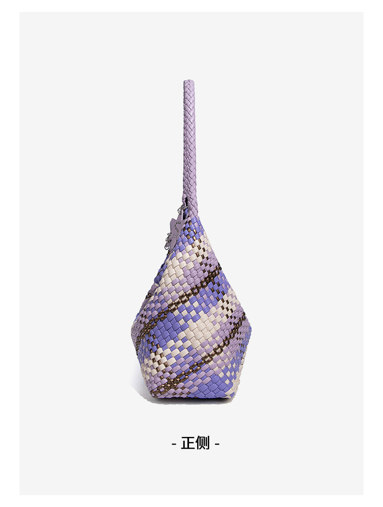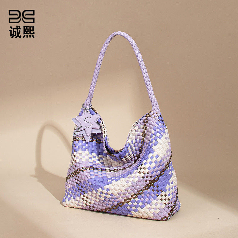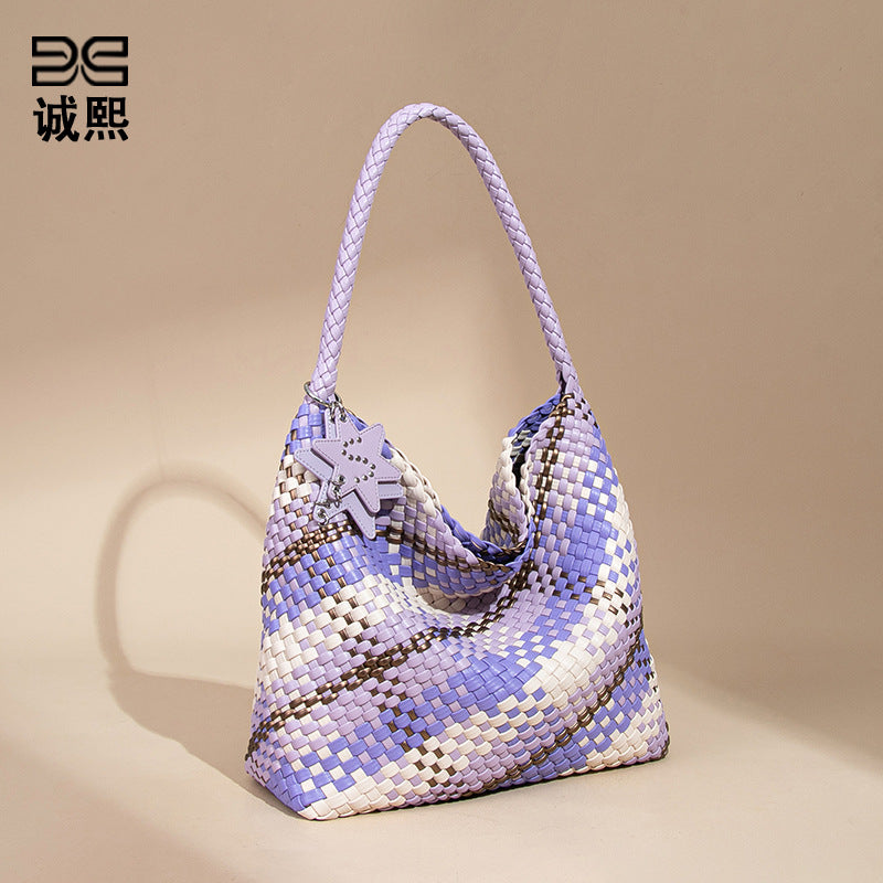 跨境新款拼色子母单肩托特女包大容量百搭腋下包全手工编织手提包
