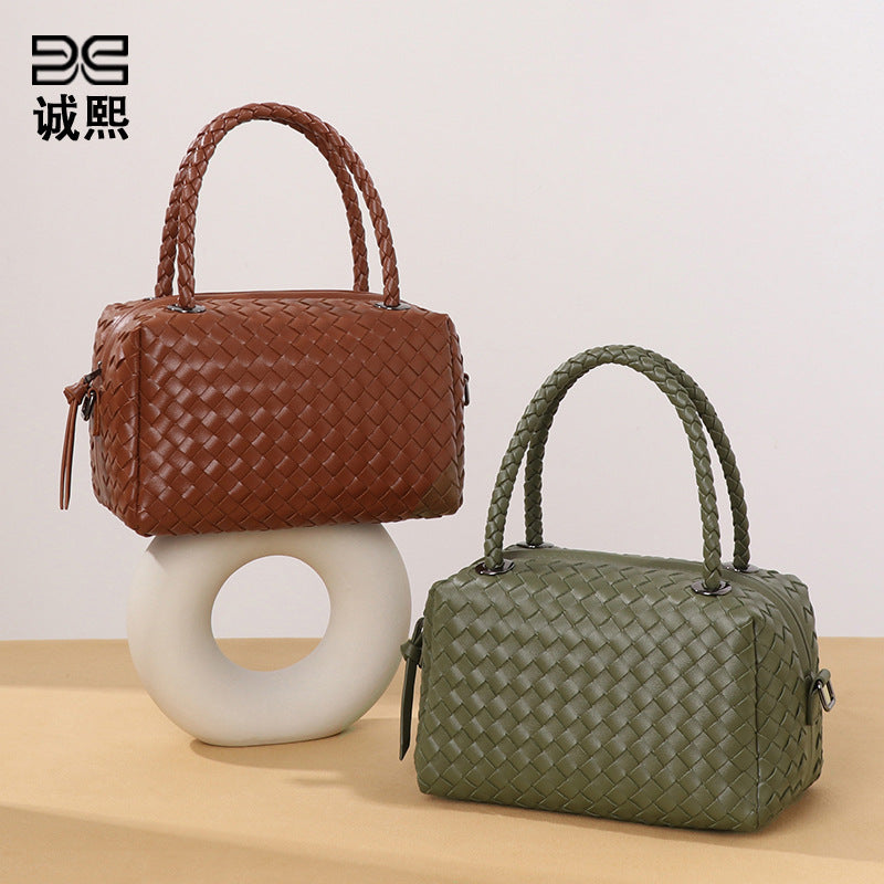 跨境欧时尚百搭手工编织包手提枕头包吐司包2024新款斜挎化妆包