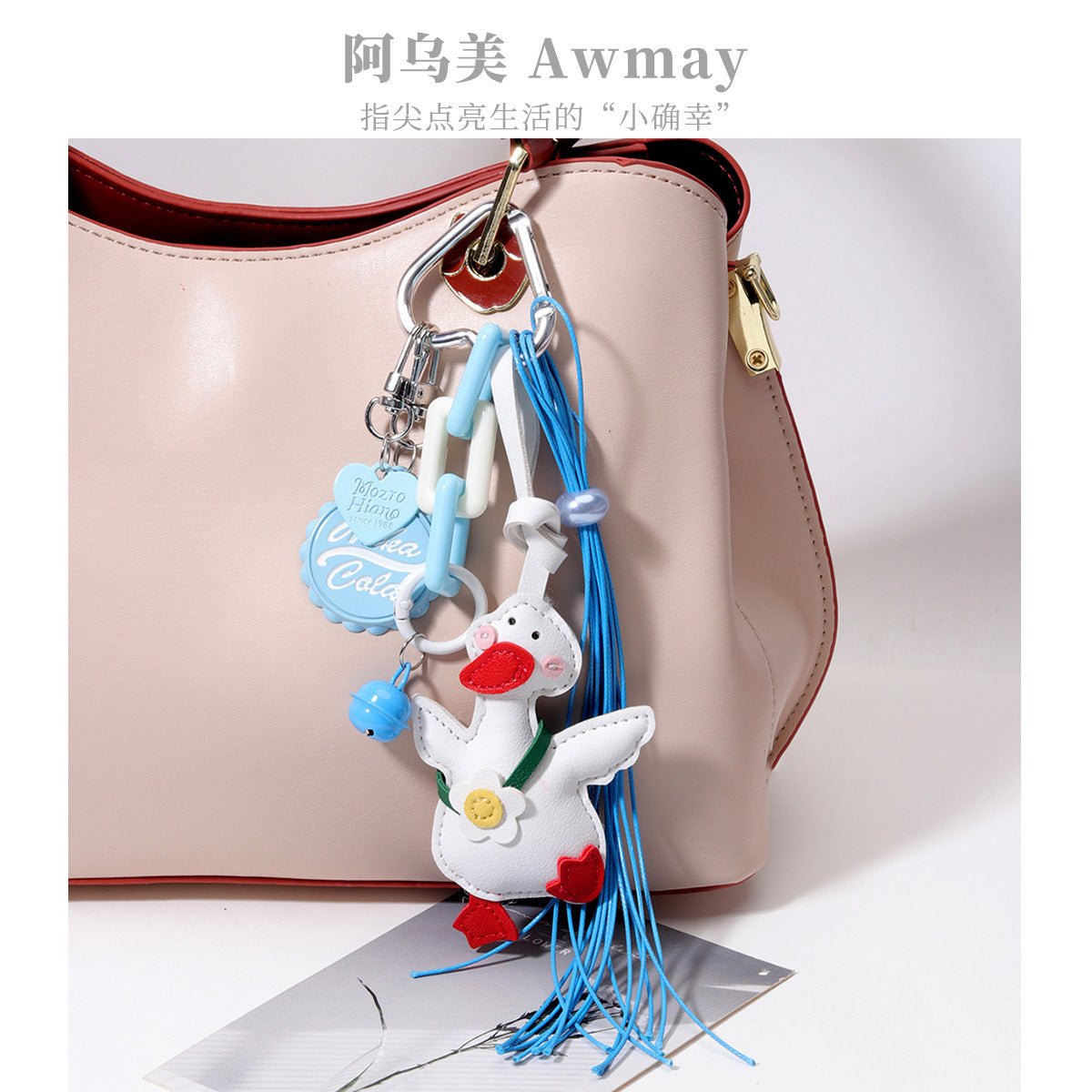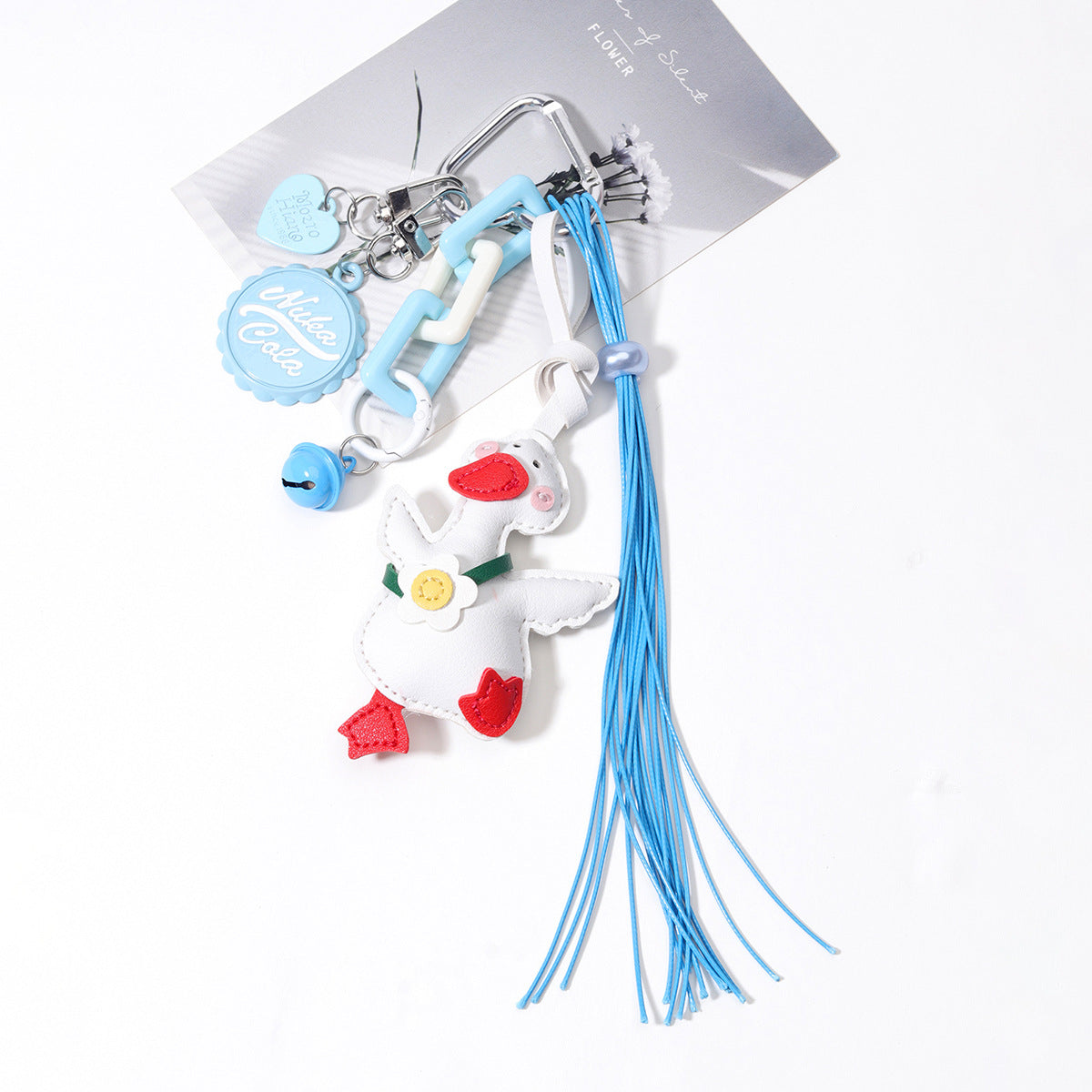 跨境热销爆款可爱呆萌PU皮革小鸭子包包挂件酒瓶盖金属铃铛挂饰