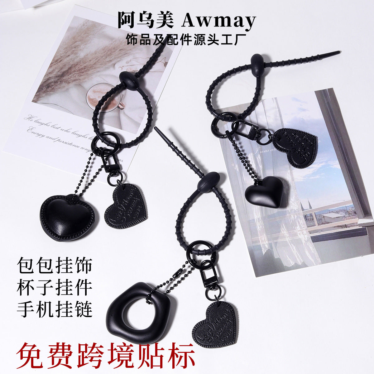 跨境热销磨砂质感亚克力包包挂件杯子挂饰挂件扎带时尚热销桃心