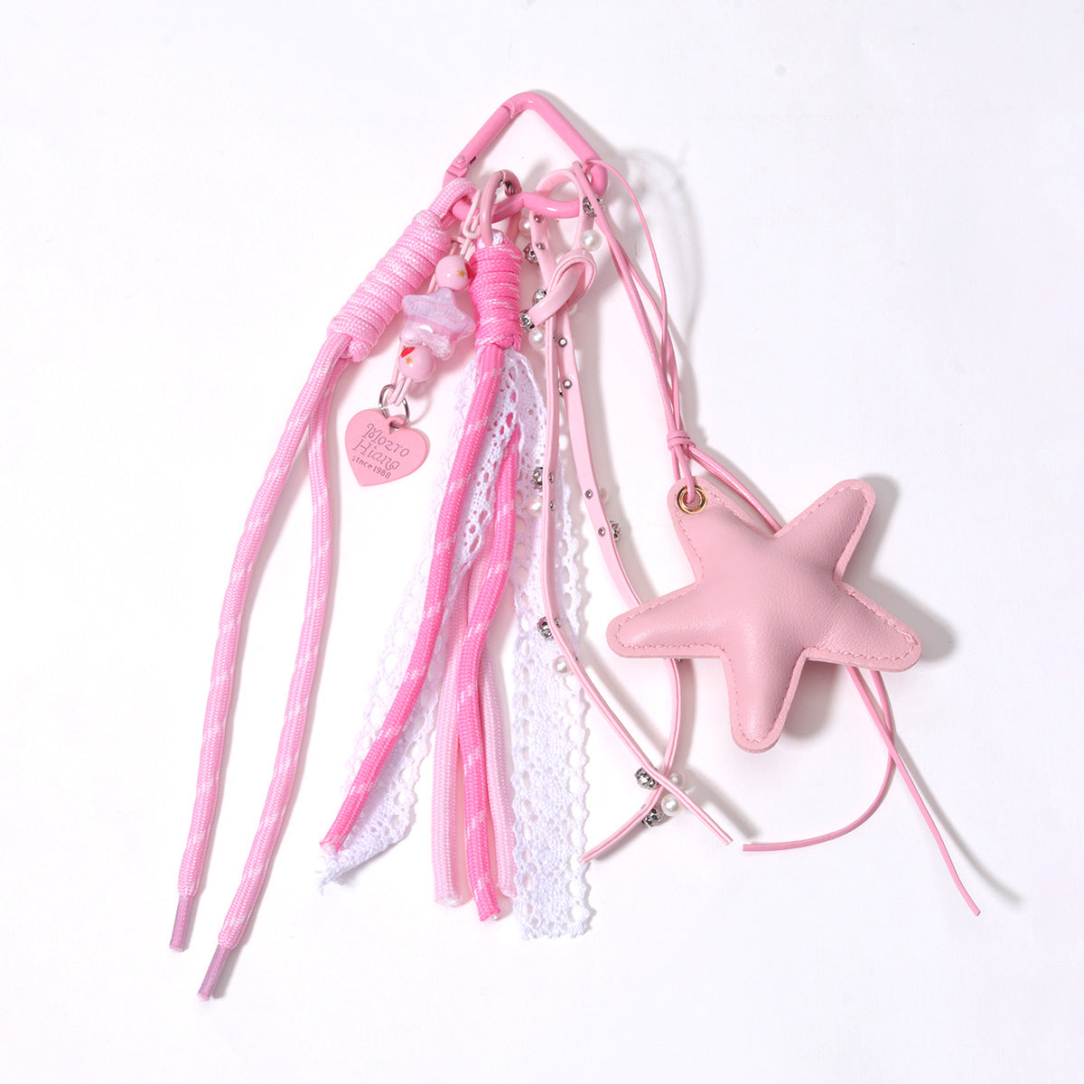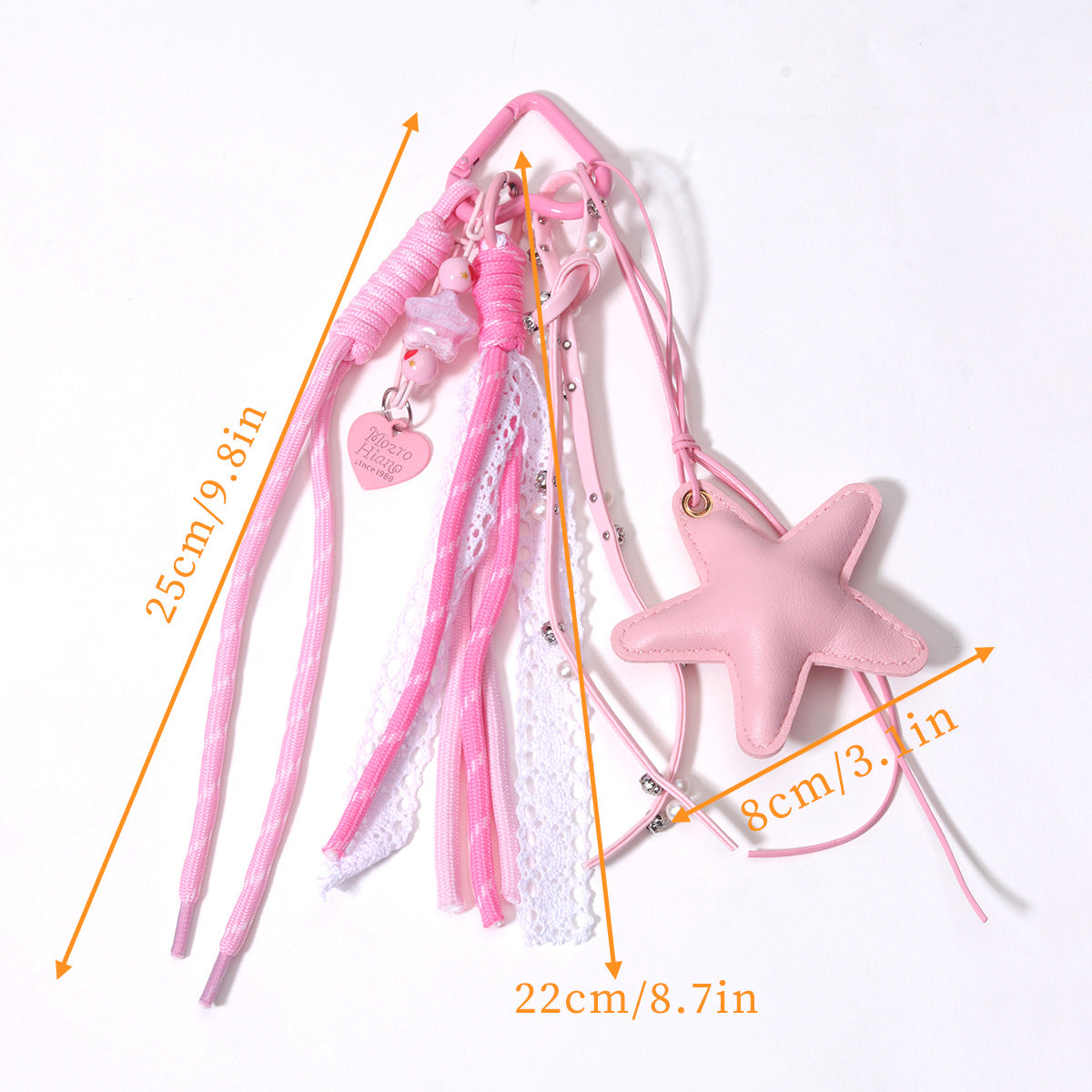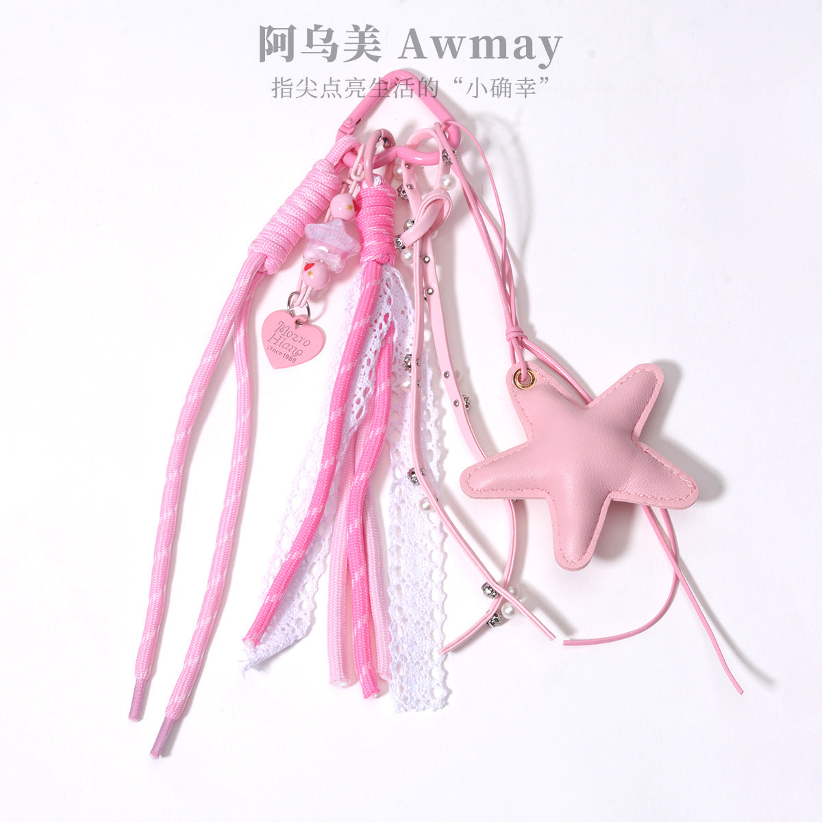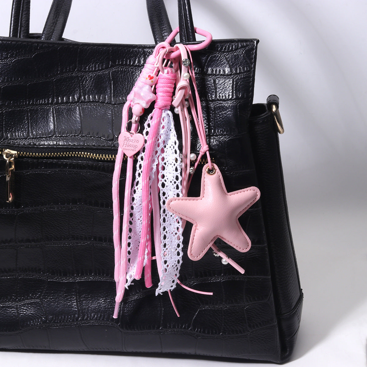 跨境热销立体油画韩国胶串珠包包挂件皮五角星百搭挂饰钥匙扣皮绳