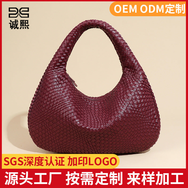 跨境爆款定制手提大容量月牙包欧美潮流单肩腋下包质感编织饺子包