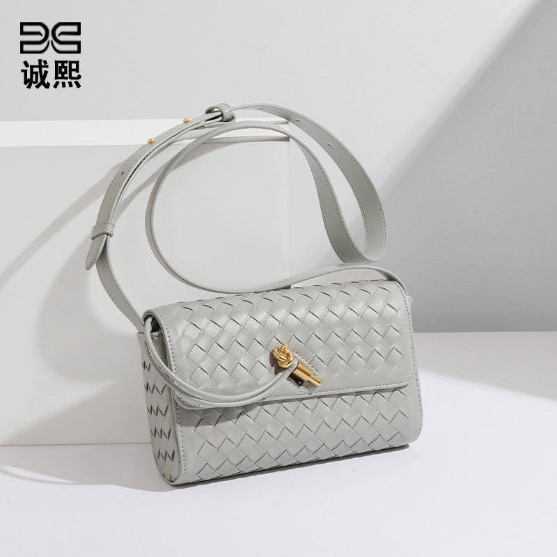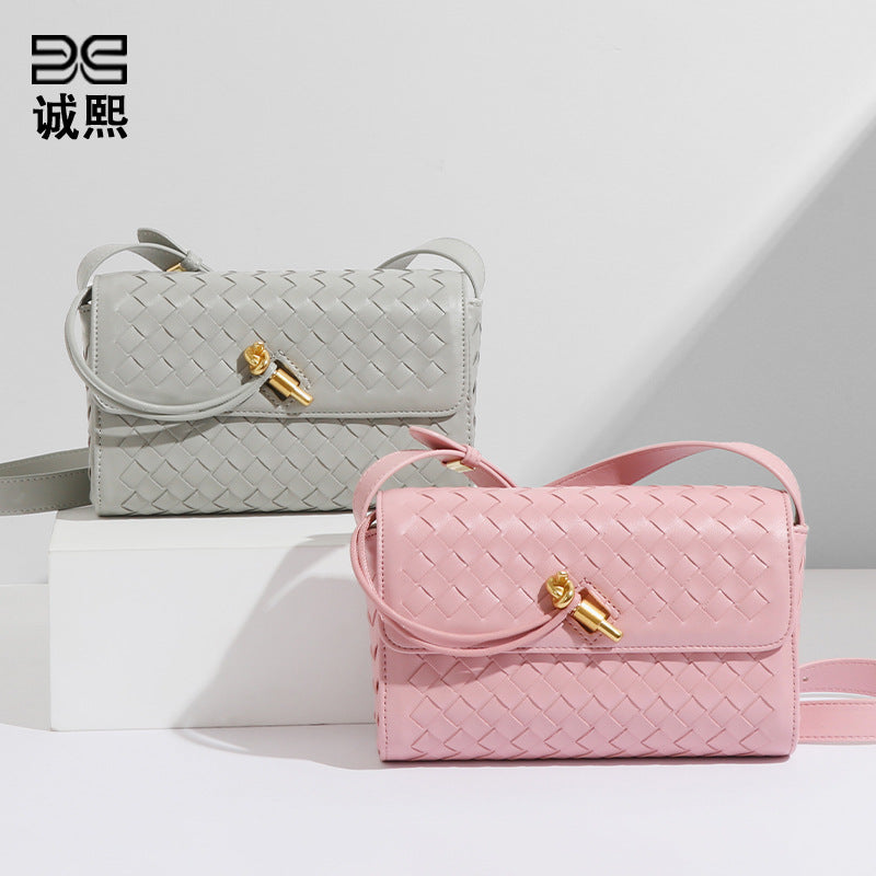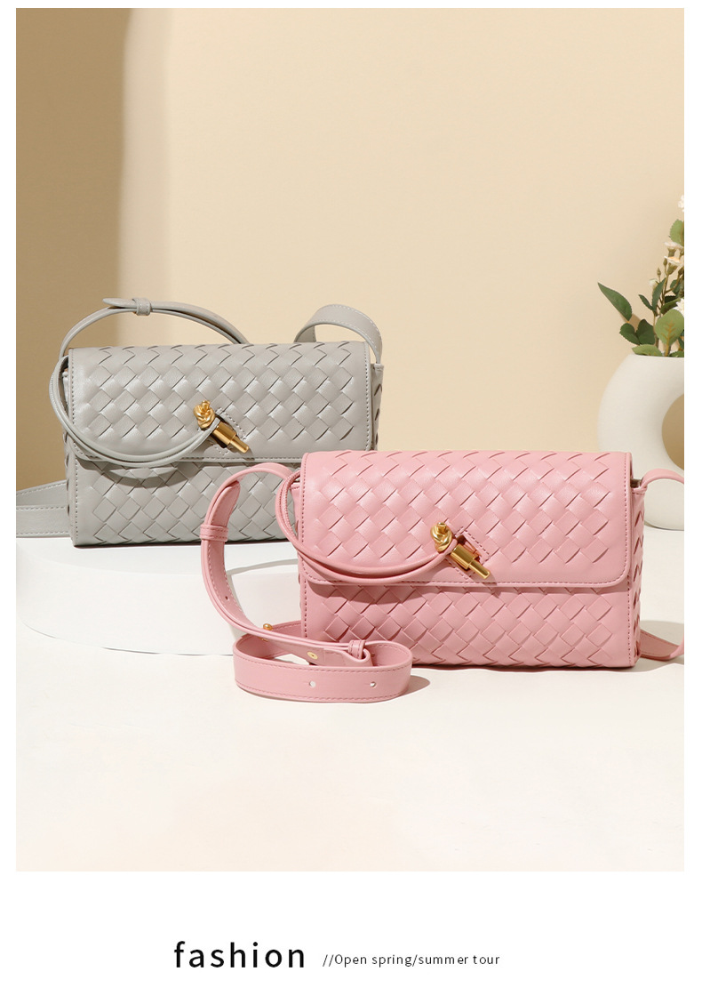 跨境爆款手工编织包欧美高级感单肩斜跨小方包女士短款中古法棍包