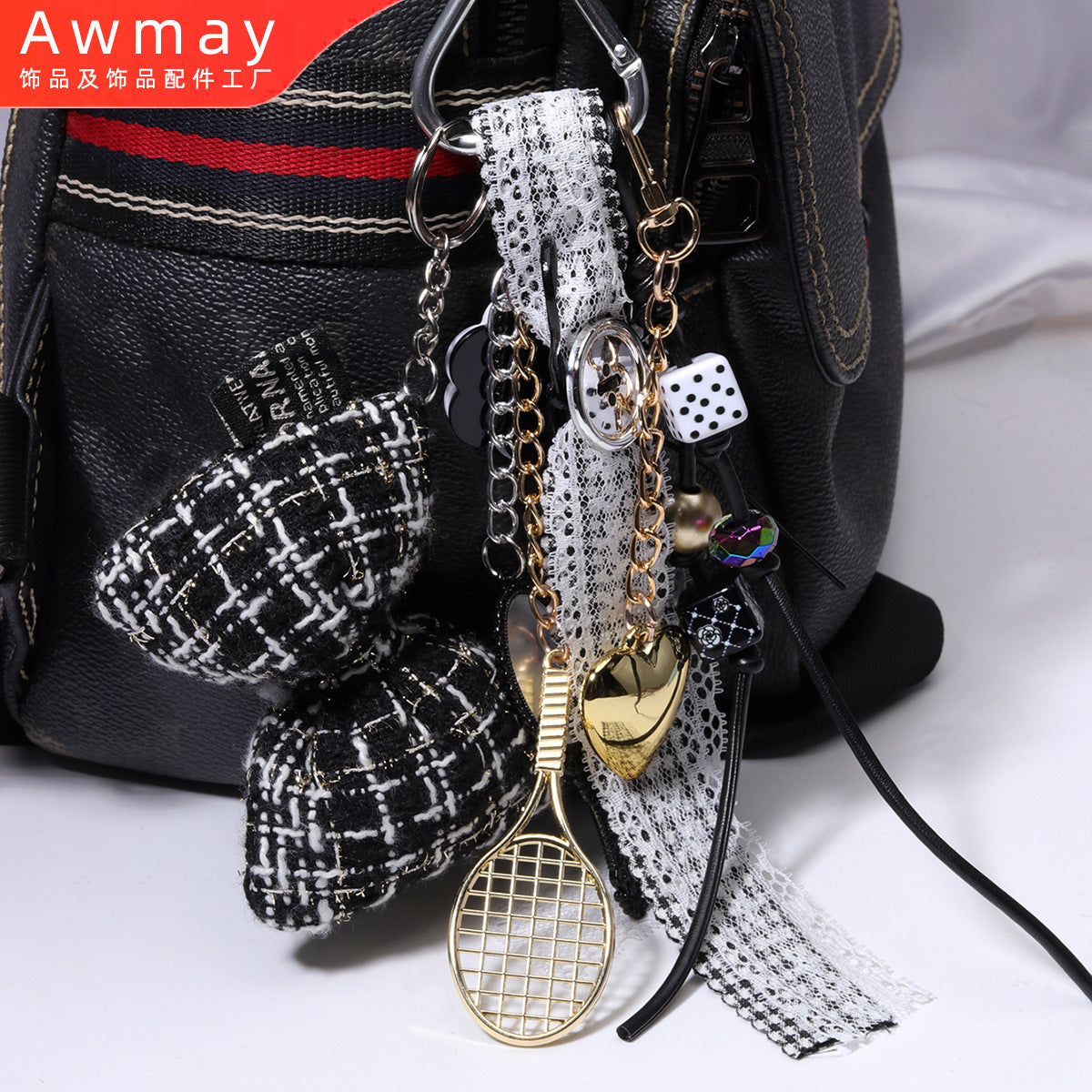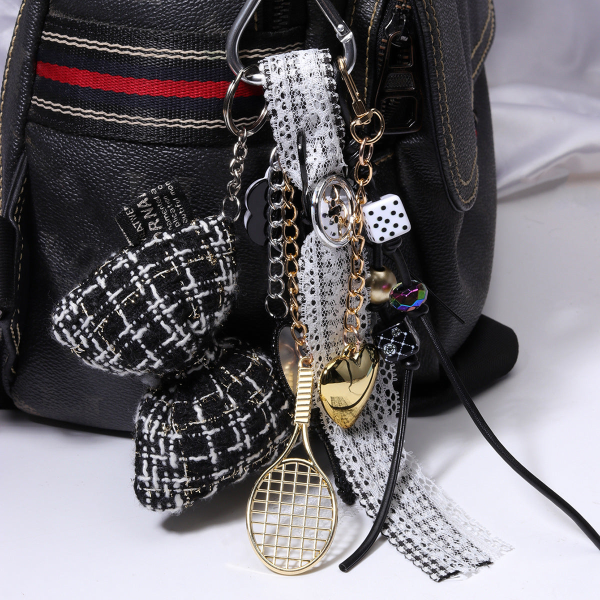 跨境现货miu系蝴蝶结挂件包挂配饰钥匙扣小挂件简约ins风羽毛球拍