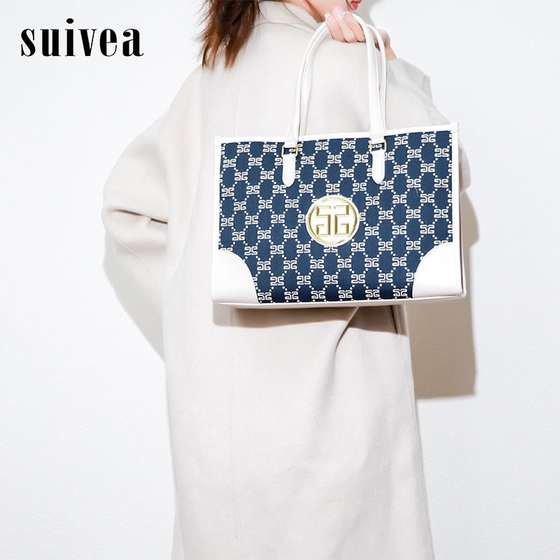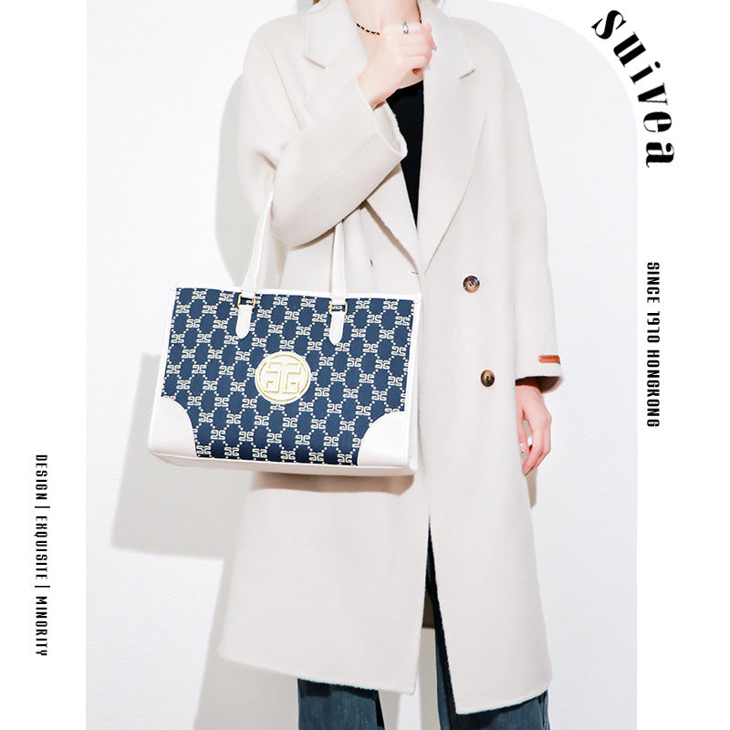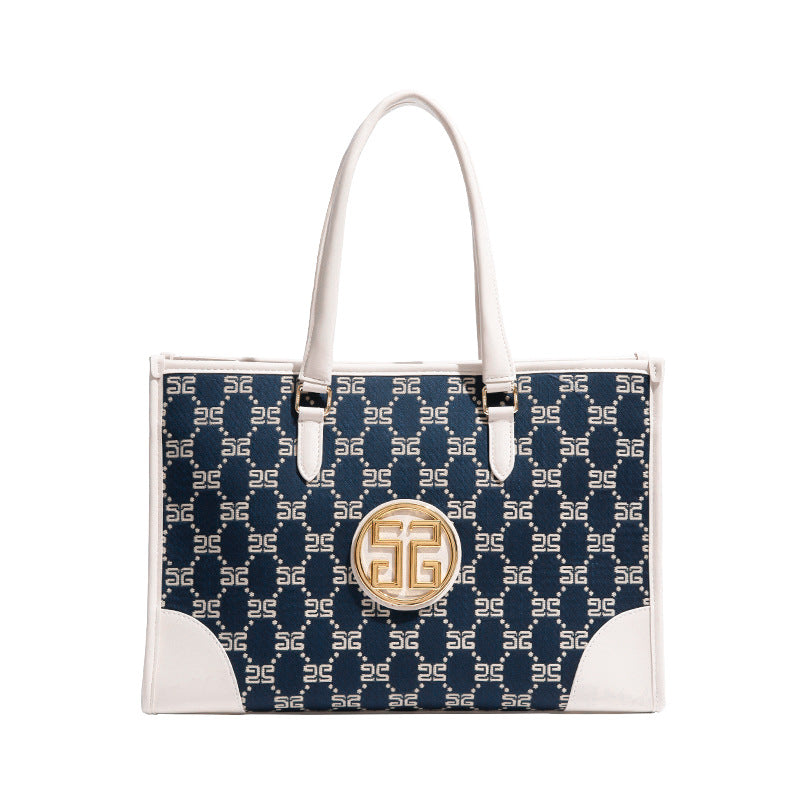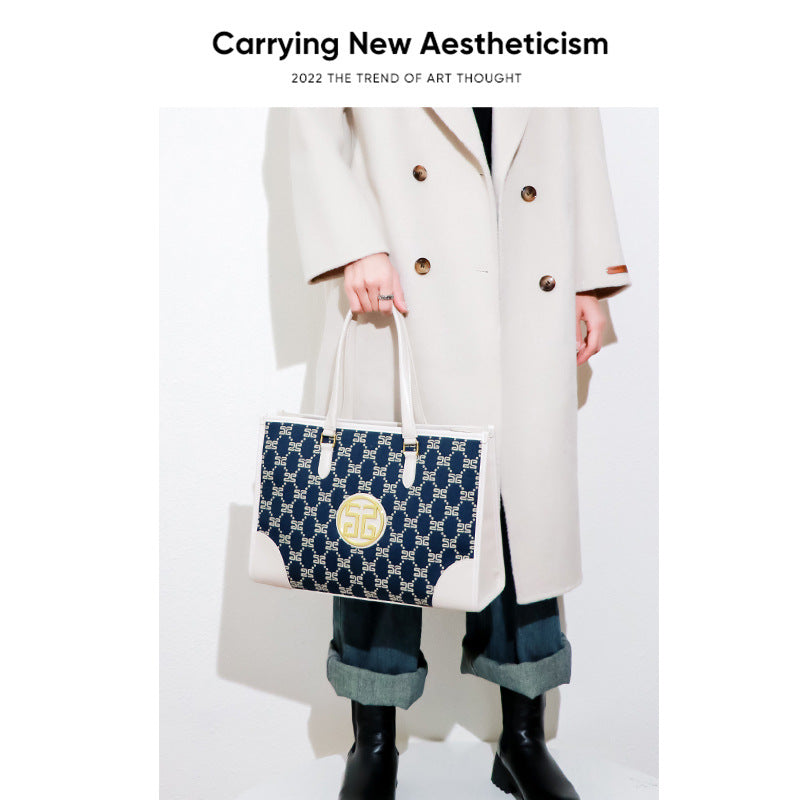 跨境通勤女士手提包棉麻刺绣大气托特包外贸简约休闲大容量妈咪包